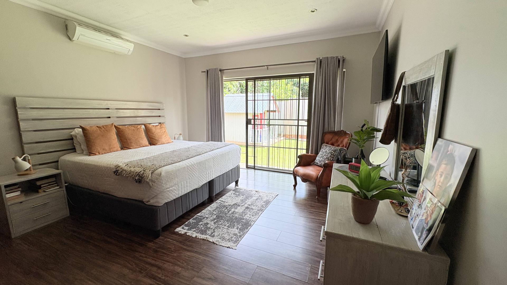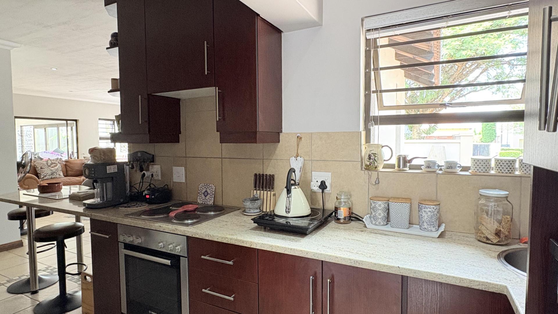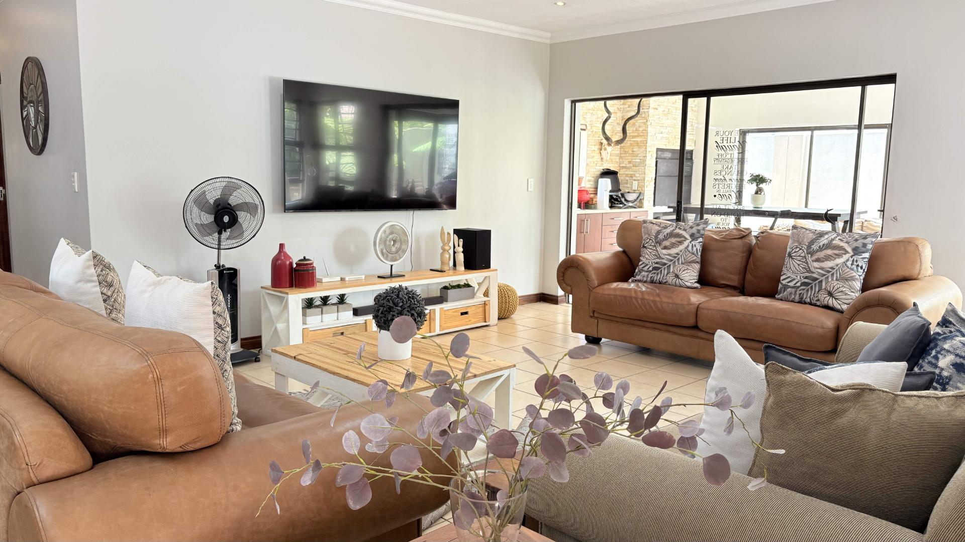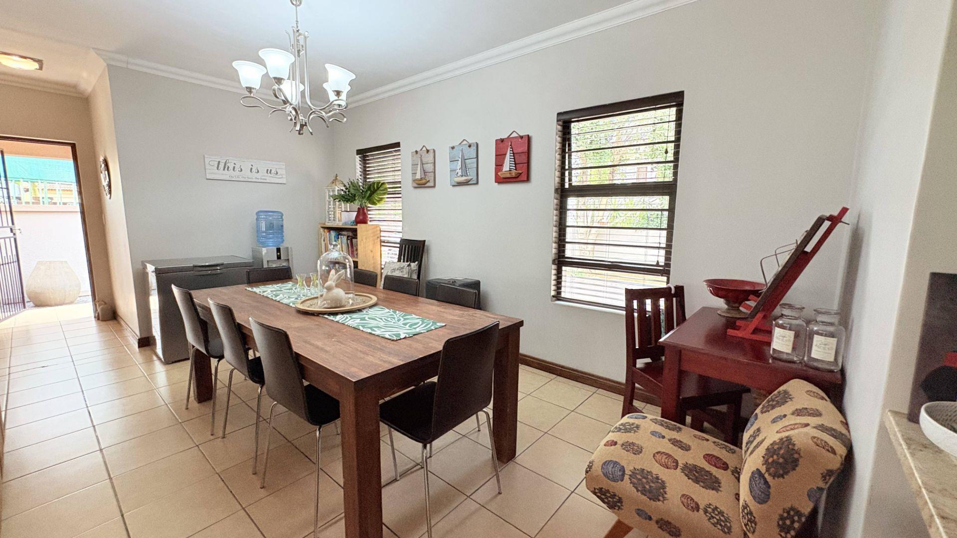 3 Spacious living areas comprise of a lounge, dining room & indoor undercover patio with built in braai leading onto the garden and the pool.