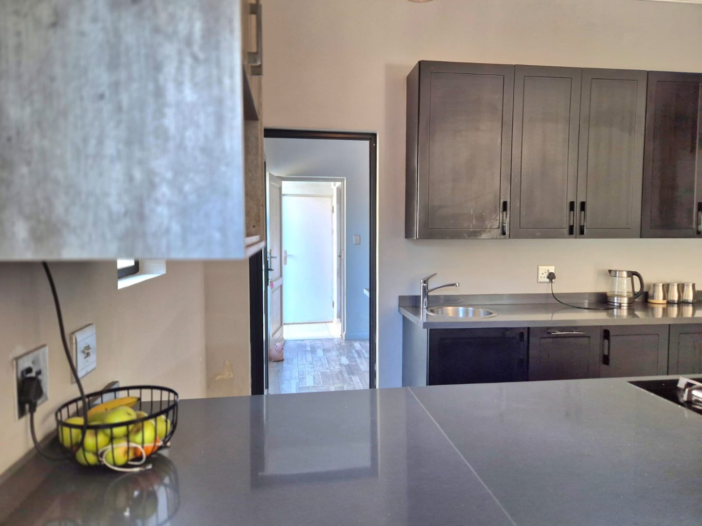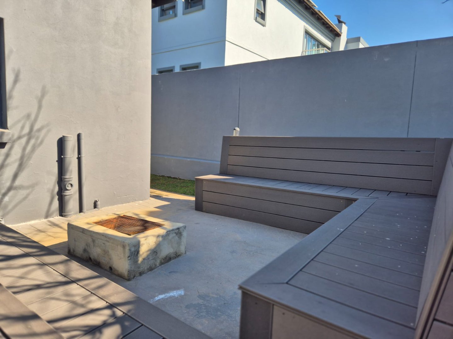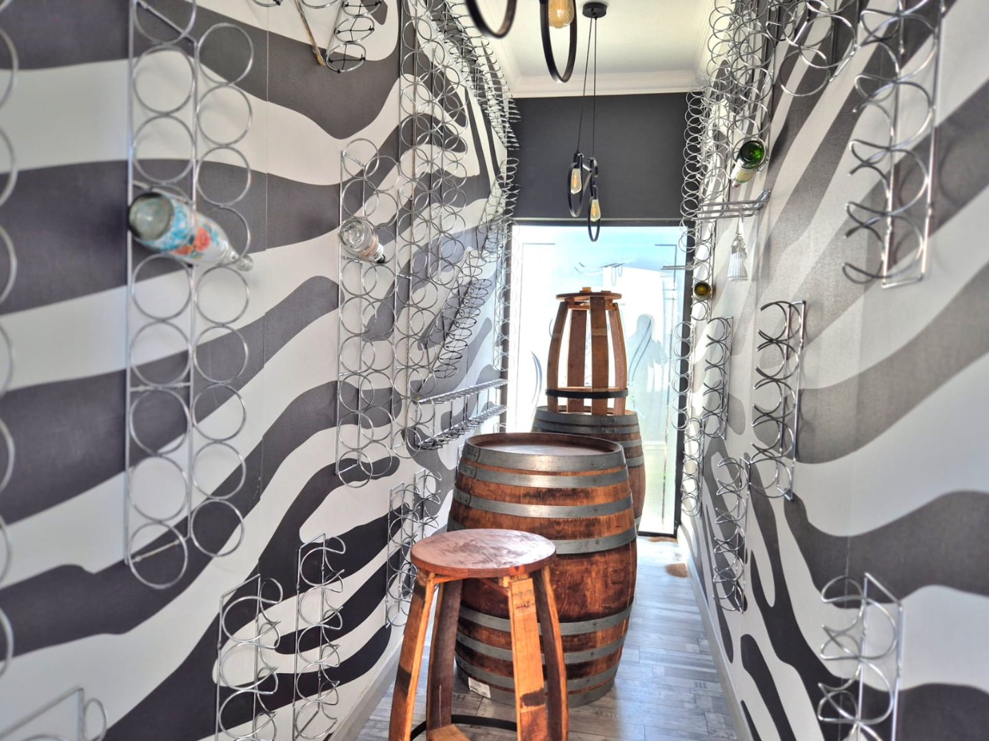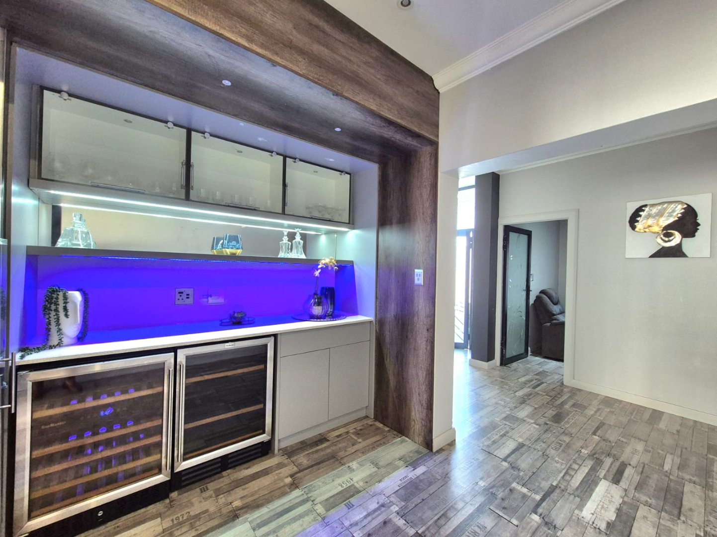 The entertainment room with a built-in braai leads into a bright sunroom that opens onto a stunning deck, where you’ll find a sparkling pool and a boma – perfect for year-round gatherings.