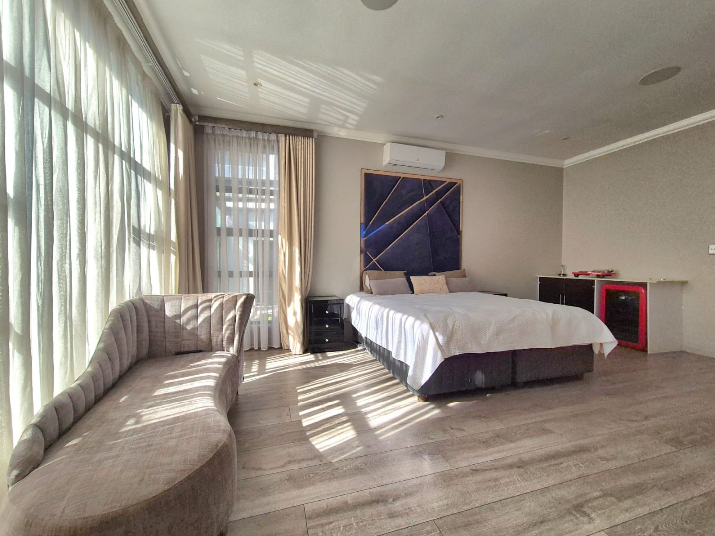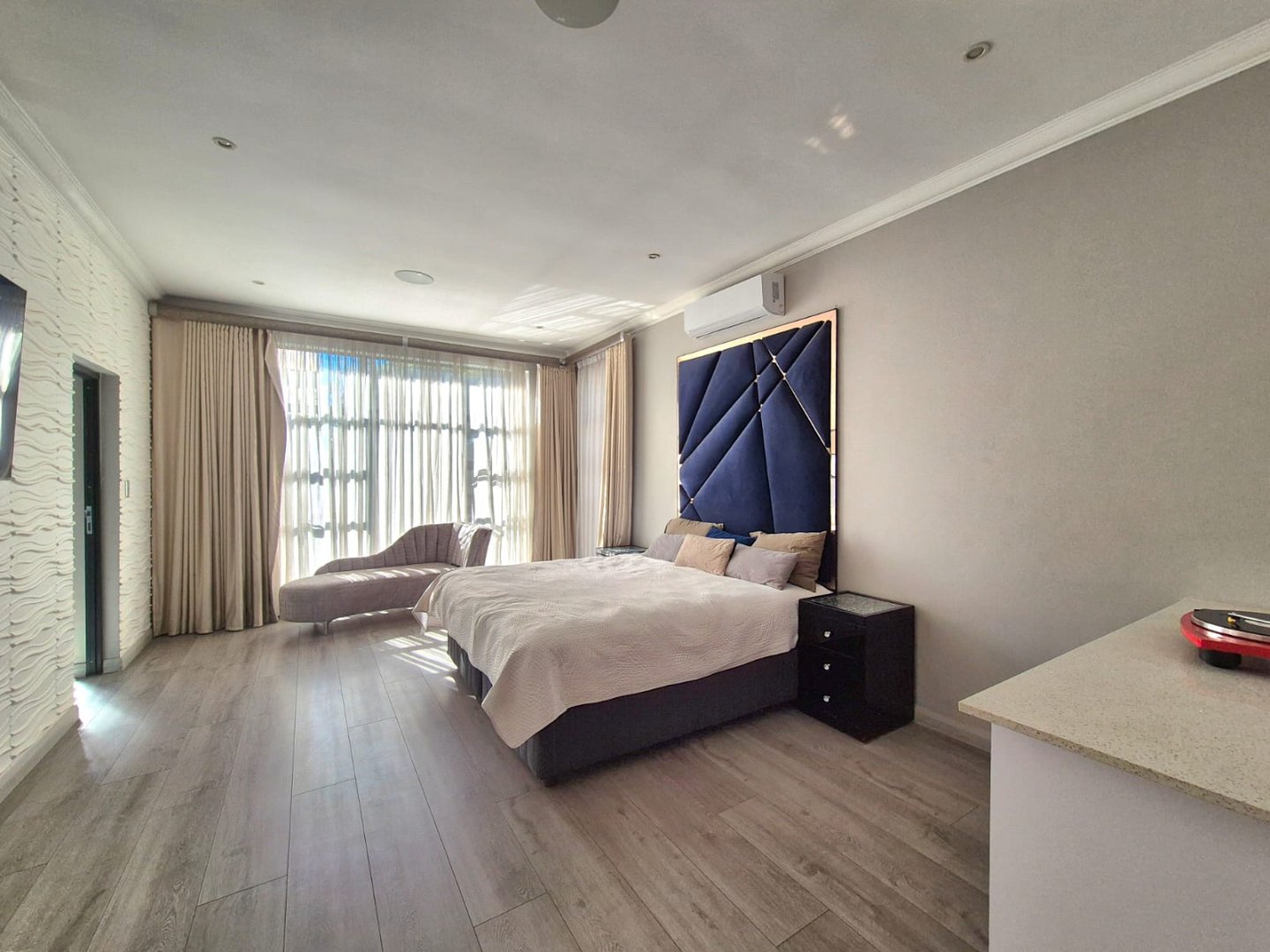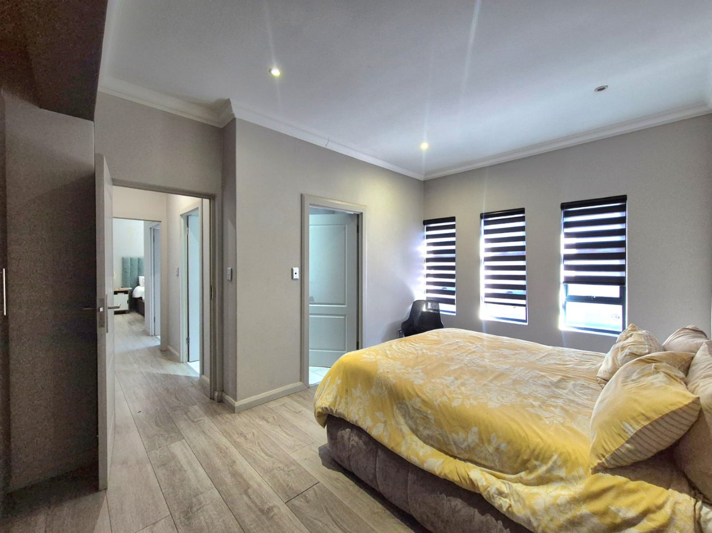 The spacious main bedroom is a true retreat, featuring ample built-in cupboards and room to relax. All bedrooms are well-sized, offering flexibility for family or guests.