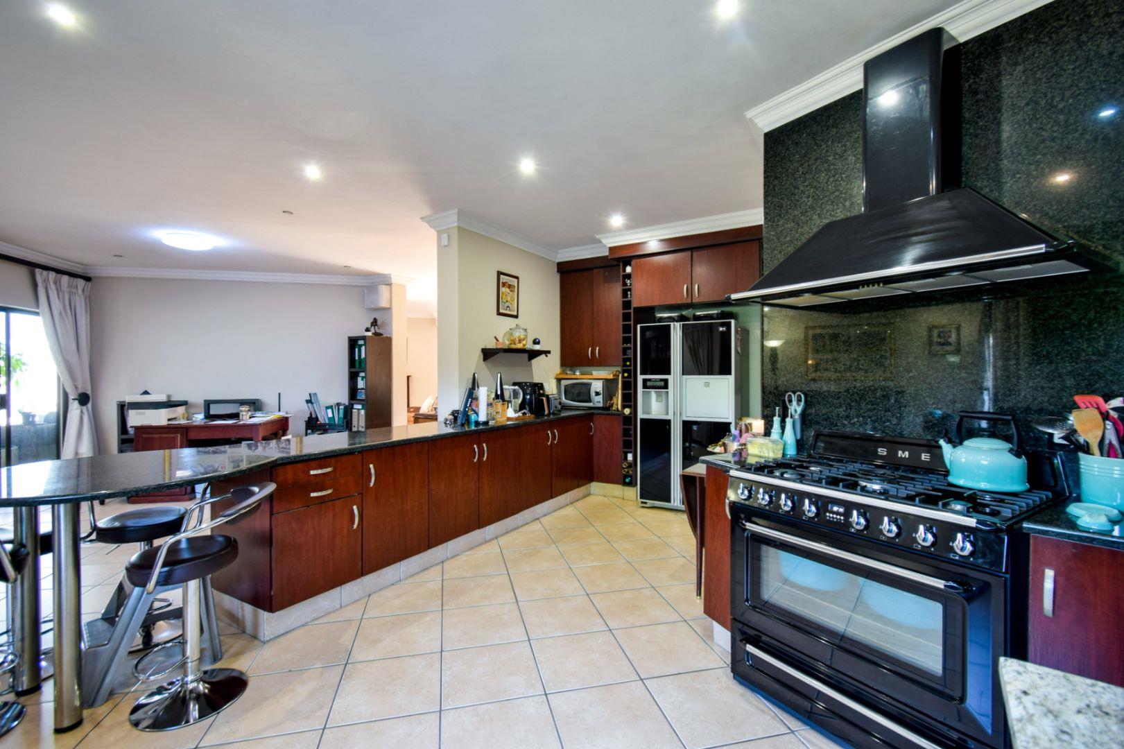-Open-plan kitchen with granite counter tops, breakfast nook, large pantry and a separate scullery with ample appliance space and a double fridge space
