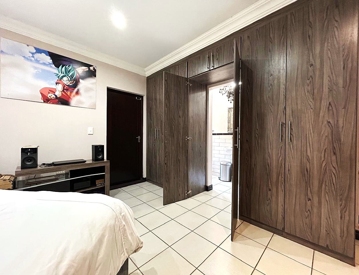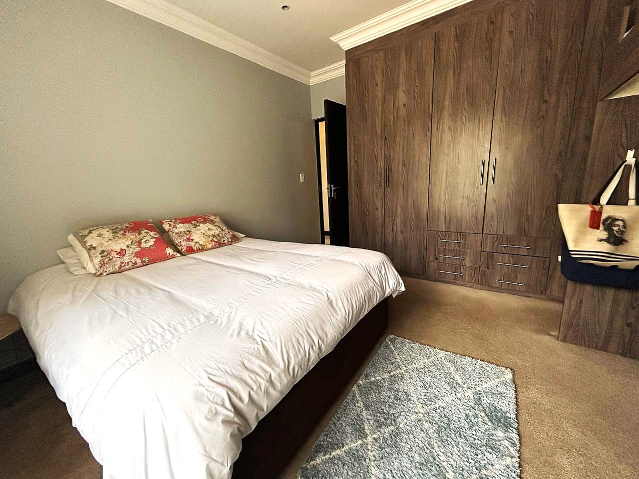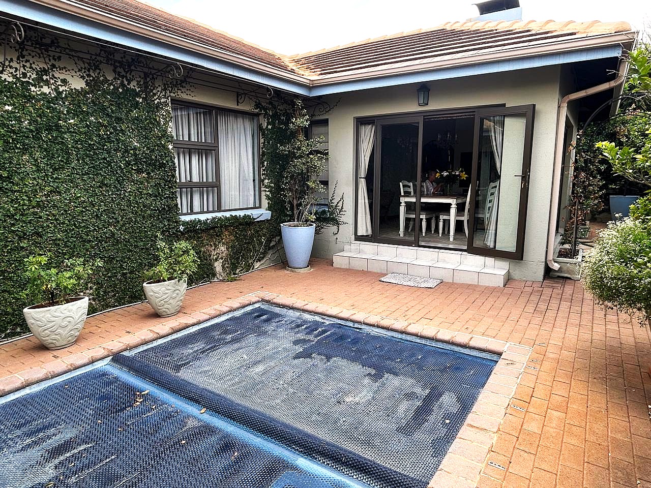 Designed for entertaining, the enclosed braai room boasts stacking aluminium doors that open fully onto the pool and entertainment area — creating a seamless connection between indoor and outdoor living. Beyond this, a tranquil, private space behind the home offers a peaceful retreat, ideal for meditation or afternoon tea.