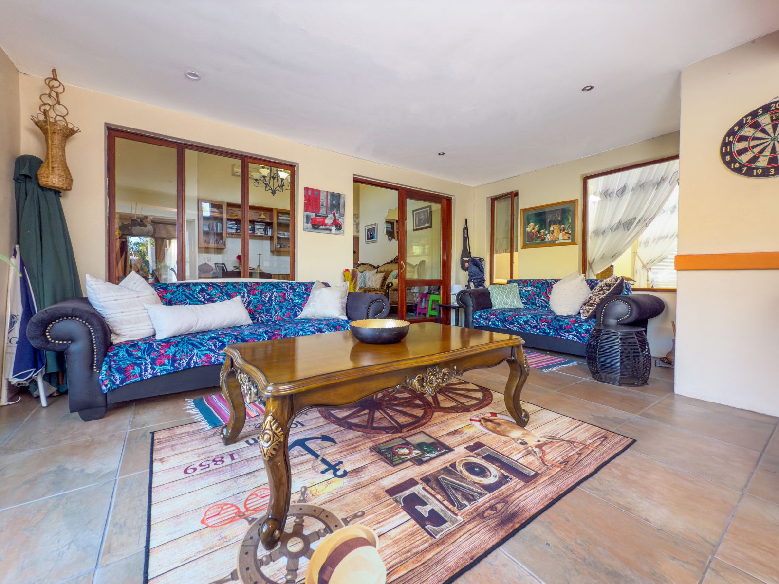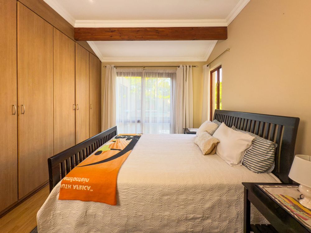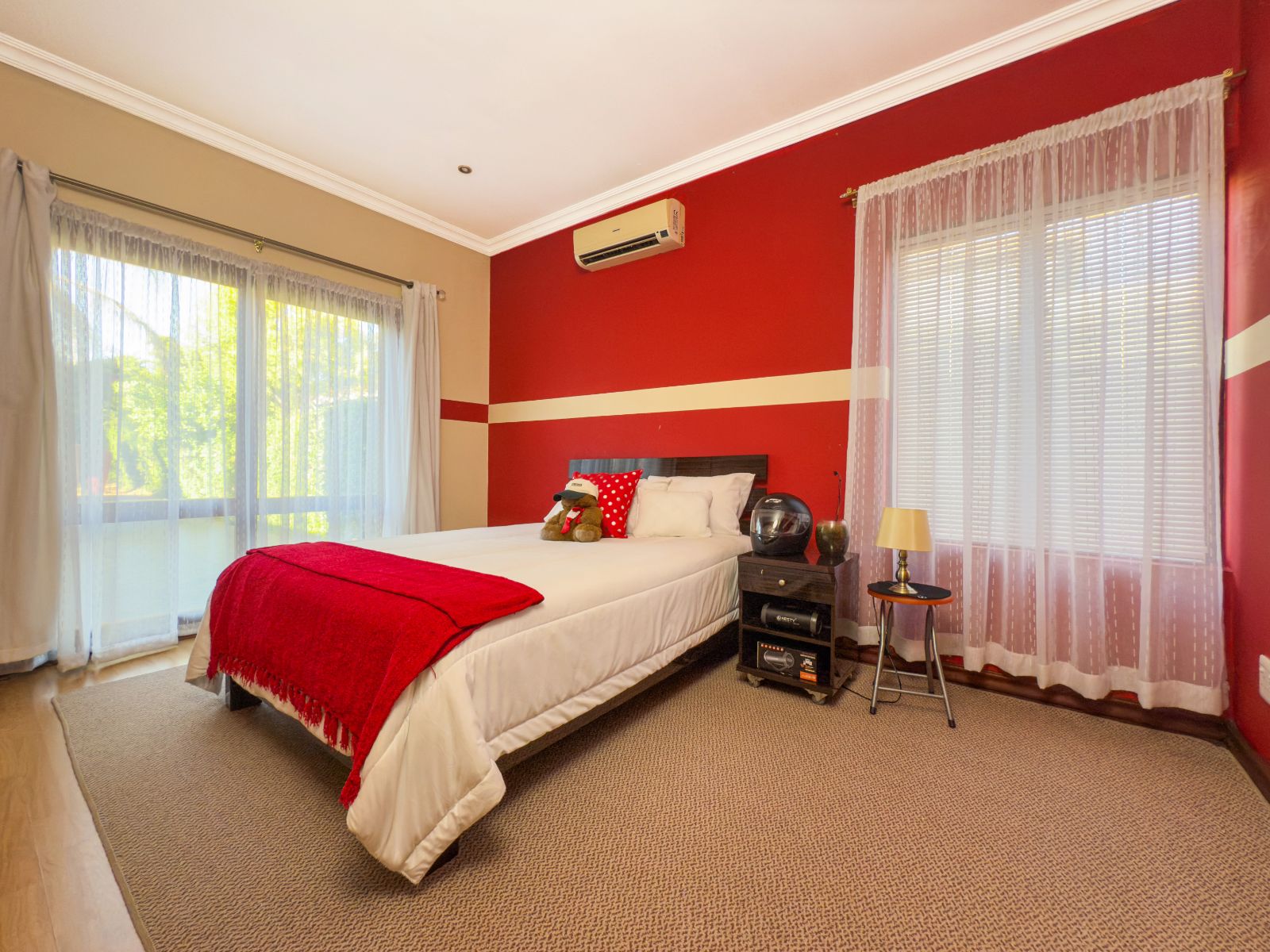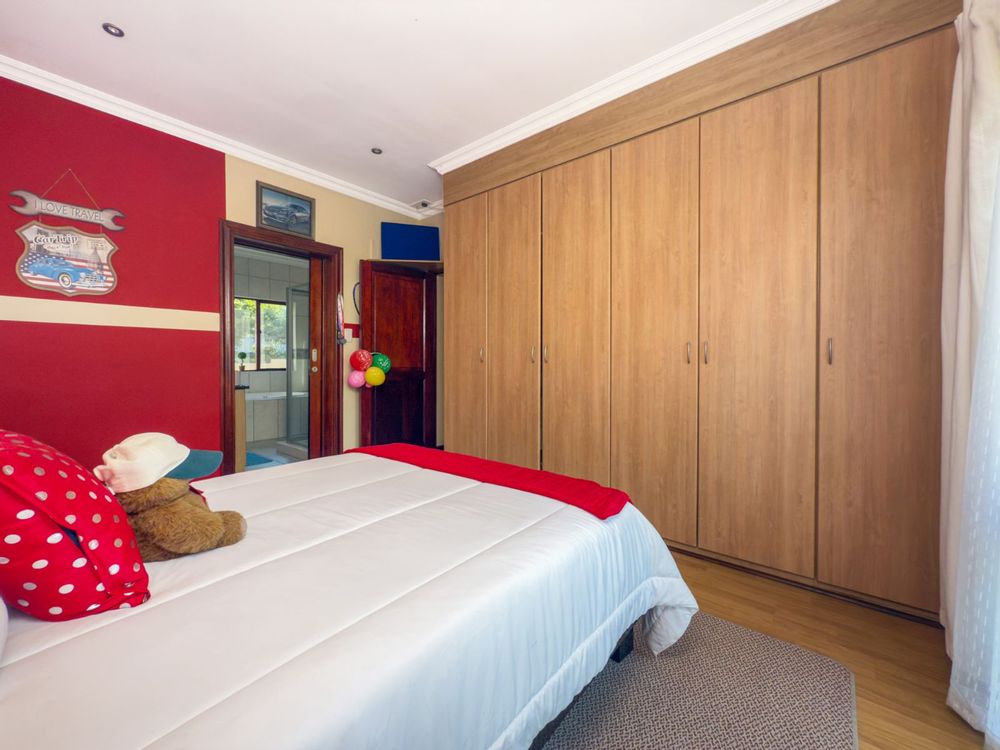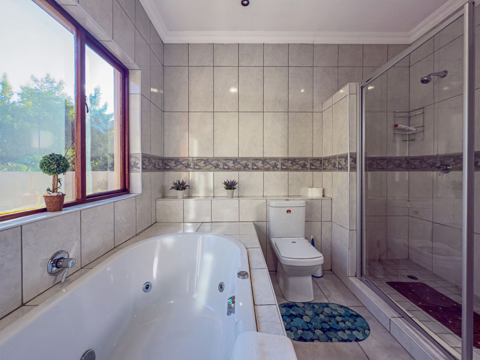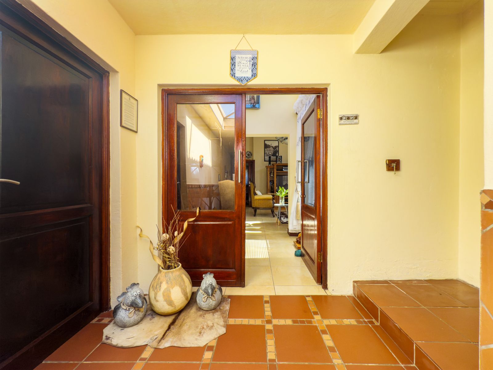 For entertaining, enjoy the formal lounge with floor-to-ceiling shelving, leading to a dedicated entertainment area with a built-in braai and bar—perfect for gatherings with friends and family. Step outside to the private pool and wooden deck for summer relaxation.