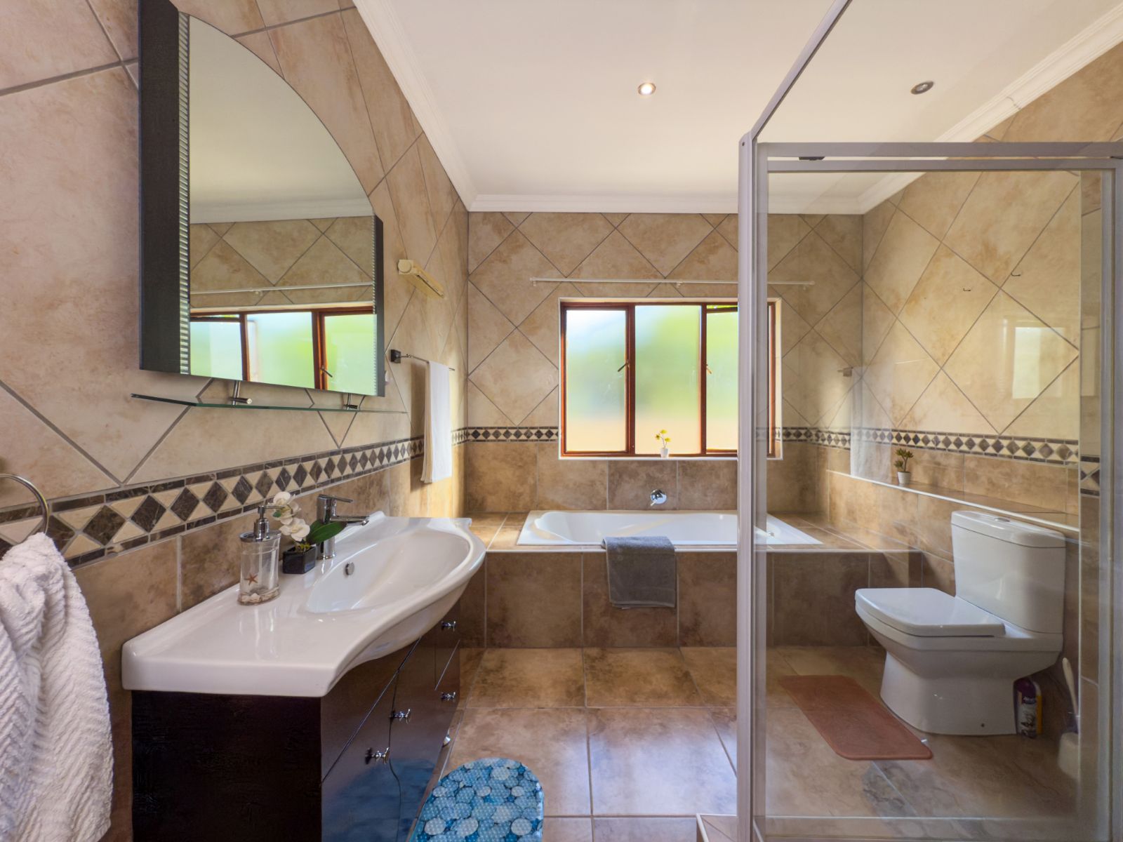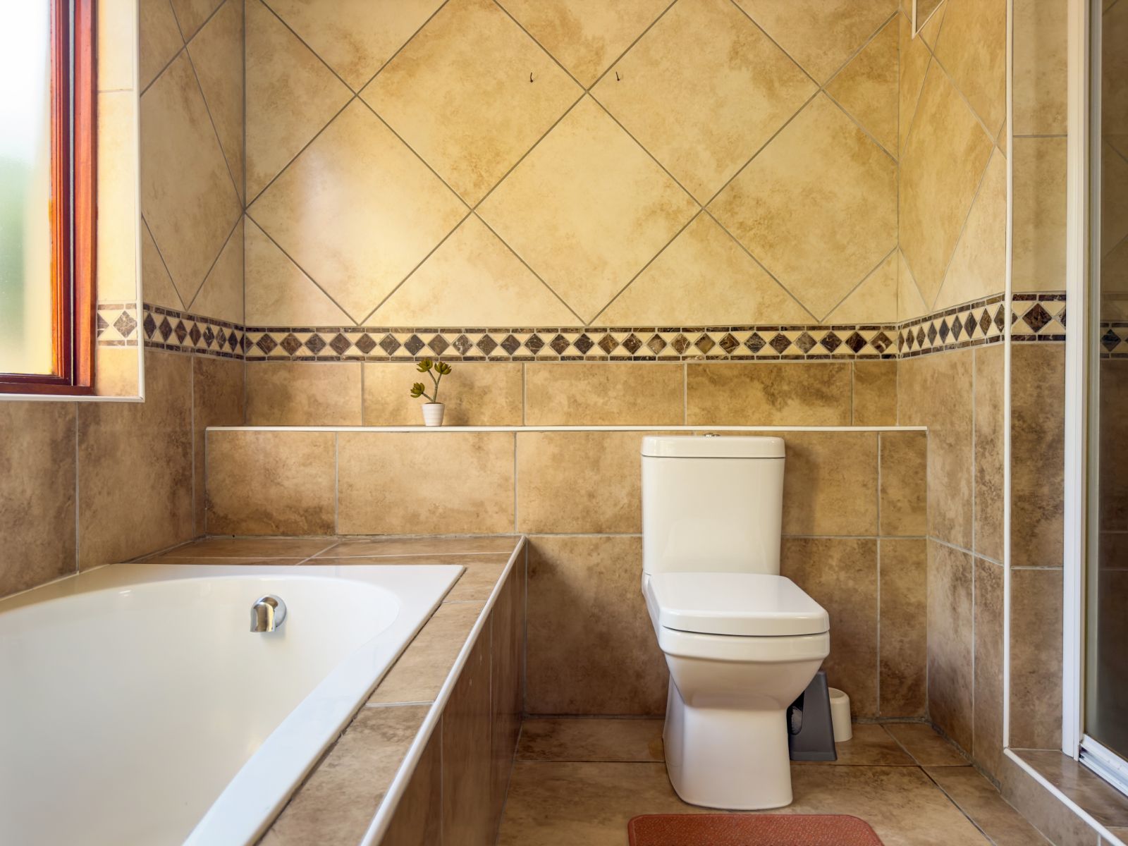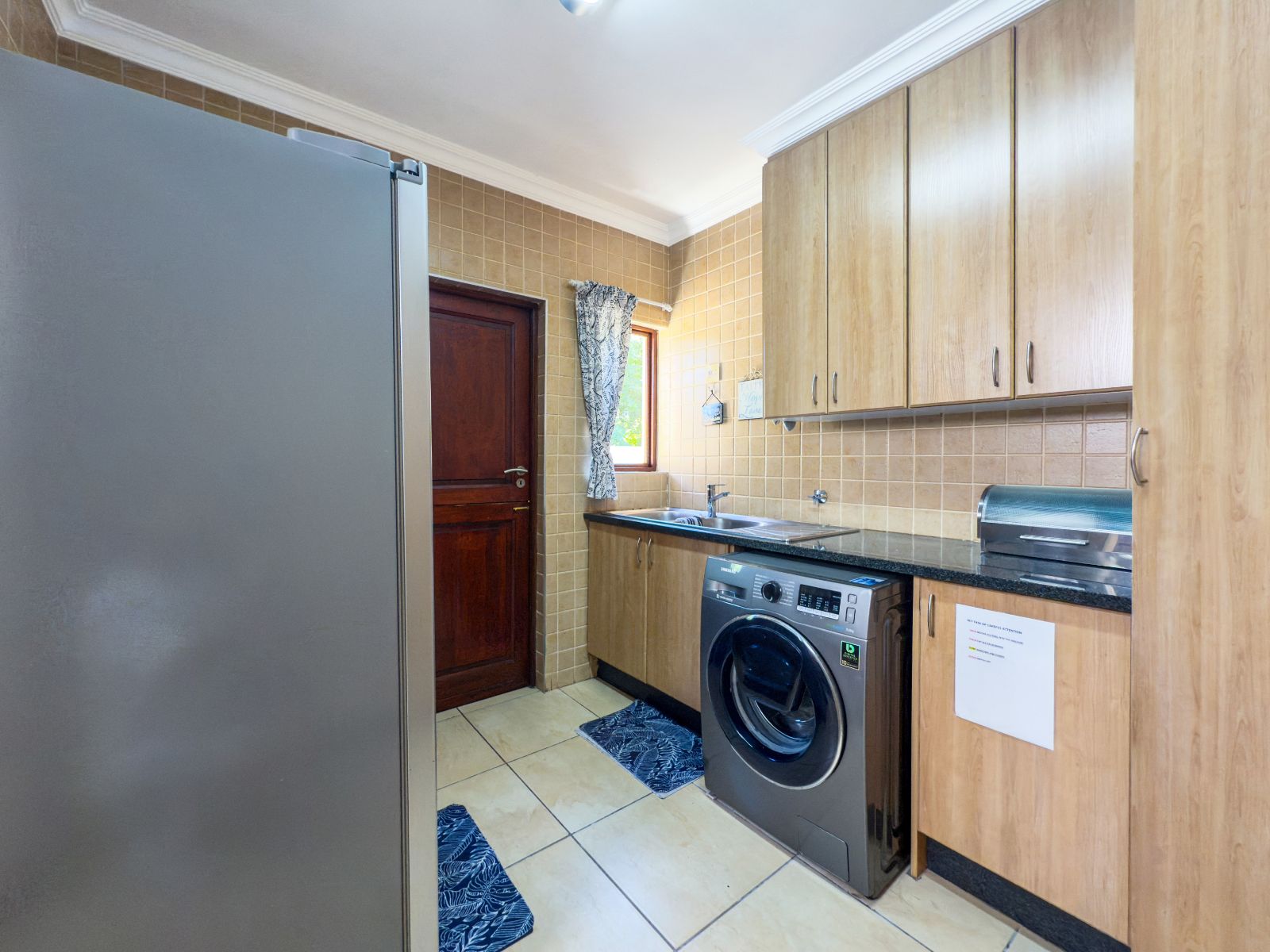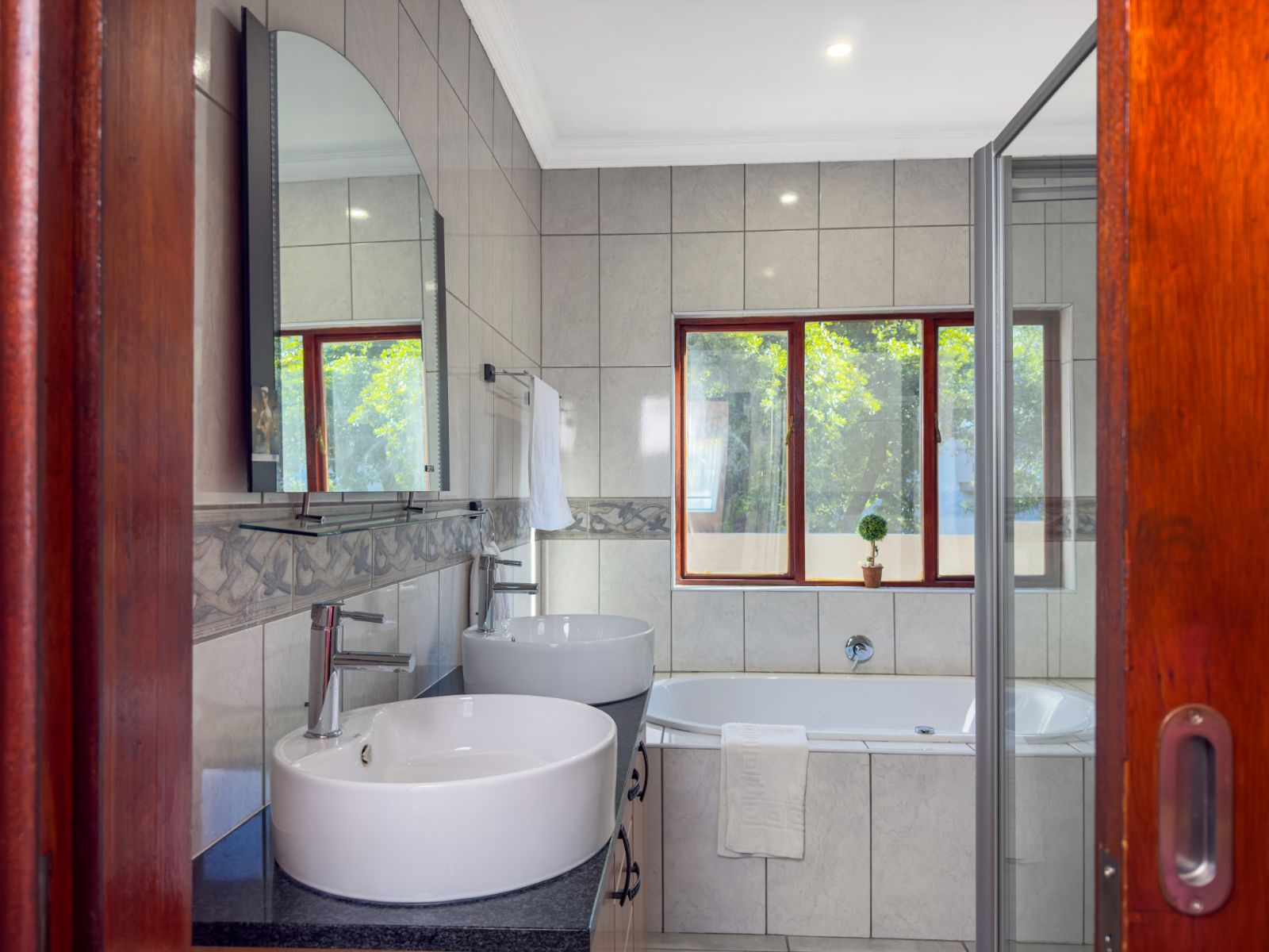 For entertaining, enjoy the formal lounge with floor-to-ceiling shelving, leading to a dedicated entertainment area with a built-in braai and bar—perfect for gatherings with friends and family. Step outside to the private pool and wooden deck for summer relaxation.