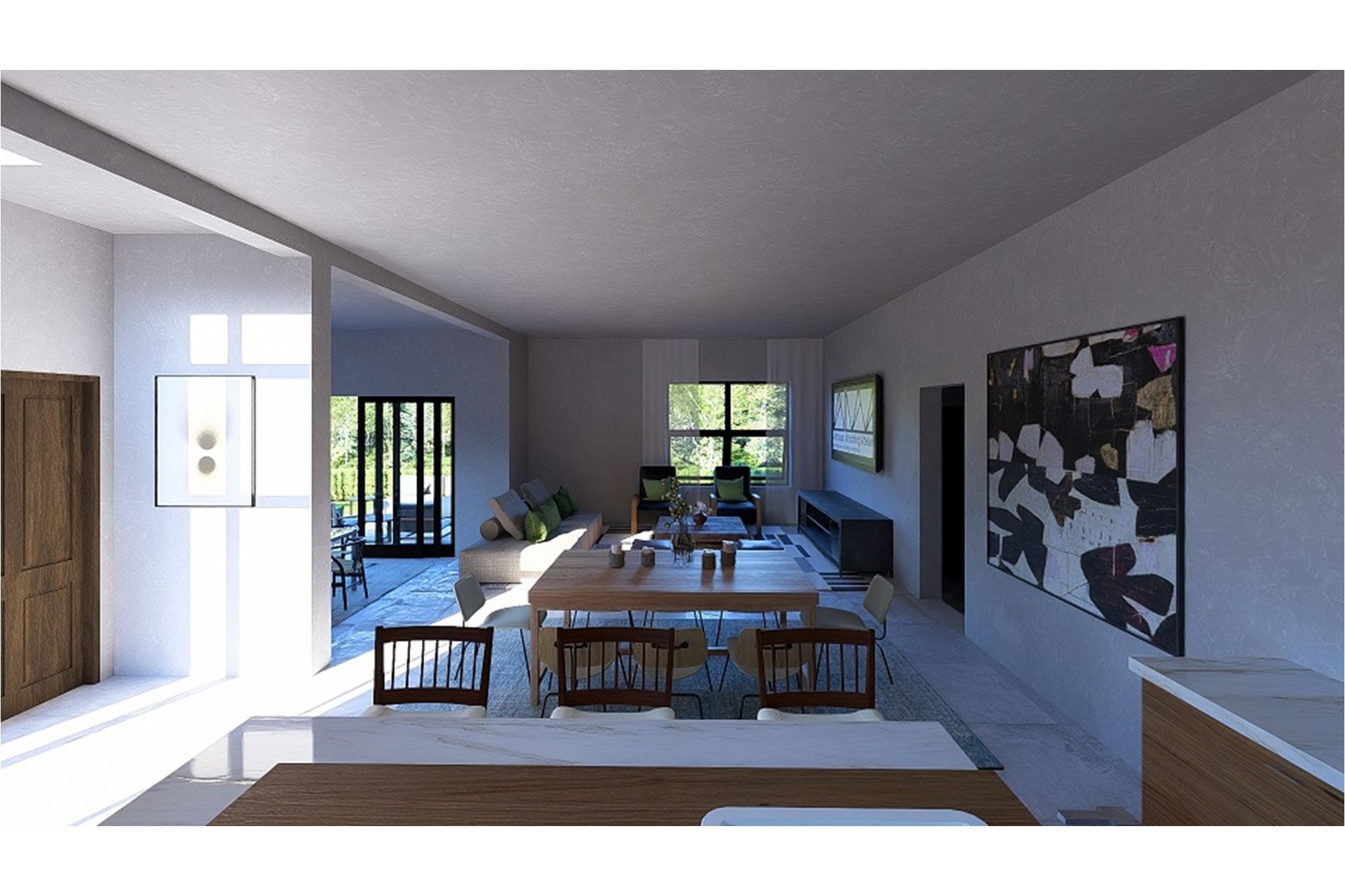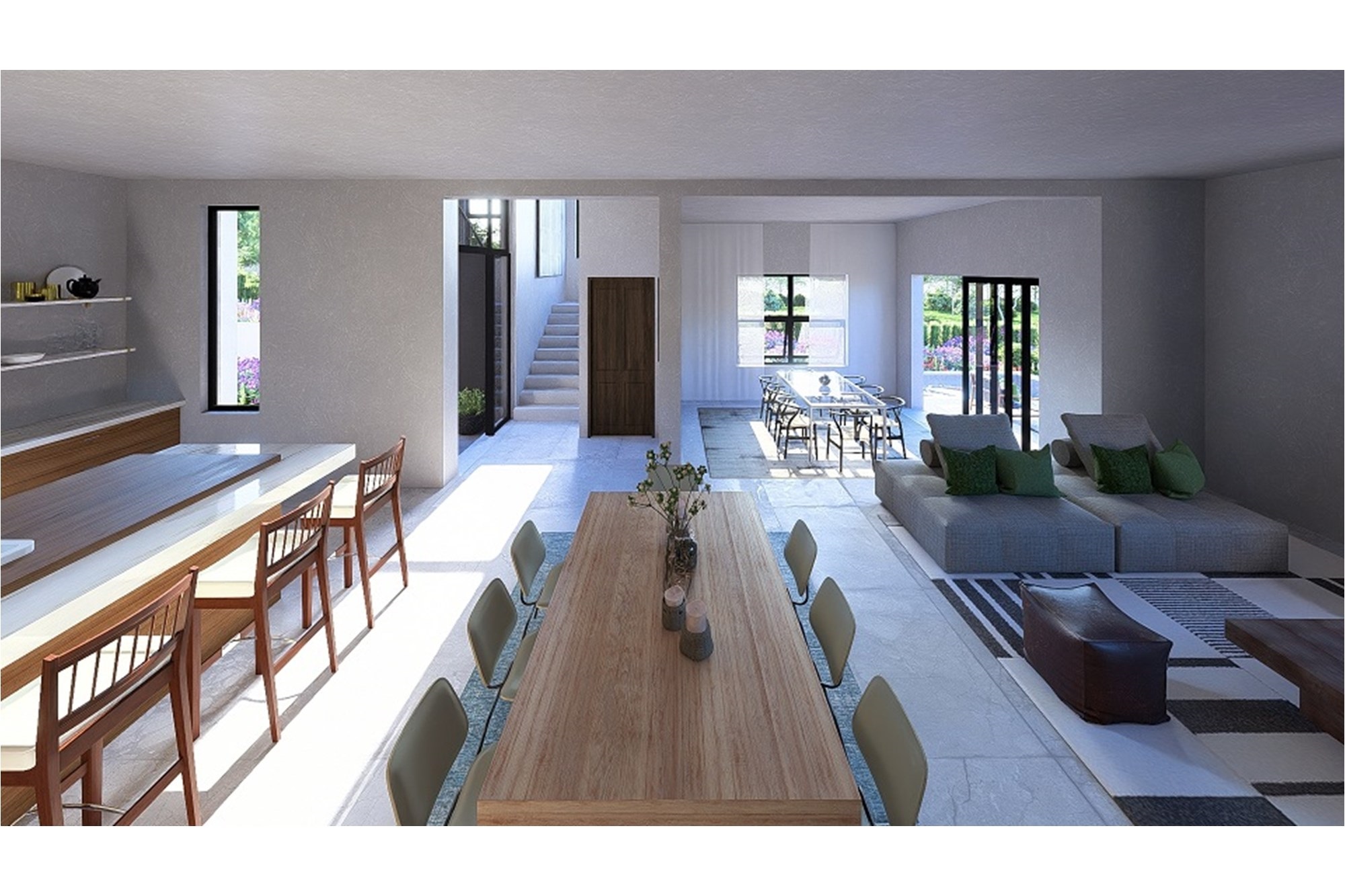 Open plan Kitchen with an Island, breakfast nook and separate Scullery.