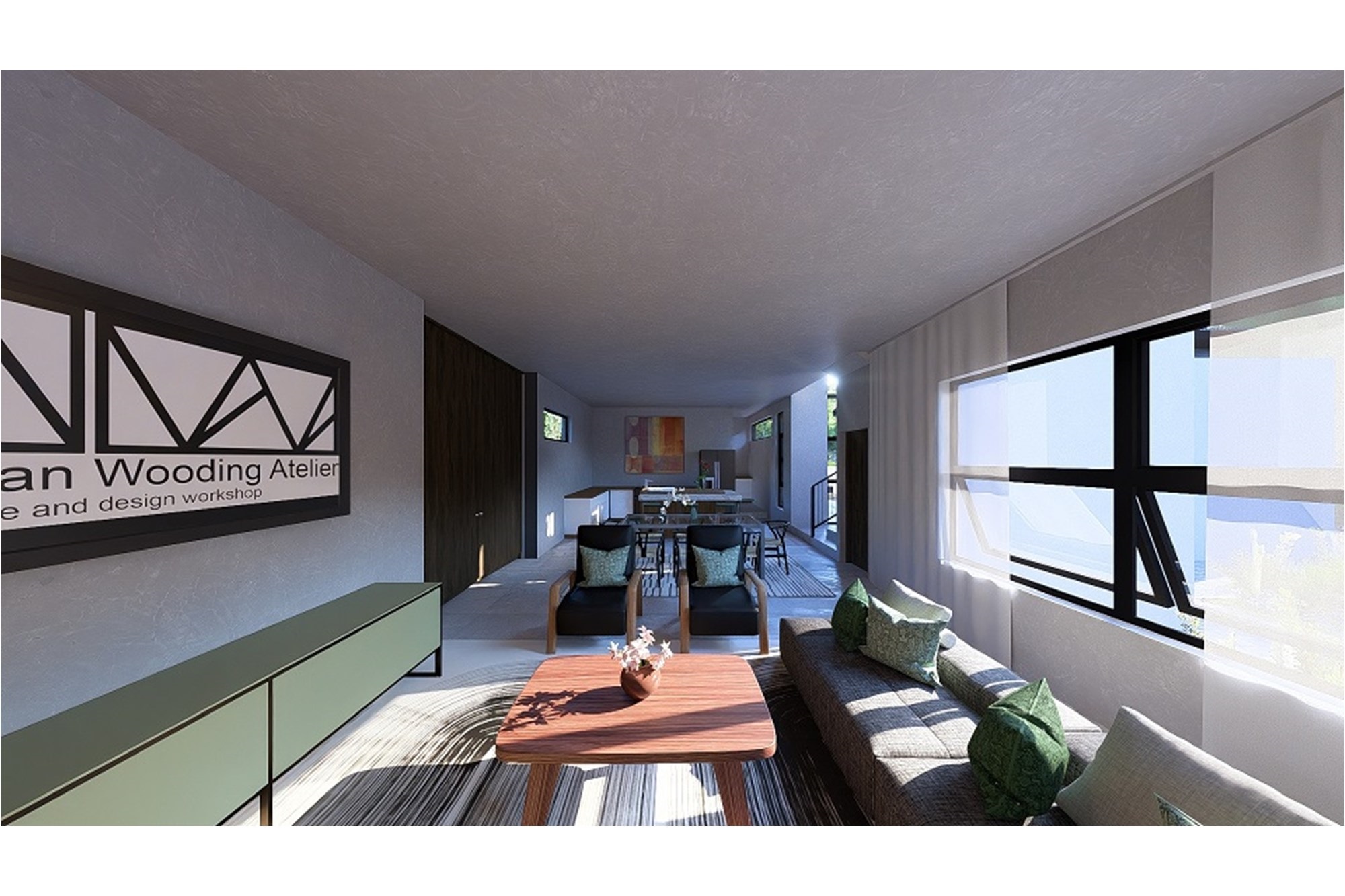 Open plan Kitchen with an Island, breakfast nook and separate Scullery.