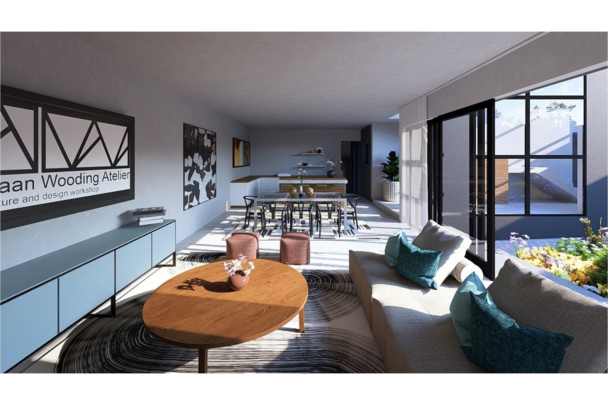 Modern Open plan kitchen with an Island and Integrated Fridge.