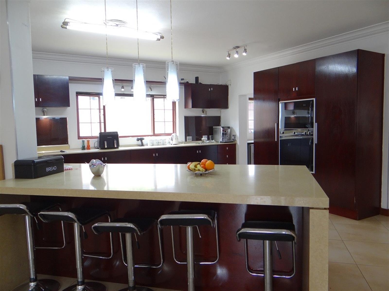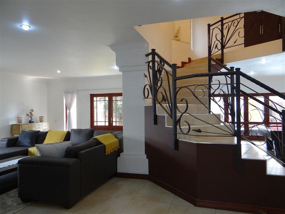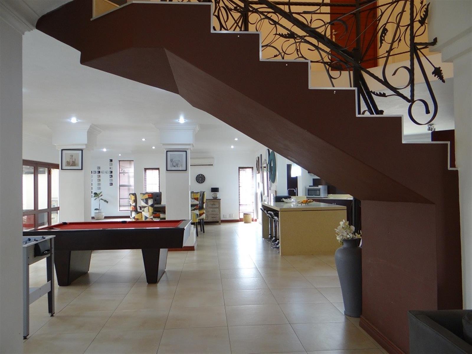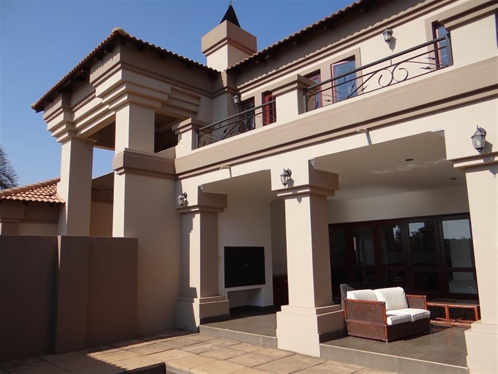7 Bedroom House for sale in Midstream Proper for the larger Family. Excellent location and walking distance to the main schools and main shopping center. Designed for entertainment of your family and friends with a large open plan entertainment area with a centralized staircase as a feature. Offering 2 Bedrooms and a bathroom downstairs, family lounge and dining room visible from the open plan kitchen. Separate Scullery with ample Pantry storage and all your appliances. Domestic room and Bathroom and a Large Patio with a Built-in Braai next to the Pool. 4 Garages and Irrigation.