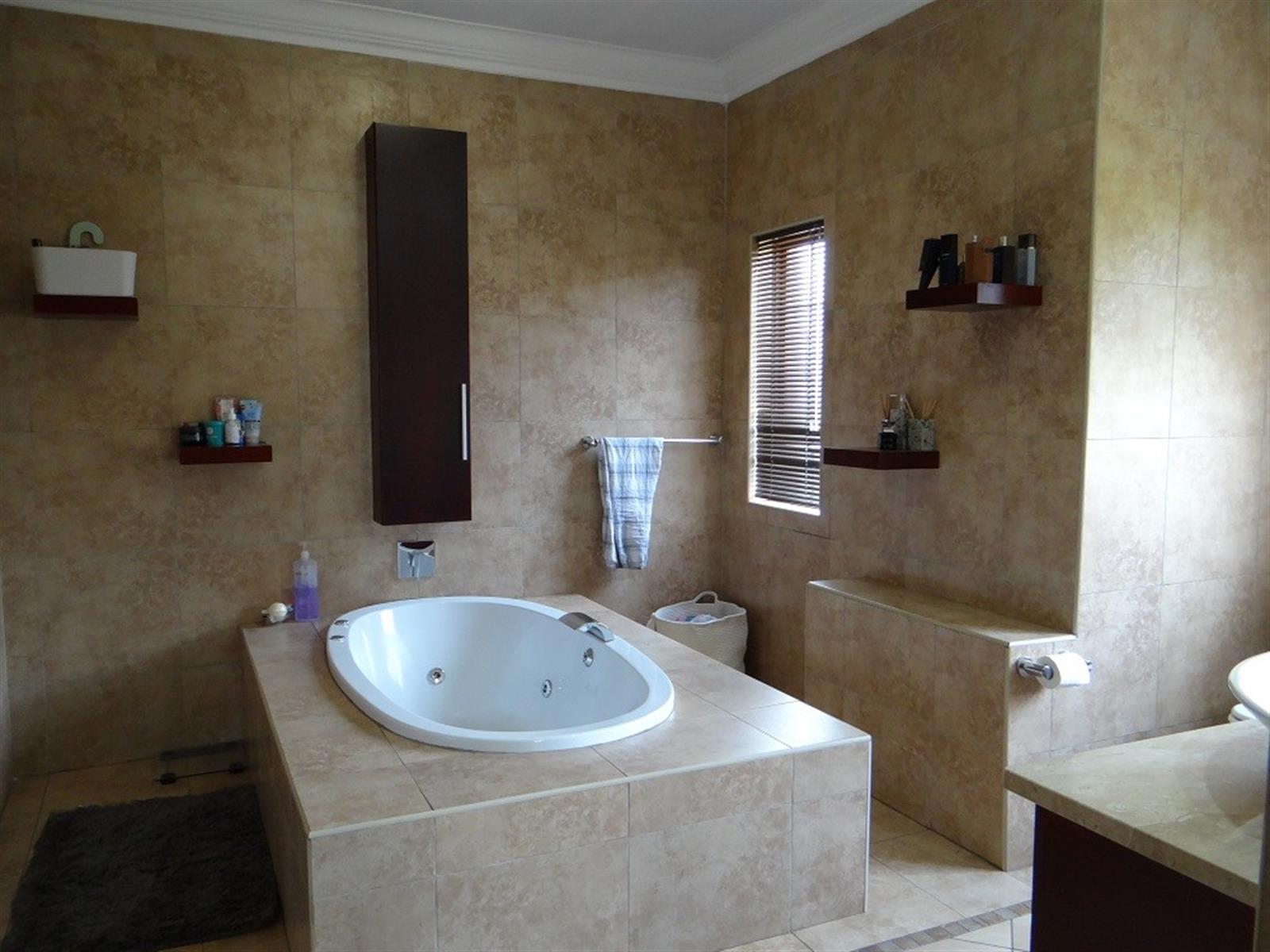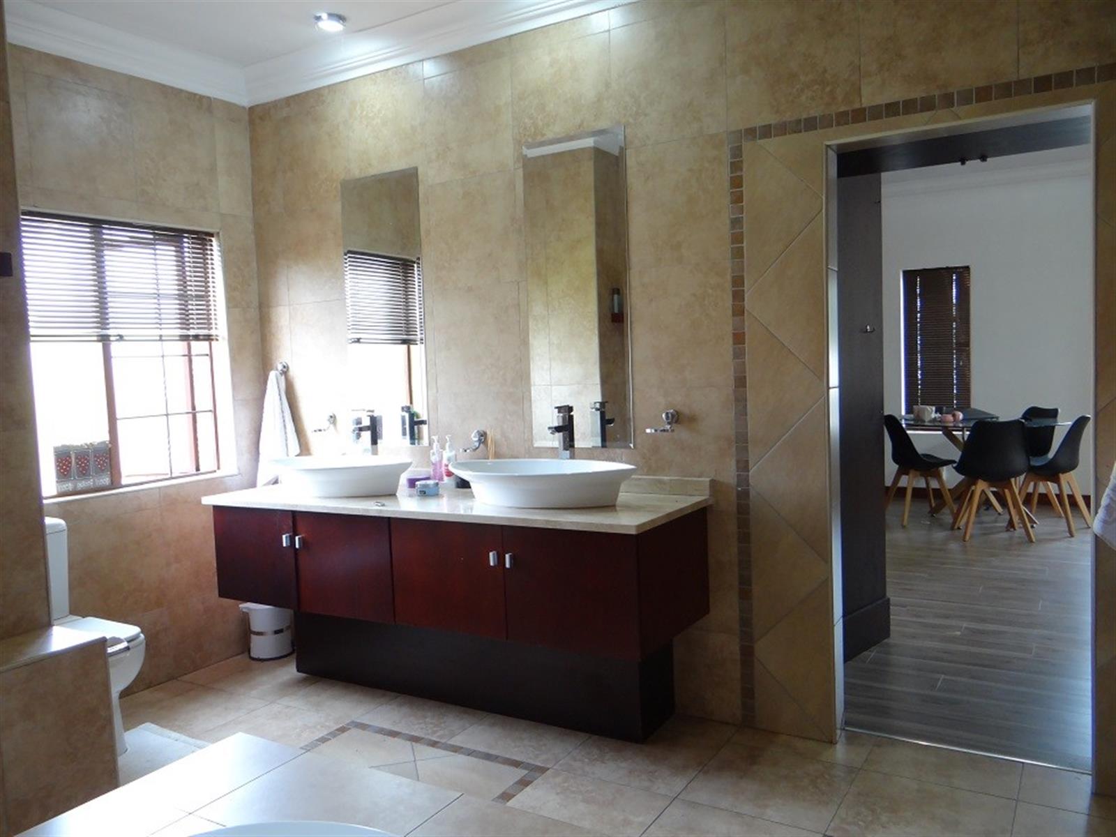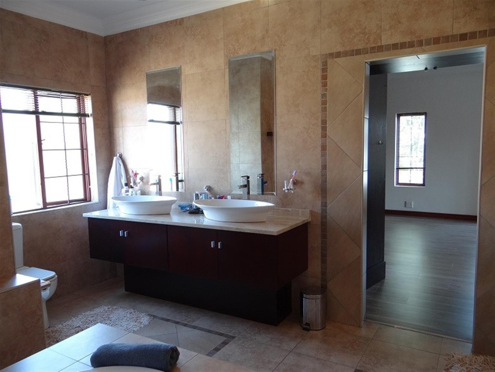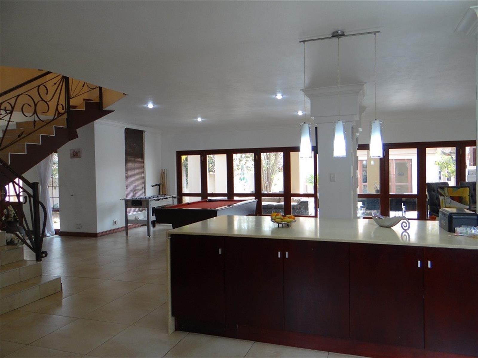 7 Bedroom House for sale in Midstream Proper for the larger Family. Excellent location and walking distance to the main schools and main shopping center. Designed for entertainment of your family and friends with a large open plan entertainment area with a centralized staircase as a feature. Offering 2 Bedrooms and a bathroom downstairs, family lounge and dining room visible from the open plan kitchen. Separate Scullery with ample Pantry storage and all your appliances. Domestic room and Bathroom and a Large Patio with a Built-in Braai next to the Pool. 4 Garages and Irrigation.