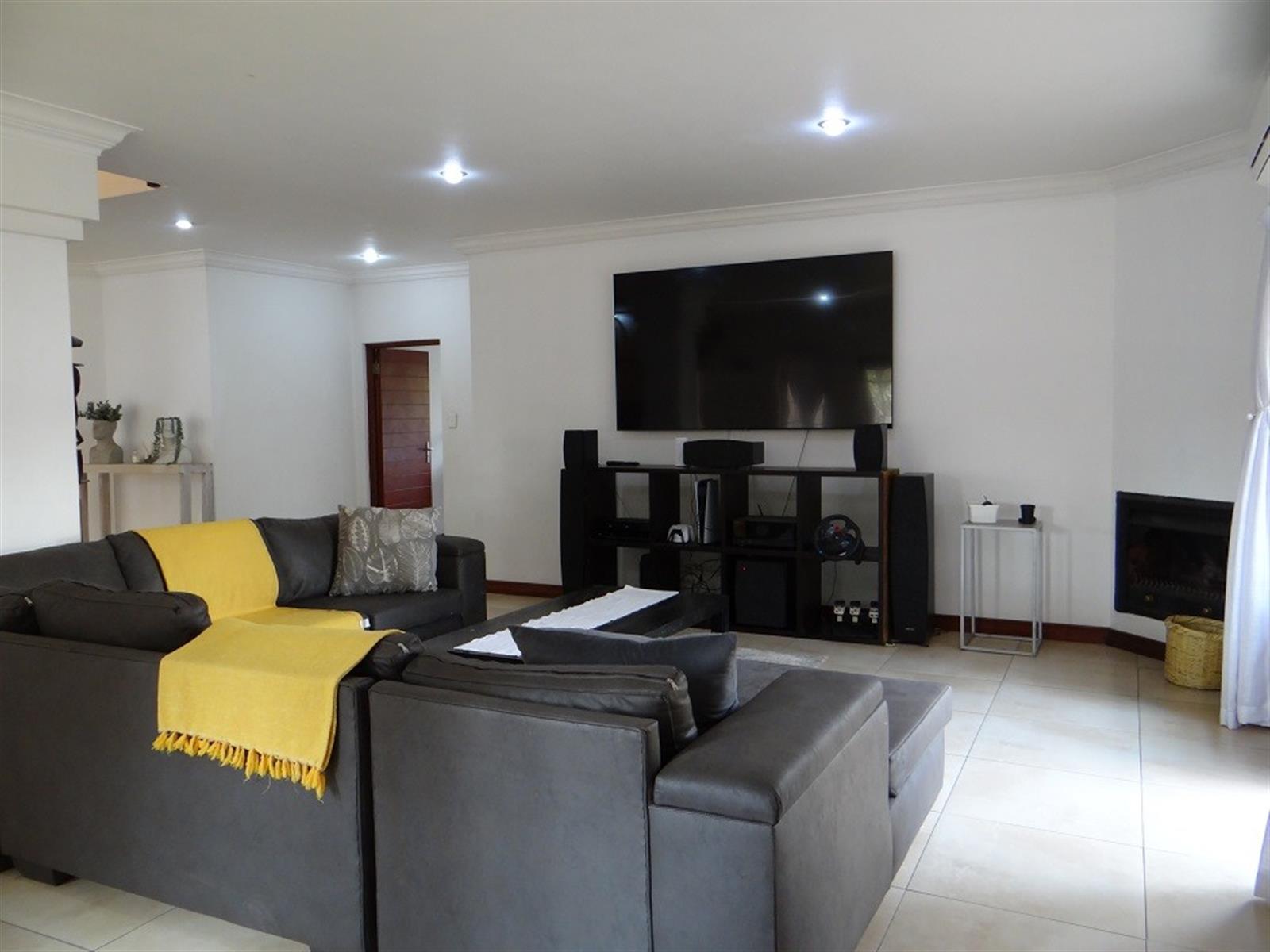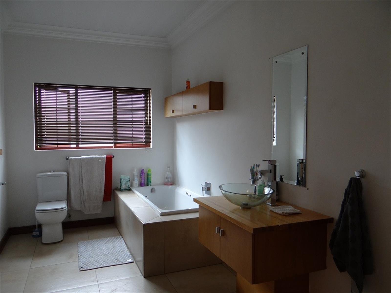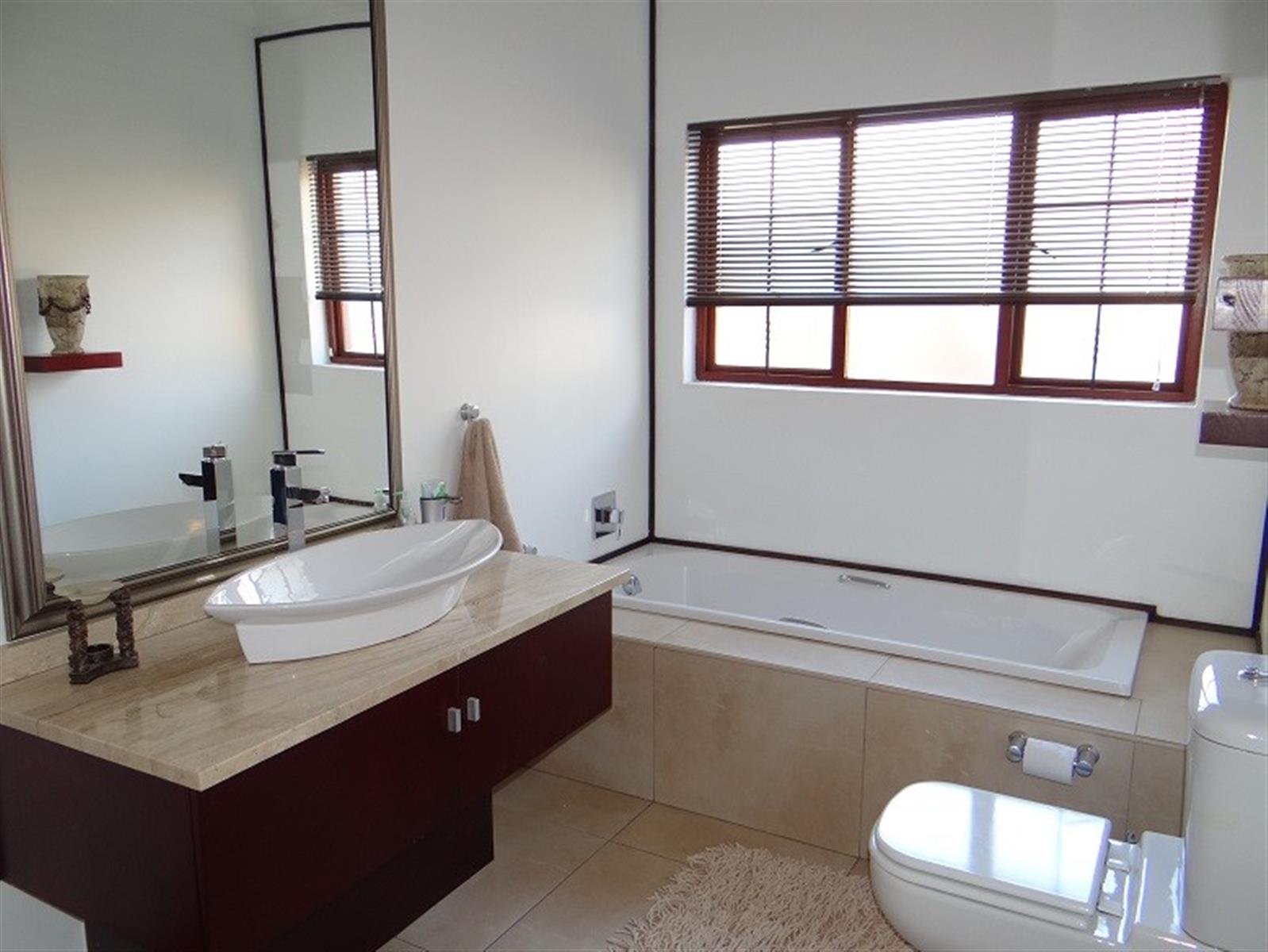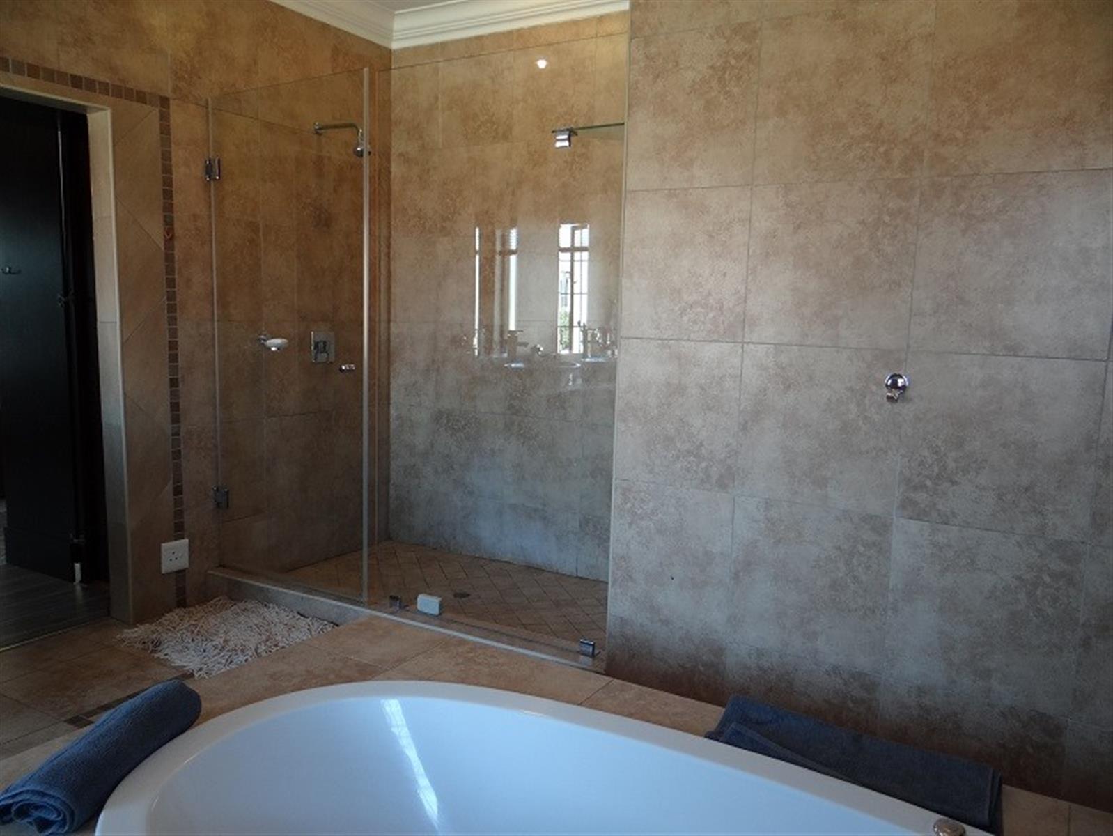 7 Bedroom House for sale in Midstream Proper for the larger Family. Excellent location and walking distance to the main schools and main shopping center. Designed for entertainment of your family and friends with a large open plan entertainment area with a centralized staircase as a feature. Offering 2 Bedrooms and a bathroom downstairs, family lounge and dining room visible from the open plan kitchen. Separate Scullery with ample Pantry storage and all your appliances. Domestic room and Bathroom and a Large Patio with a Built-in Braai next to the Pool. 4 Garages and Irrigation.