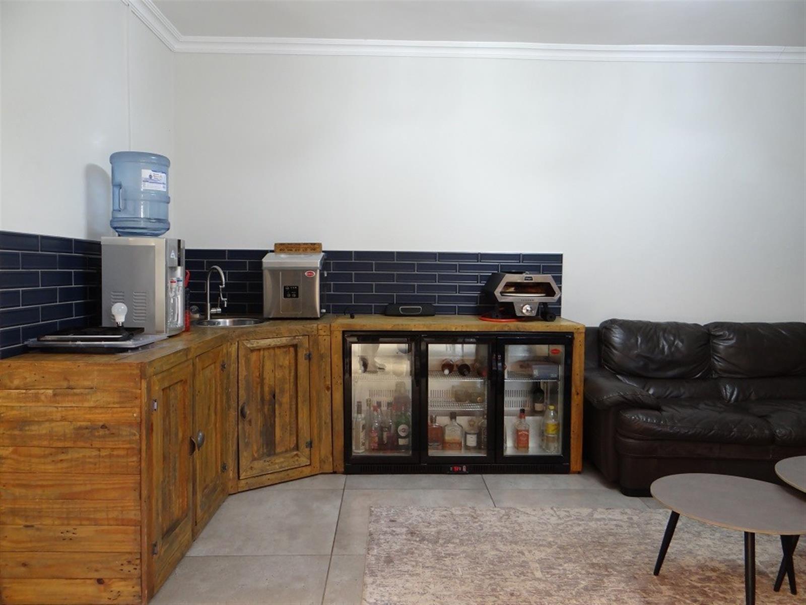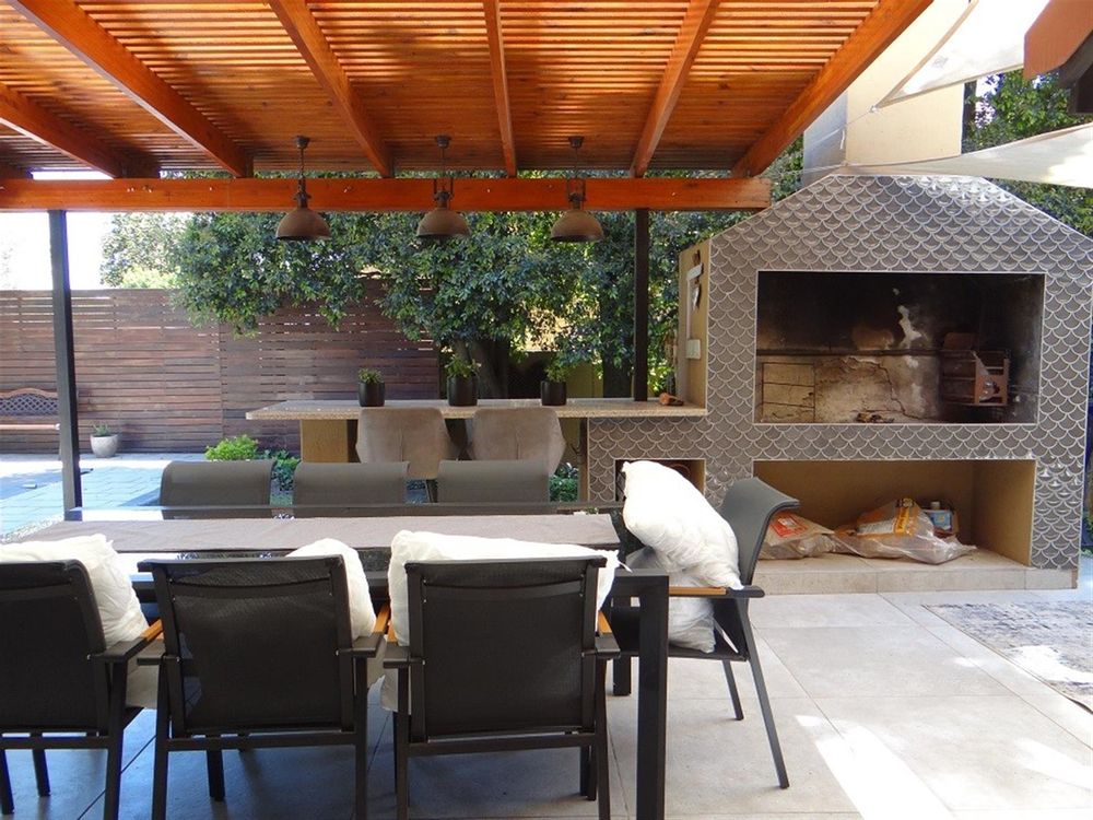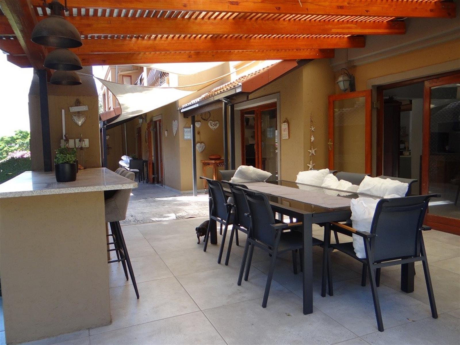 Covered entertainment area with built-in braai overlooking the swimming pool making it ideal for entertaining;