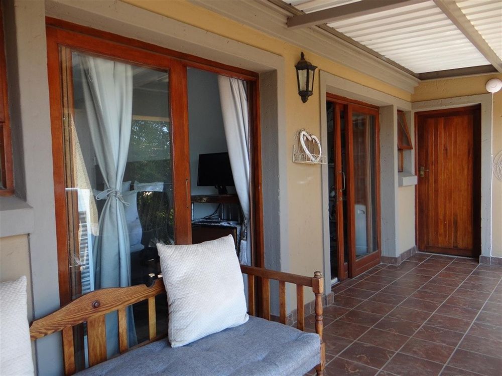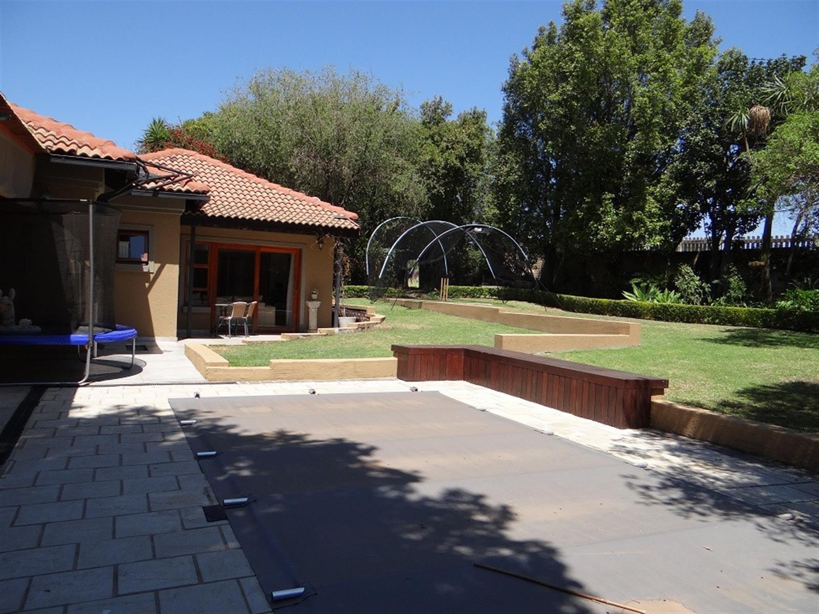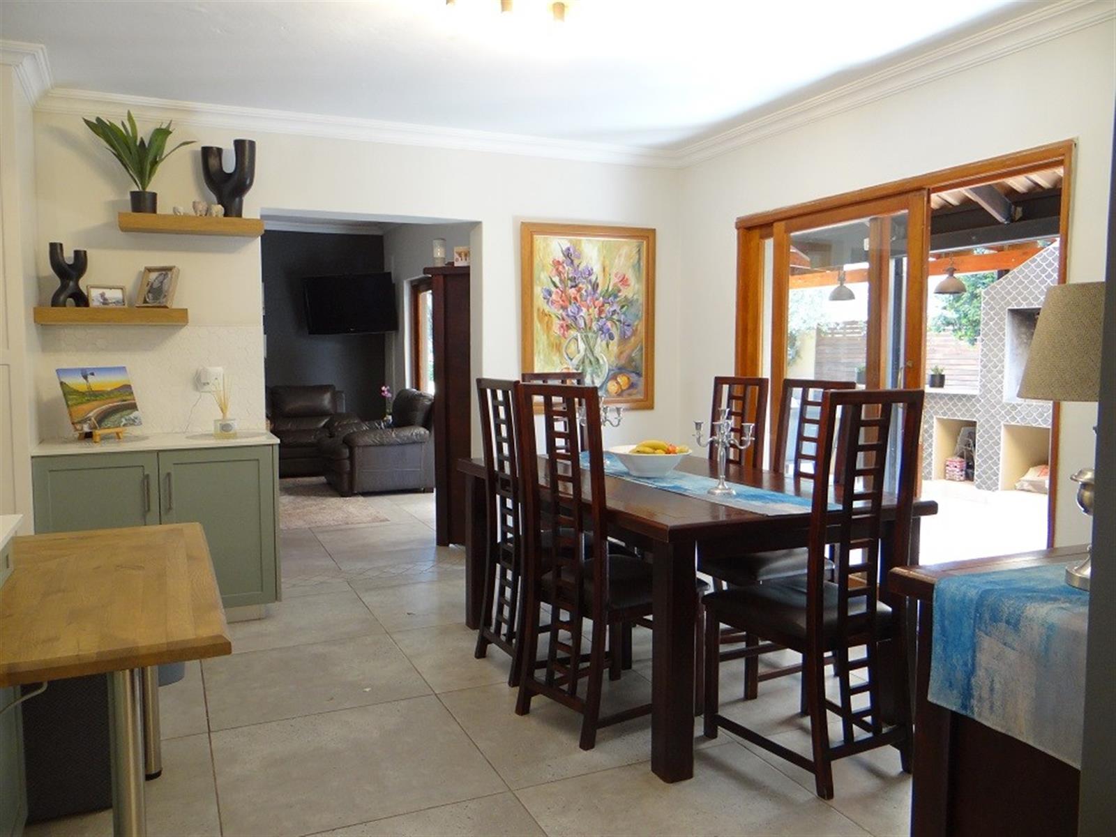Covered entertainment area with built-in braai overlooking the swimming pool making it ideal for entertaining;