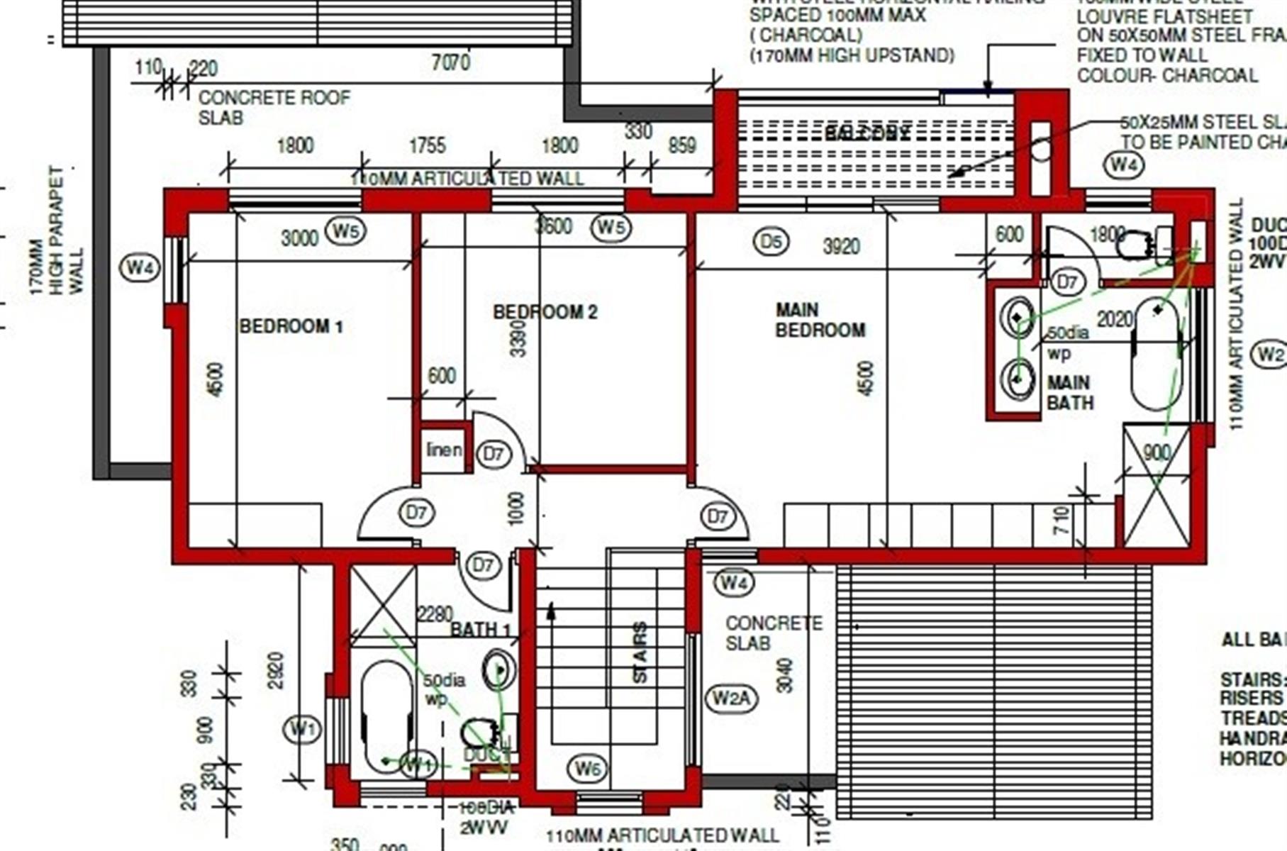 Main bedroom with a Walk-in Closet, Balcony and En-Suite bathroom.
