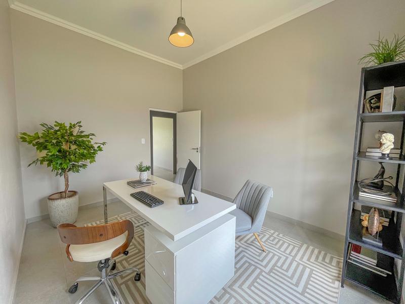 The kitchen is a chef’s dream, featuring granite countertops, a breakfast nook, and a separate scullery, pantry, and laundry room. Adjacent to the main living areas is a private study, ideal for working from home. The home offers Five generously sized bedrooms, including a luxurious master suite complete with a walk-in closet, full en-suite bathroom, and glass sliding doors that open out to the beautifully landscaped garden.