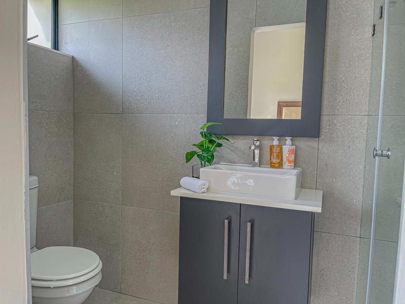 There are four stylish bathrooms throughout the home, along with a separate staff room for added convenience. Outdoor living is enhanced by a custom-designed boma area with built-in seating, perfect for cozy evenings around the fire. The north-facing garden ensures an abundance of natural light throughout the day, while three spacious garages provide ample room for vehicles and storage.