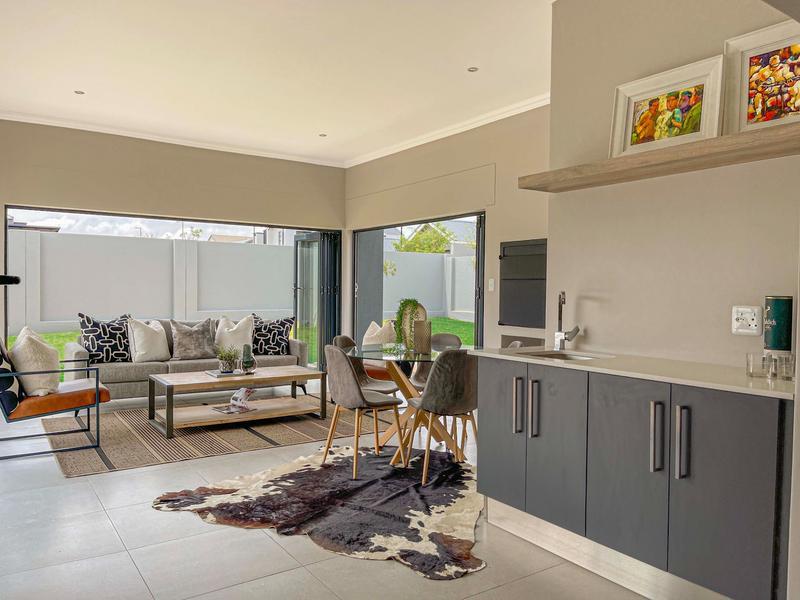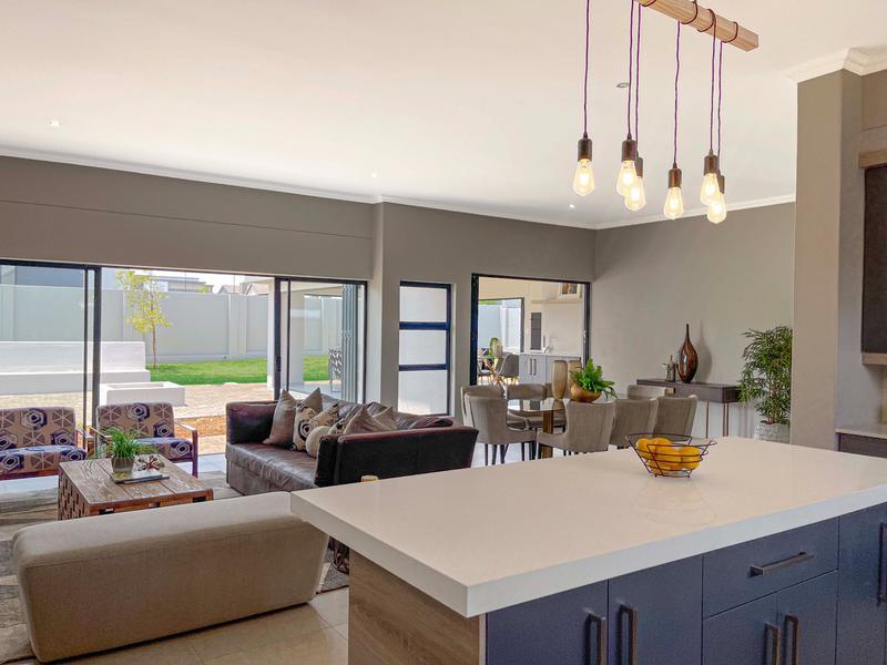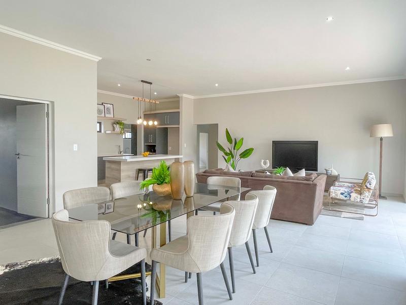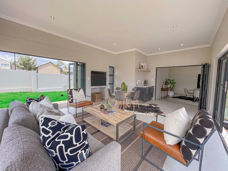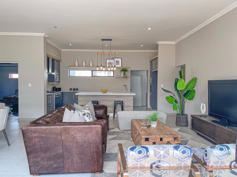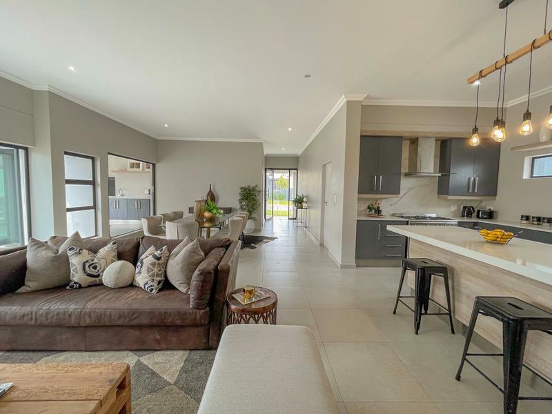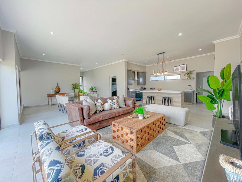 Step inside to discover spacious, modern interiors where the open-plan kitchen, dining area, and lounge flow effortlessly into a covered braai room and a second lounge—creating the perfect environment for entertaining or relaxing with family and friends.