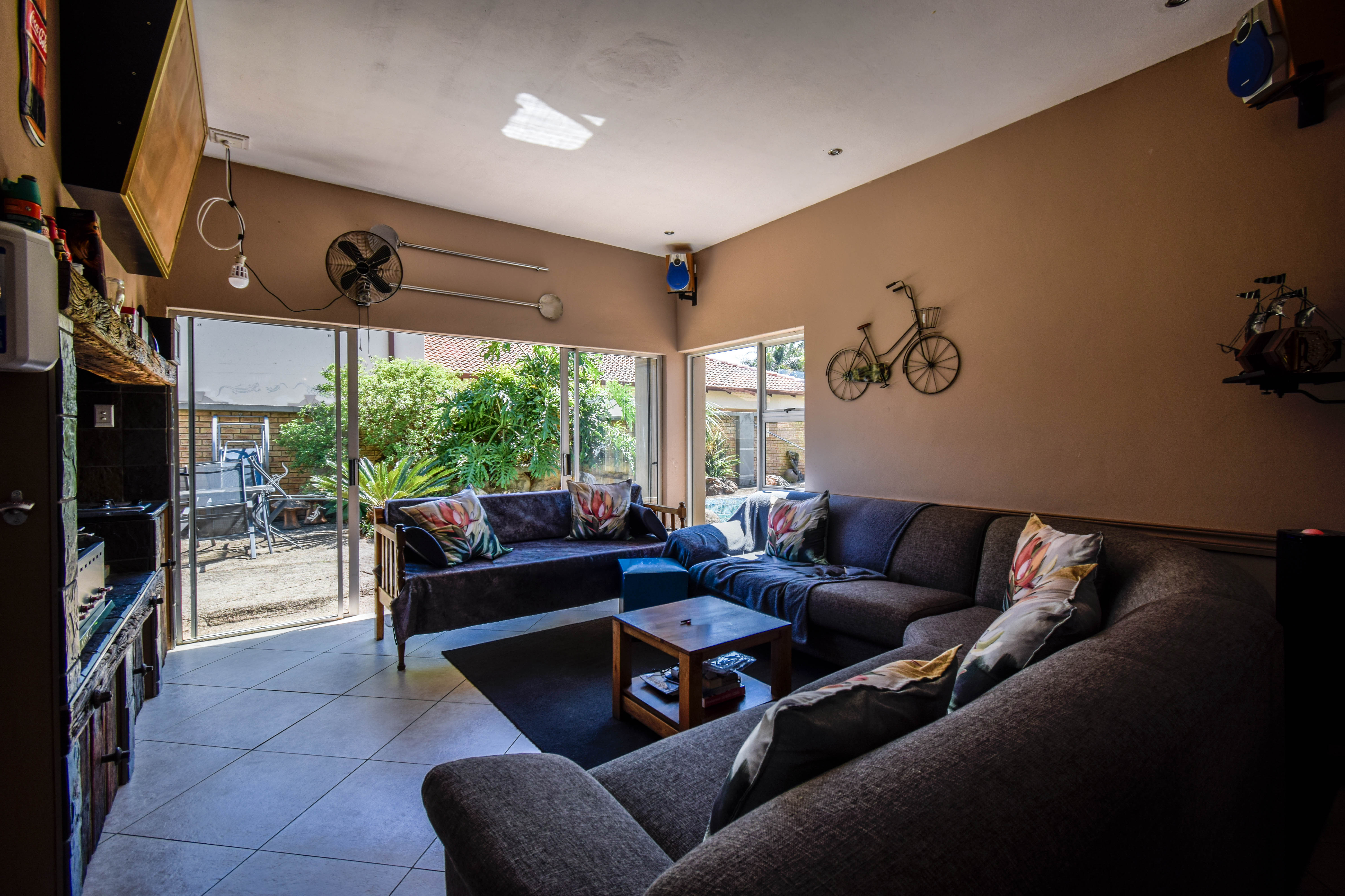 Upon entering, you're welcomed into a light-filled open-plan layout. The kitchen is a standout feature with ample cupboard space and a generous scullery tucked just off to the side. It flows effortlessly into the dining area, which connects seamlessly to a large, comfortable lounge. The lounge leads into a beautifully designed entertainment area complete with a built-in braai and countertops — perfect for hosting guests all year round.