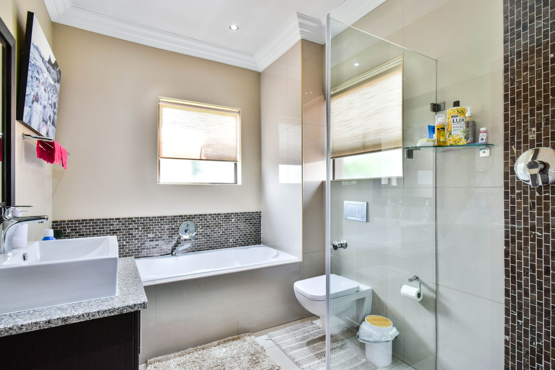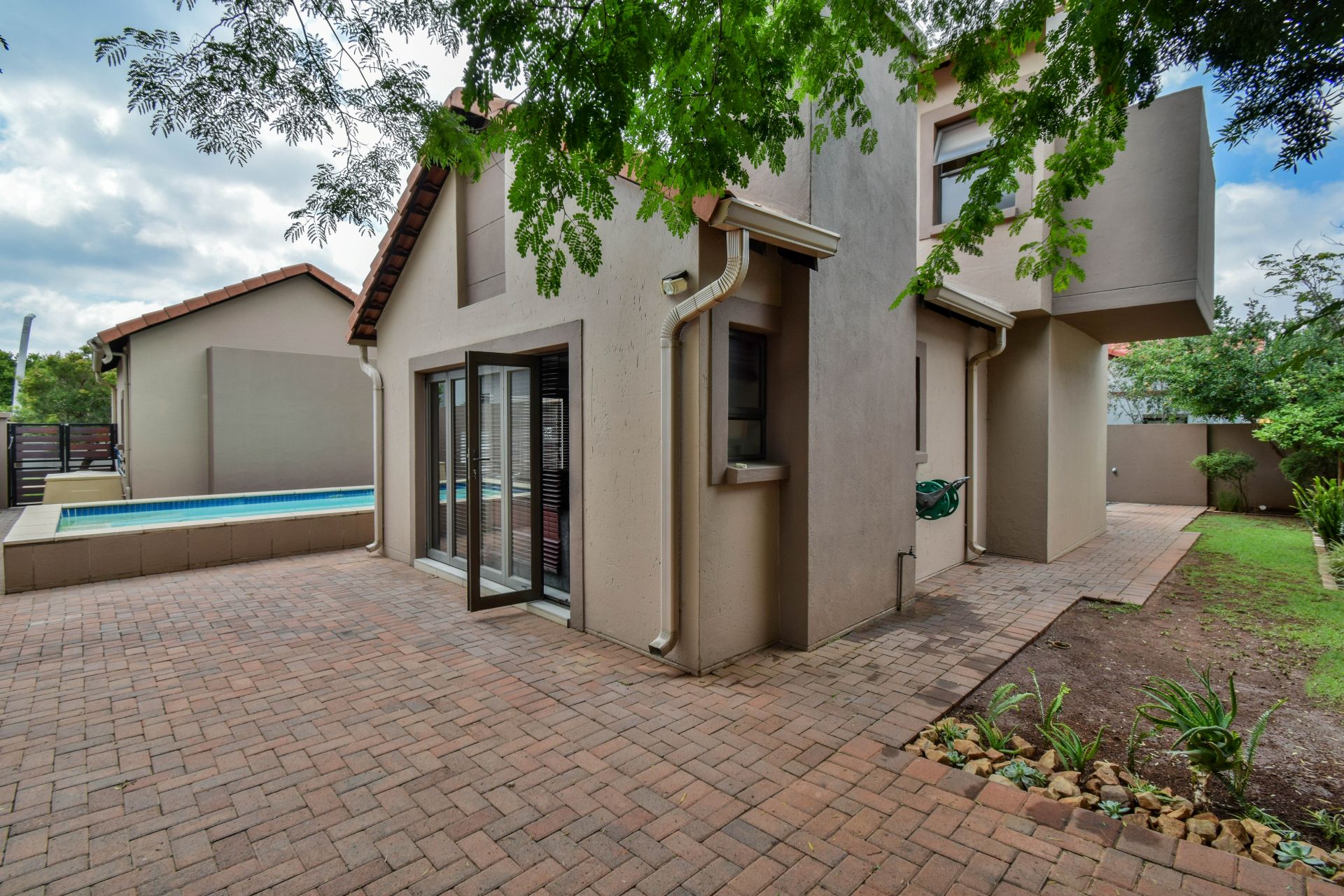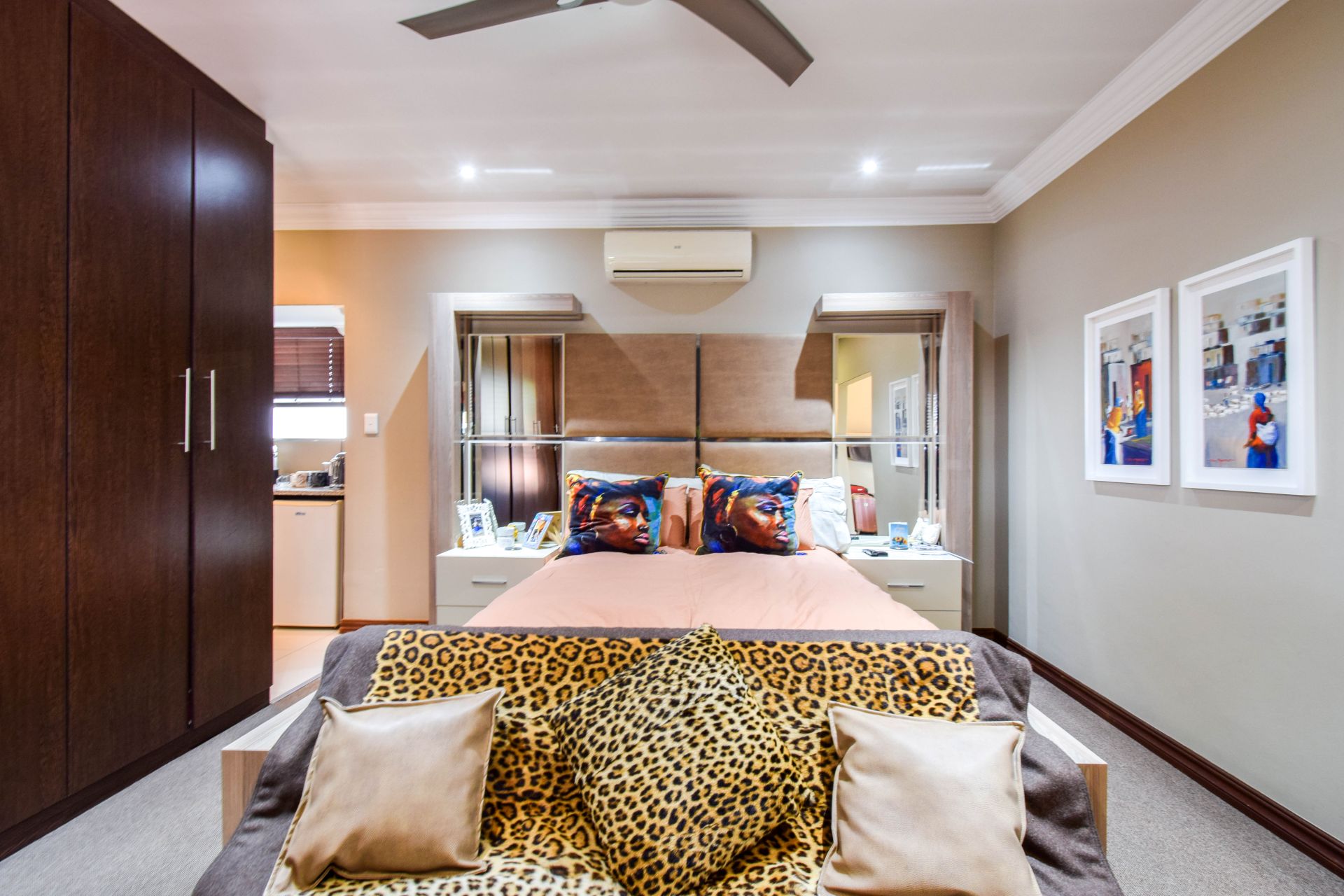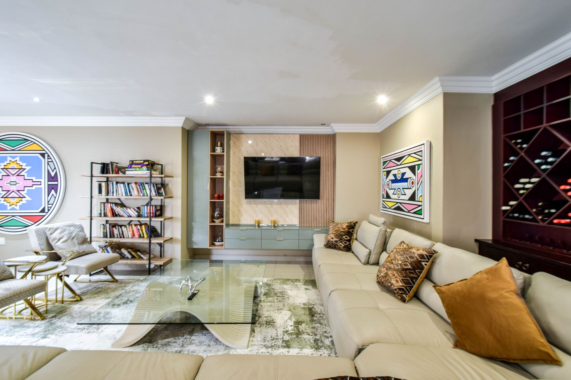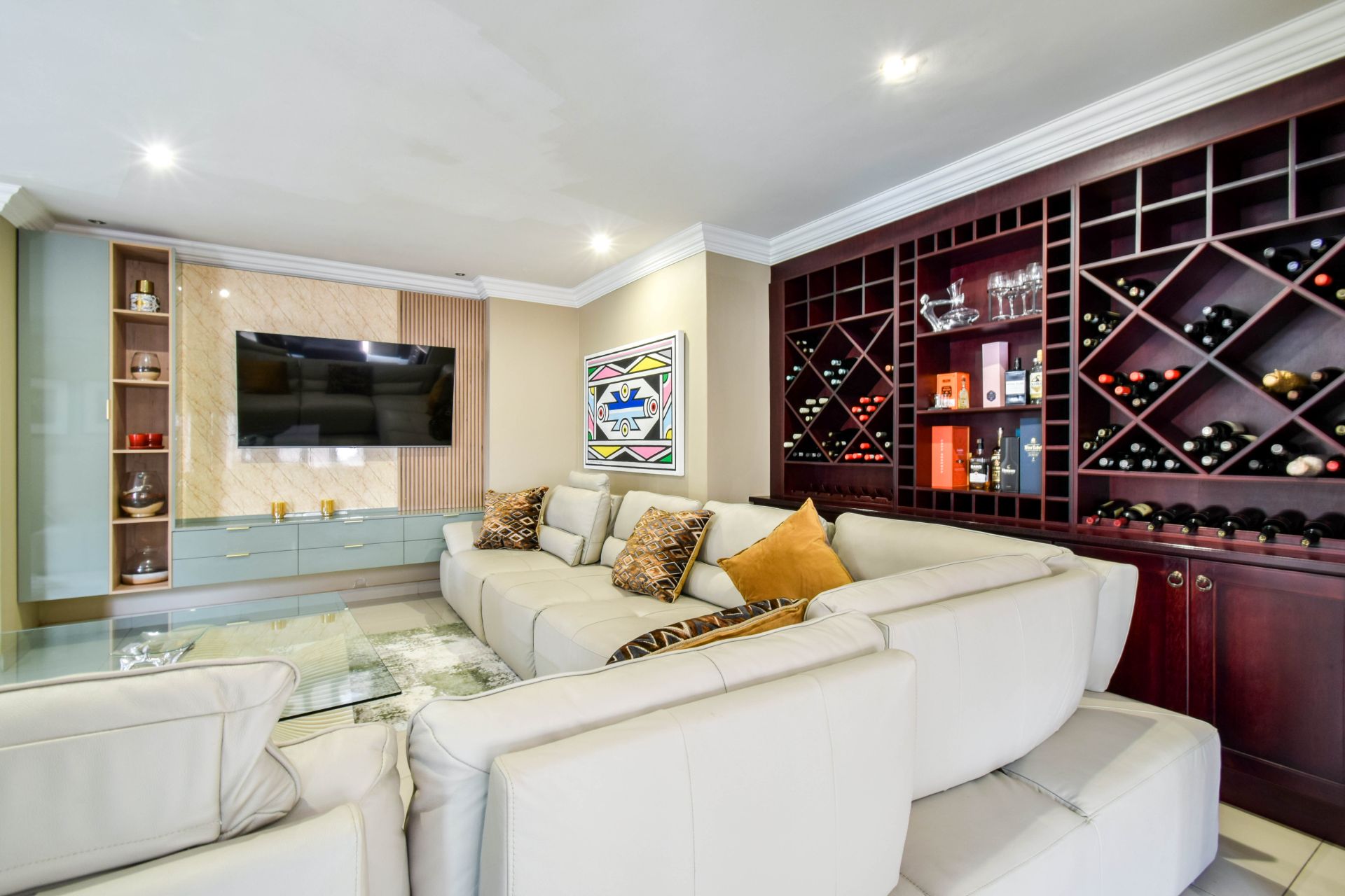 The sunroom, or undercover patio, is ideal for year-round entertaining, featuring a built-in braai and sliding doors that open to a lovely garden and sparkling swimming pool. Additional features include a double garage fitted with built-in cupboards and an exterior storage cupboard for garden tools and equipment.