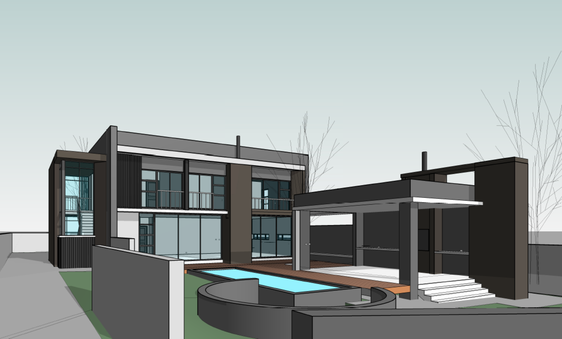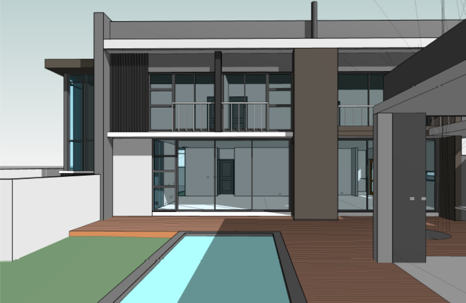 Step out onto the wooden deck and you’ll be welcomed by a covered entertainment patio, complete with a built-in braai, countertop space, and prep bowl. The patio overlooks a sparkling swimming pool and a charming round boma, making this home an entertainer’s dream.