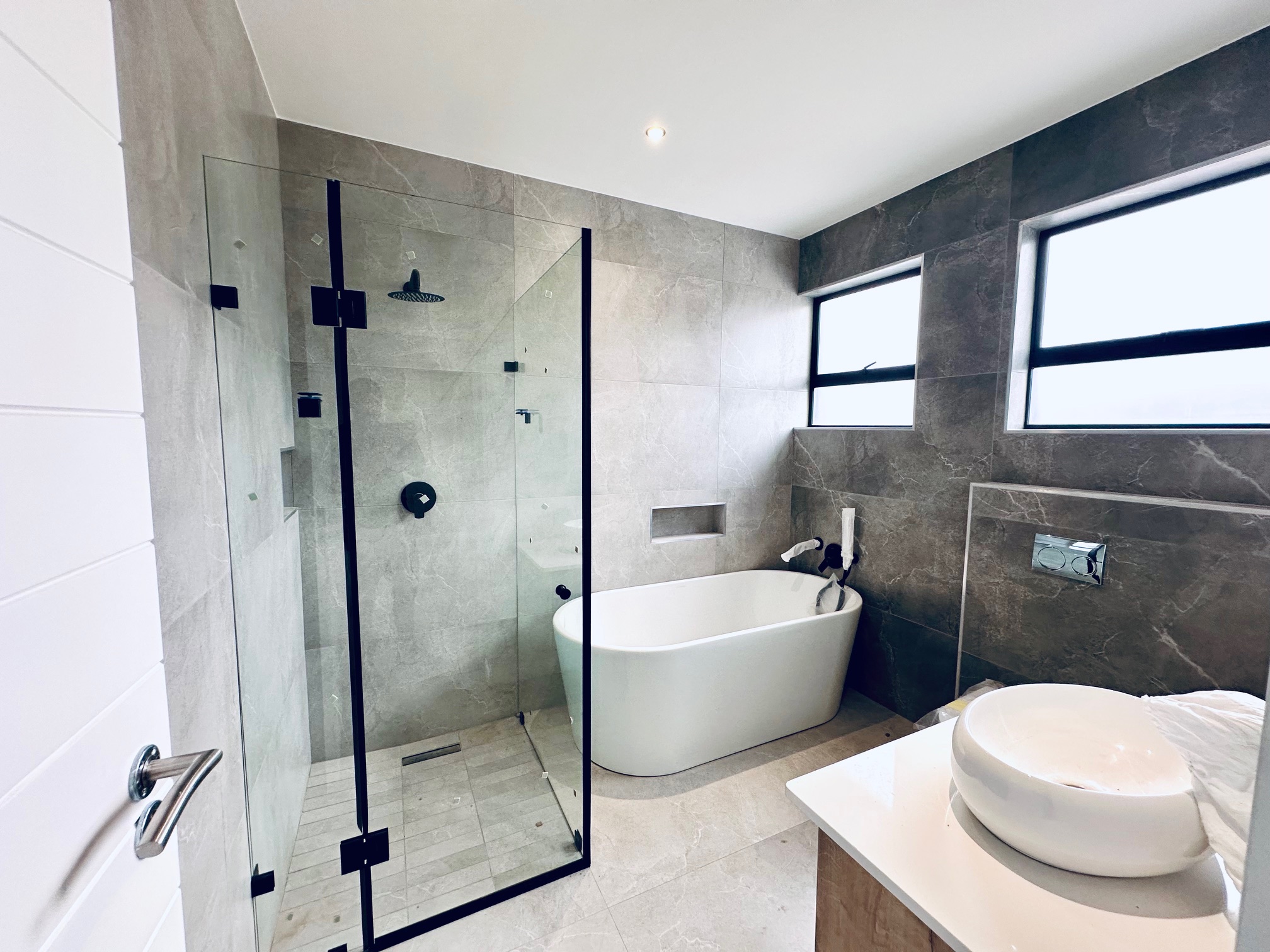 The remaining three upstairs bedrooms each have built-in cupboards and their own en-suite bathrooms. One features both a bathtub and a shower, while the other two include spacious modern showers only.