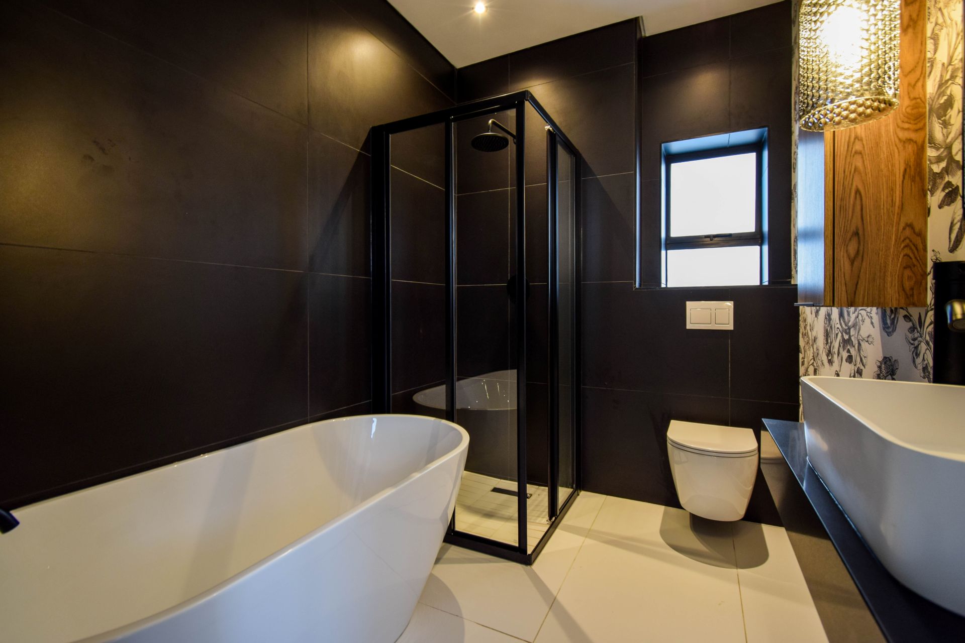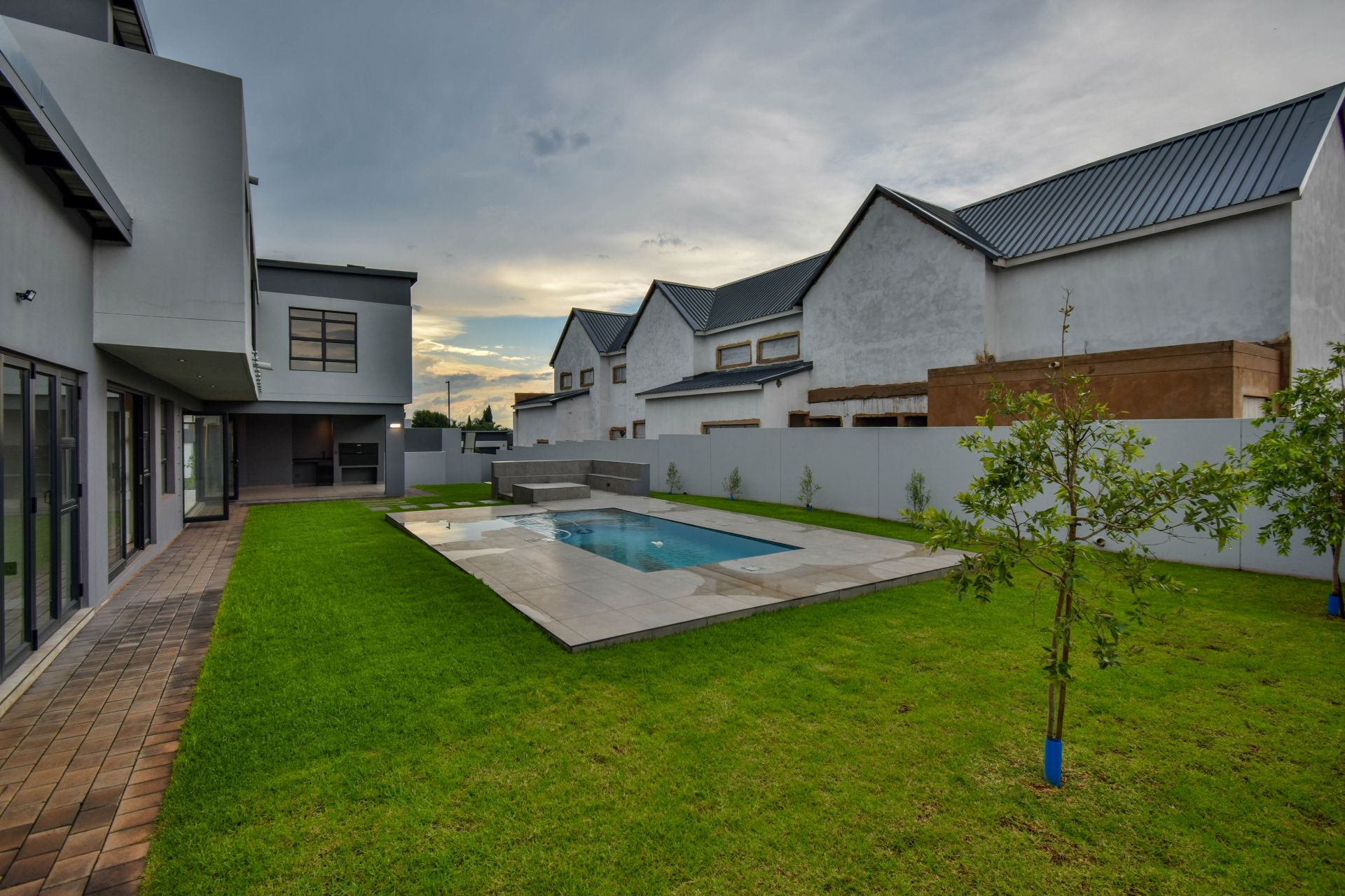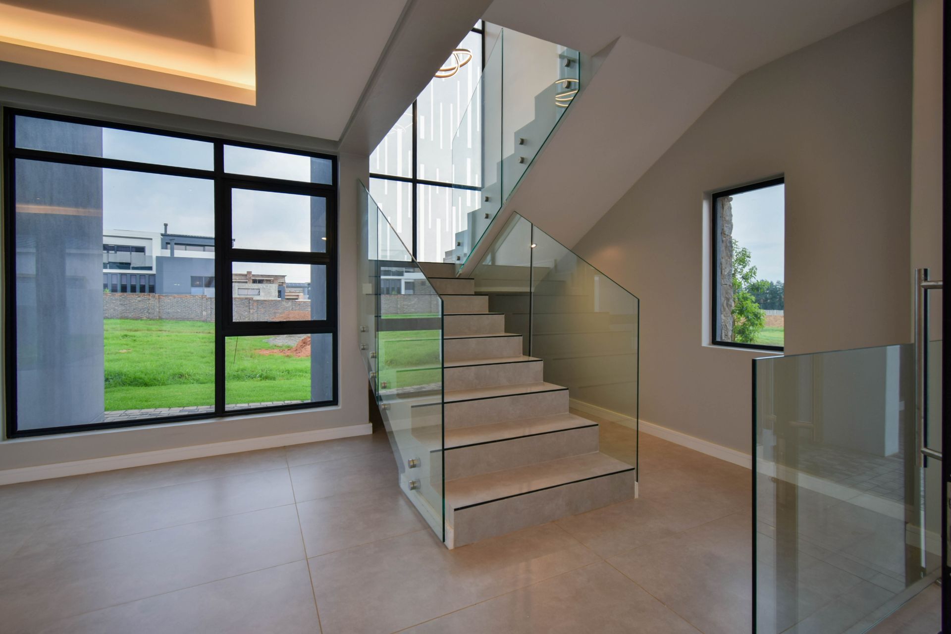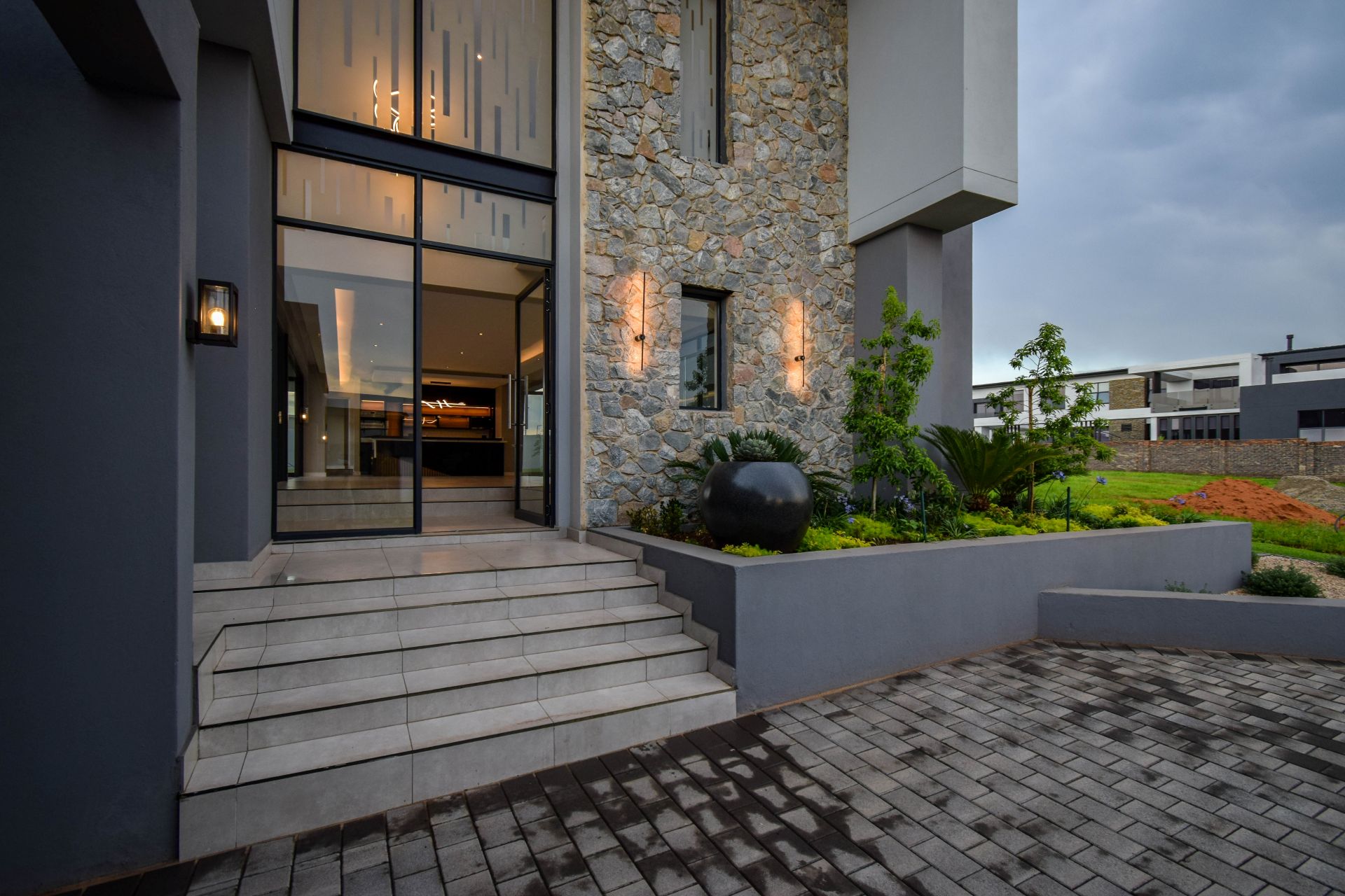From the patio, you are welcomed into the private garden, swimming pool, and a well-designed boma with built-in seating. A guest bathroom is conveniently located near the dining area. The lower level also features a guest suite—or fifth bedroom—with its own en-suite bathroom, making it ideal as a home office, gym, or private accommodation for visitors. The triple garage offers direct access to the home, while the staff room with an en-suite bathroom is located discreetly behind the garage and accessible from the kitchen yard.