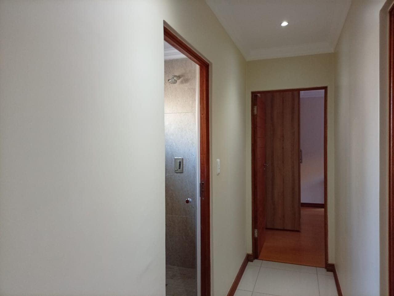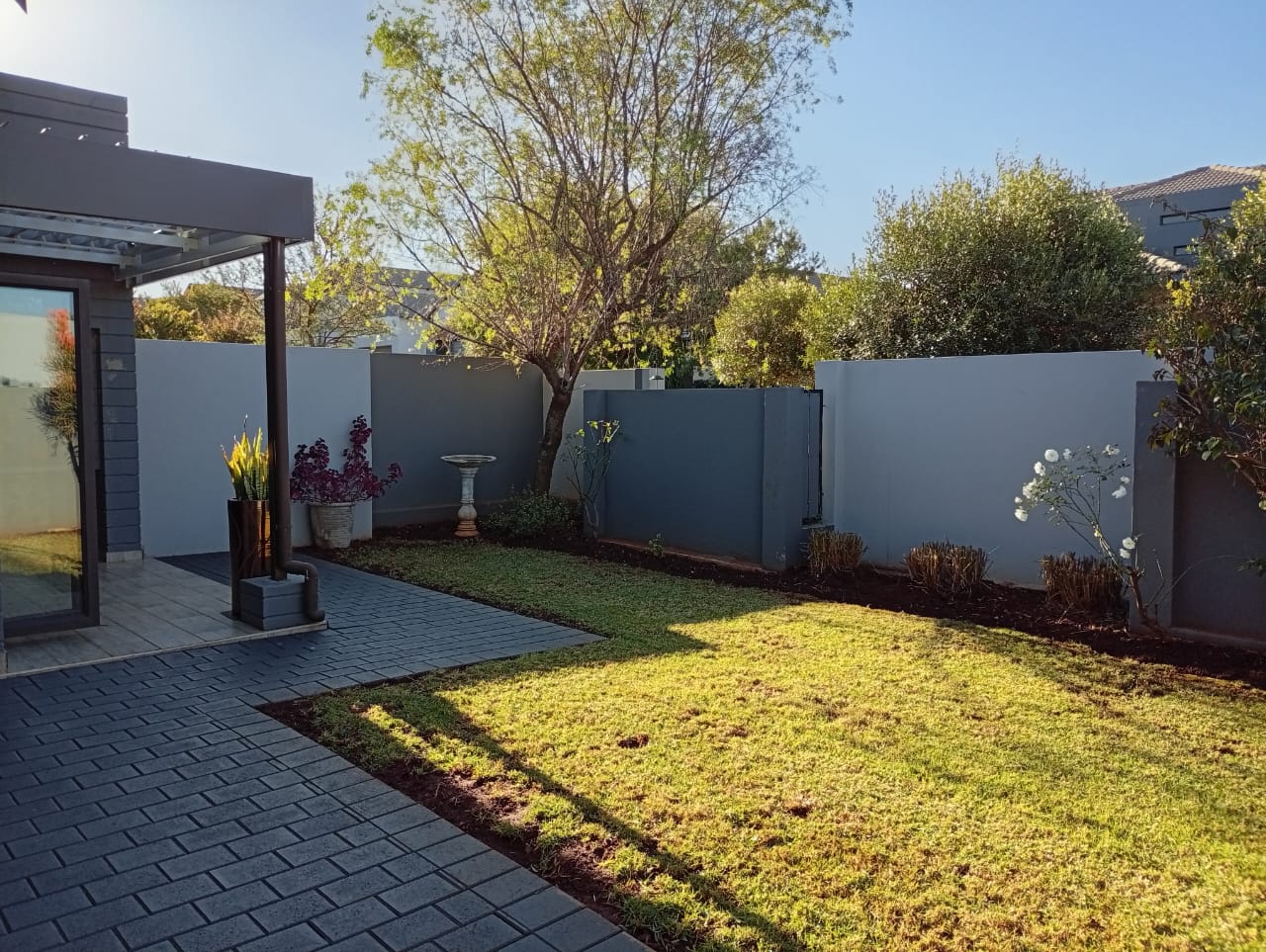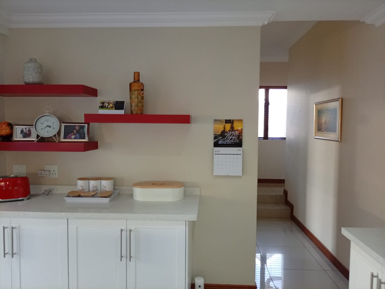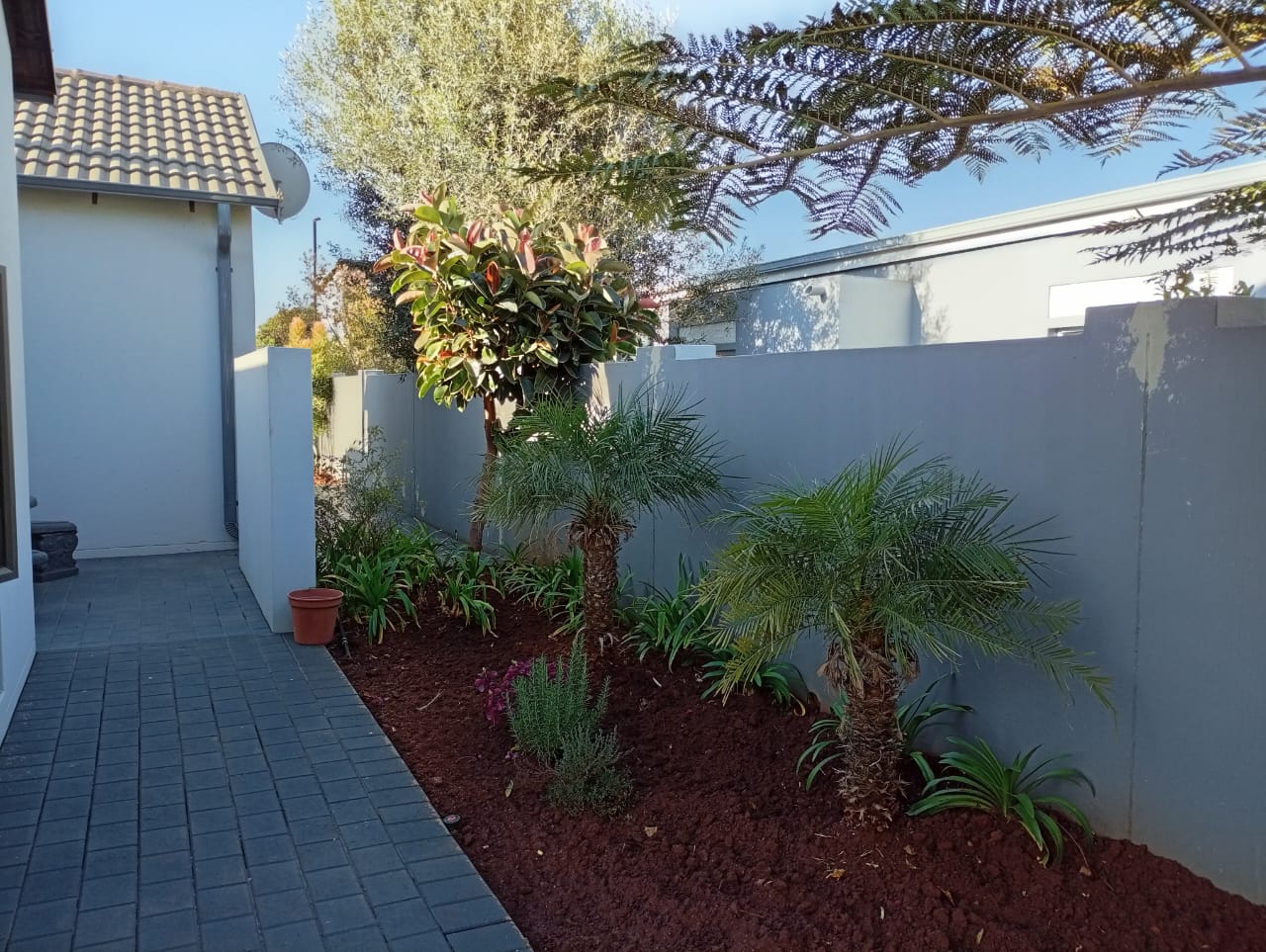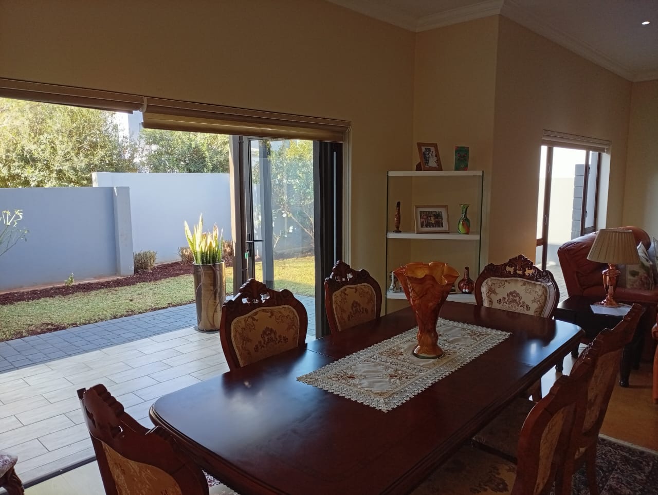 Just outside the kitchen, a cozy outdoor seating area invites you to enjoy family meals under the open sky. The living areas flow seamlessly to a covered patio with a built-in braai, overlooking a lovely, well-maintained garden—ideal for relaxing or entertaining guests.
