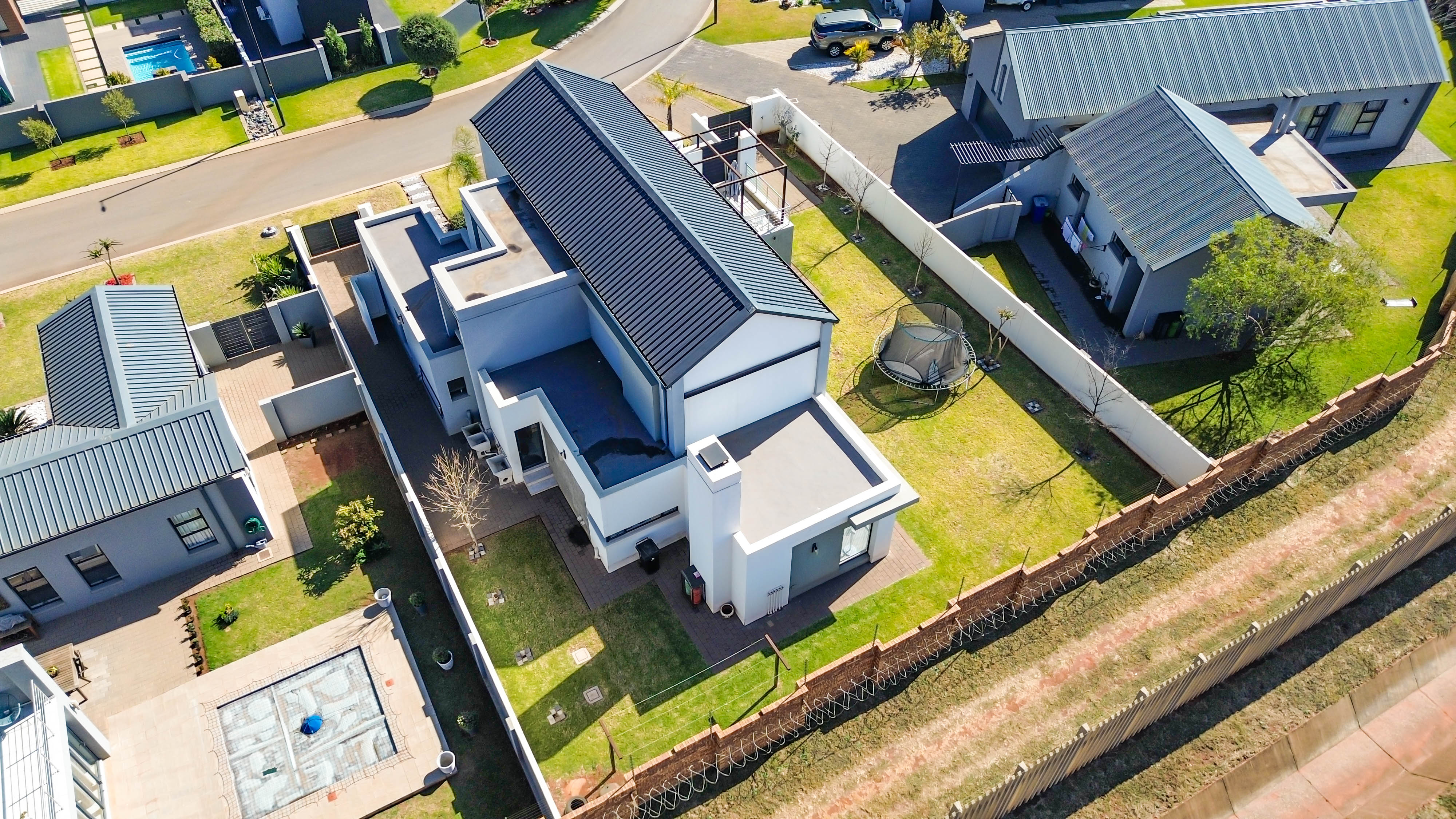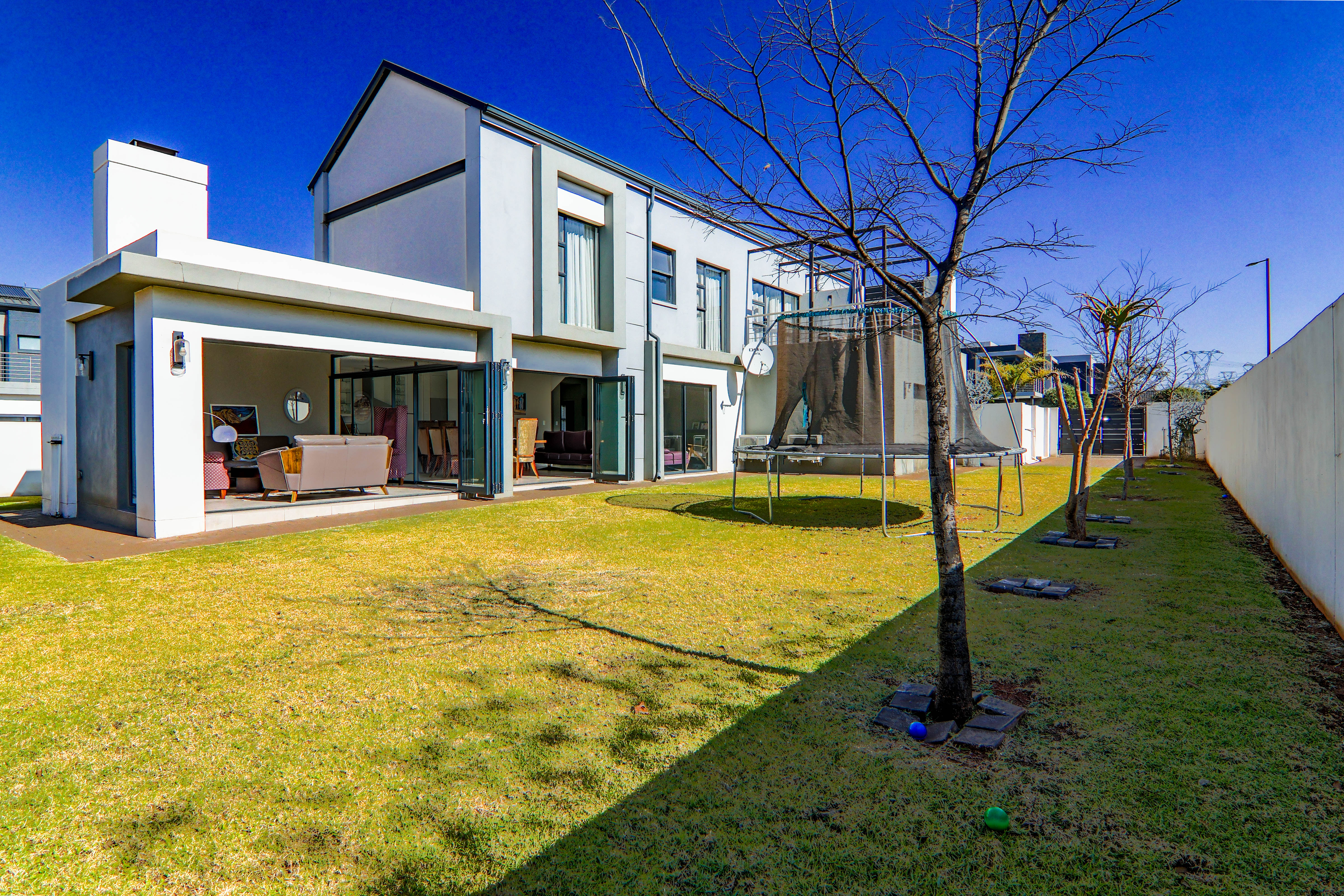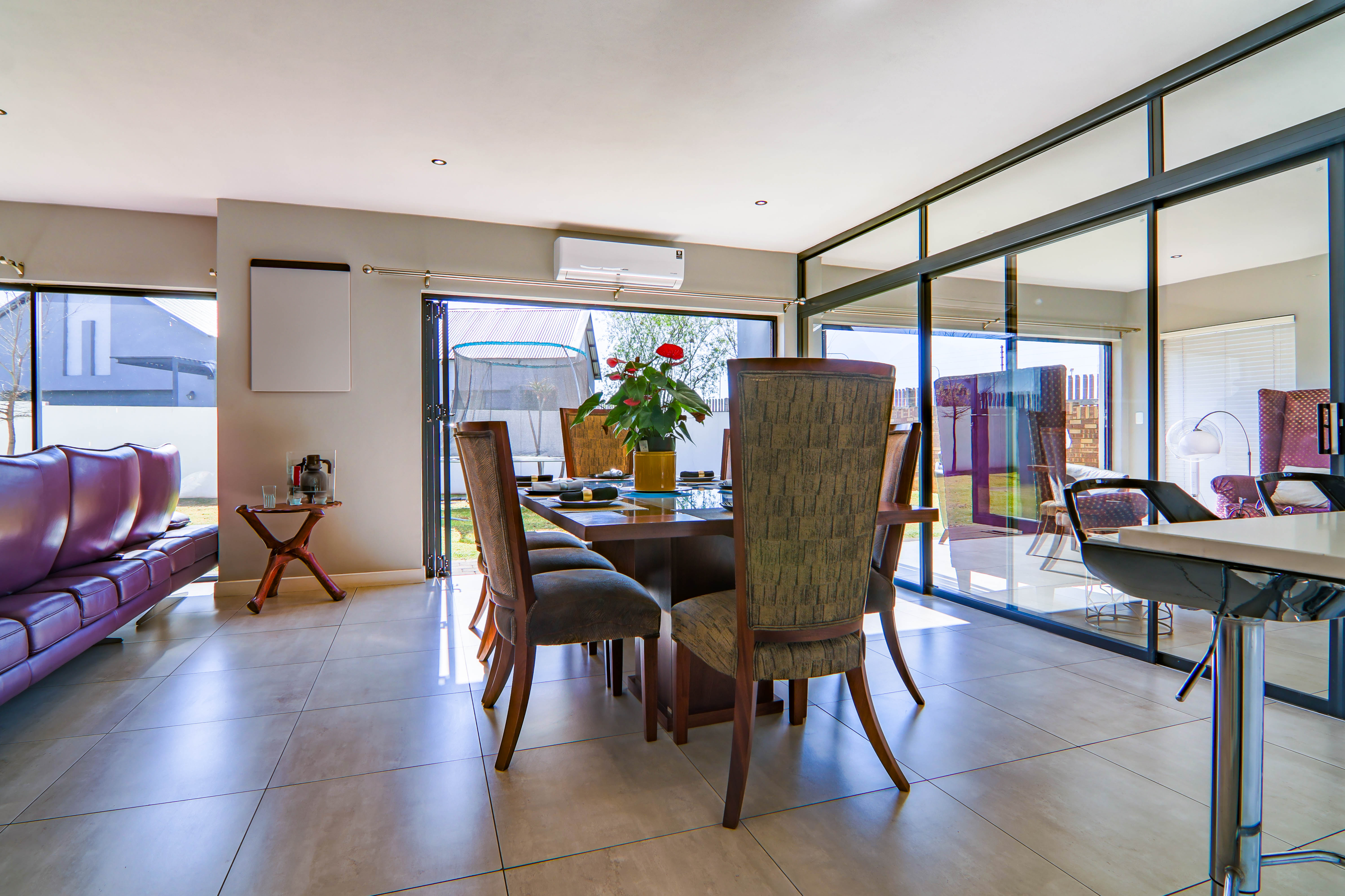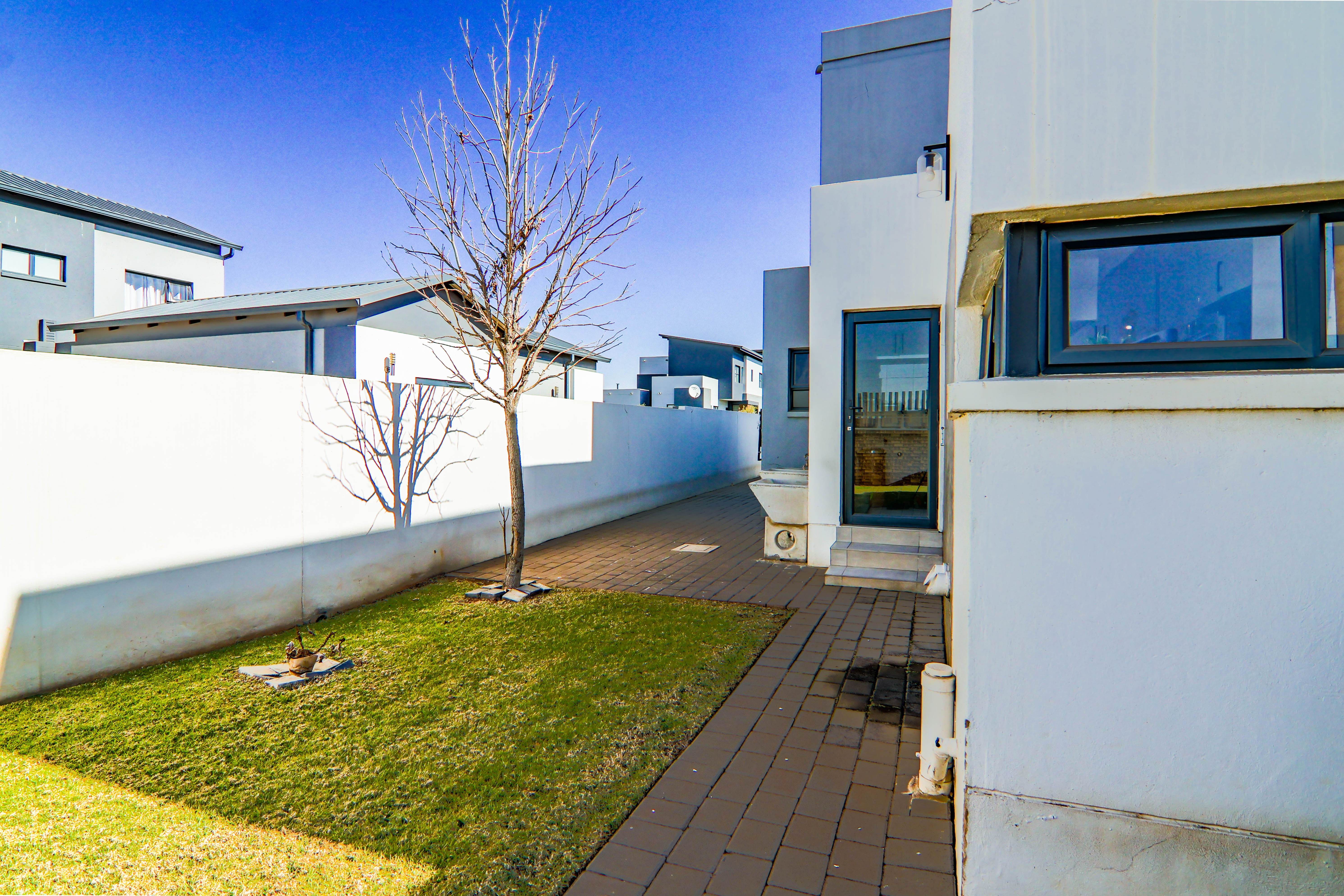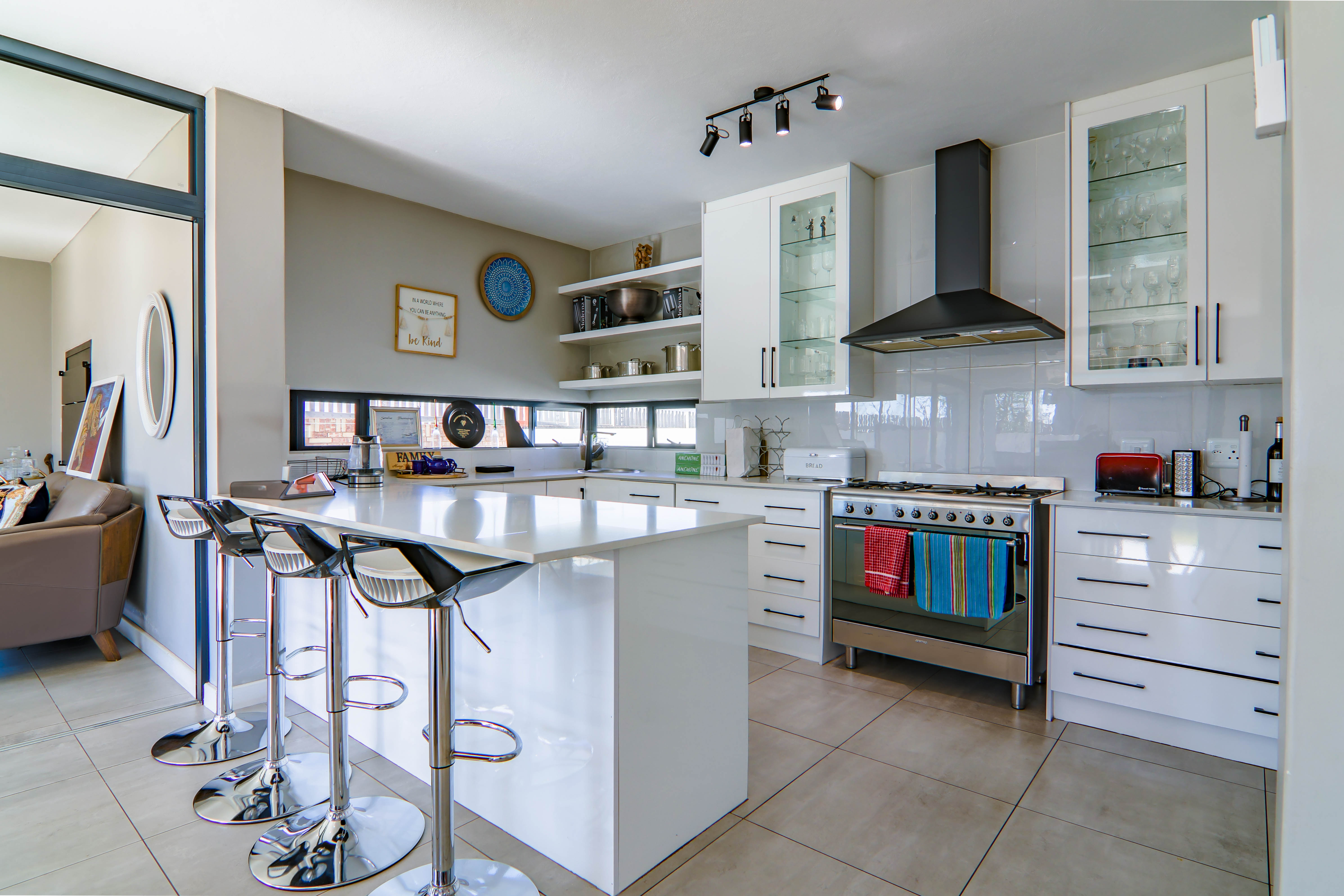 Sole-Mandated. This neat and well-planned double-storey home is perfectly located in Midstream, just off Korhaan Road and near the exciting new shopping centre development. It offers 3 spacious bedrooms, 2 full bathrooms upstairs (main en-suite), and a guest toilet downstairs. There’s also a large linen cupboard upstairs with potential to convert into a fourth room or study. The modern kitchen includes a Smeg gas stove and oven, a scullery with space for three undercounter appliances, and stacker doors that open up the dining area and sunny enclosed patio to the garden. Staff quarters with a private bathroom are also included, making this a practical choice for families. Outside, you’ll find 3 garages, parking for up to 6 cars, and gates on both sides of the home that can accommodate additional vehicles. A 3000L JoJo tank, full irrigation system, washing basins, and a neat garden complete the picture. This home is pet-friendly, functional, and in a very convenient part of Midstream.