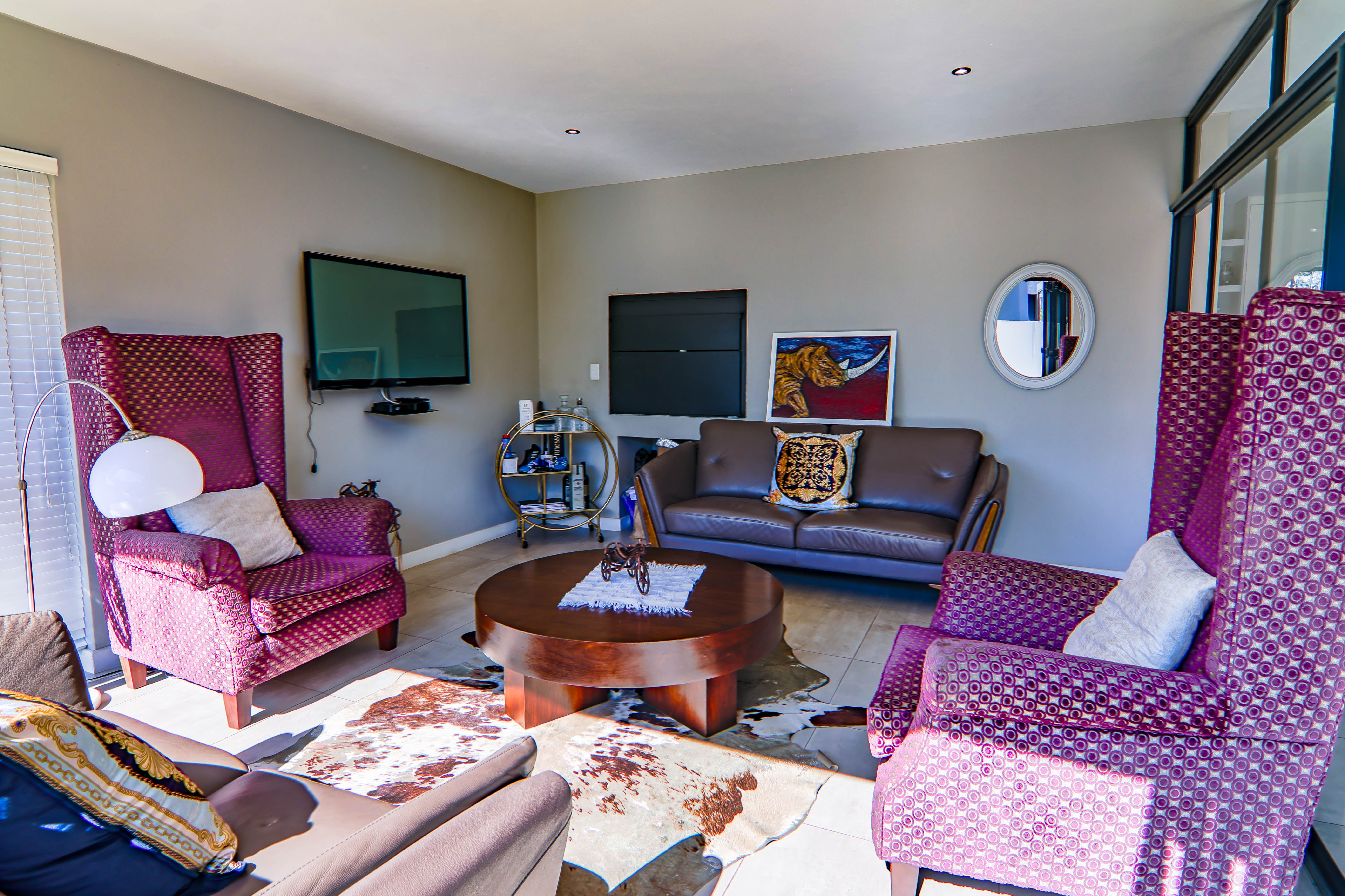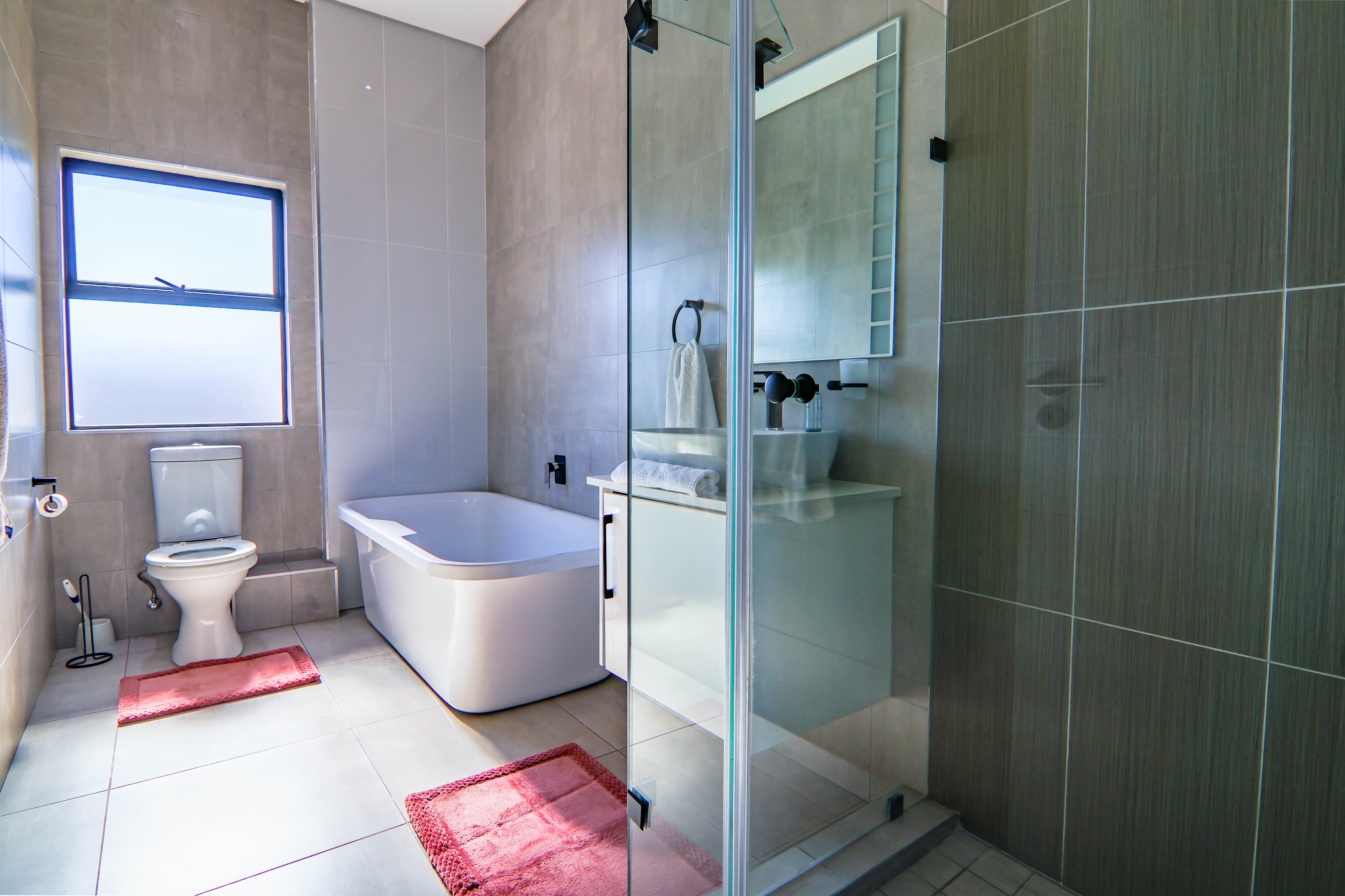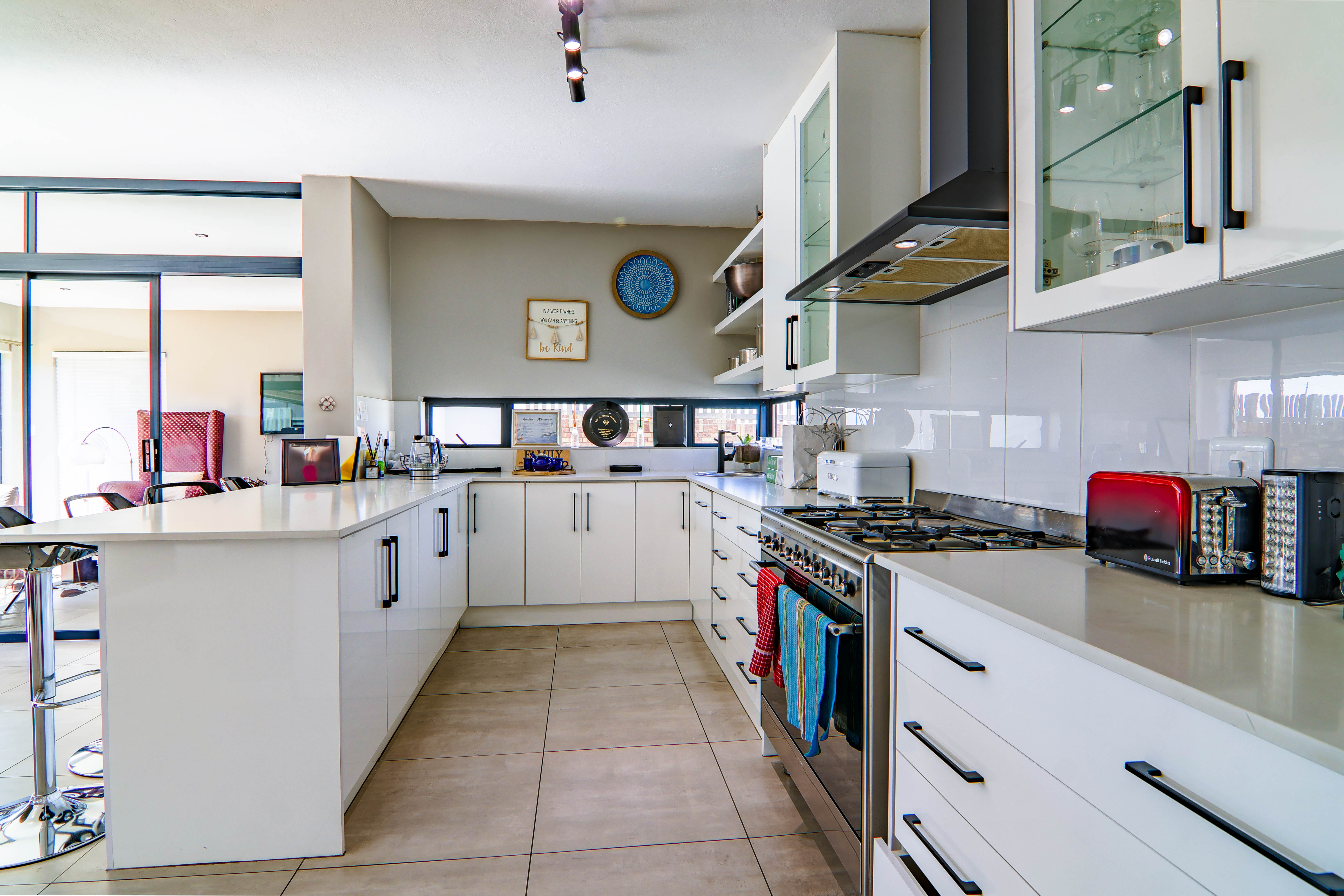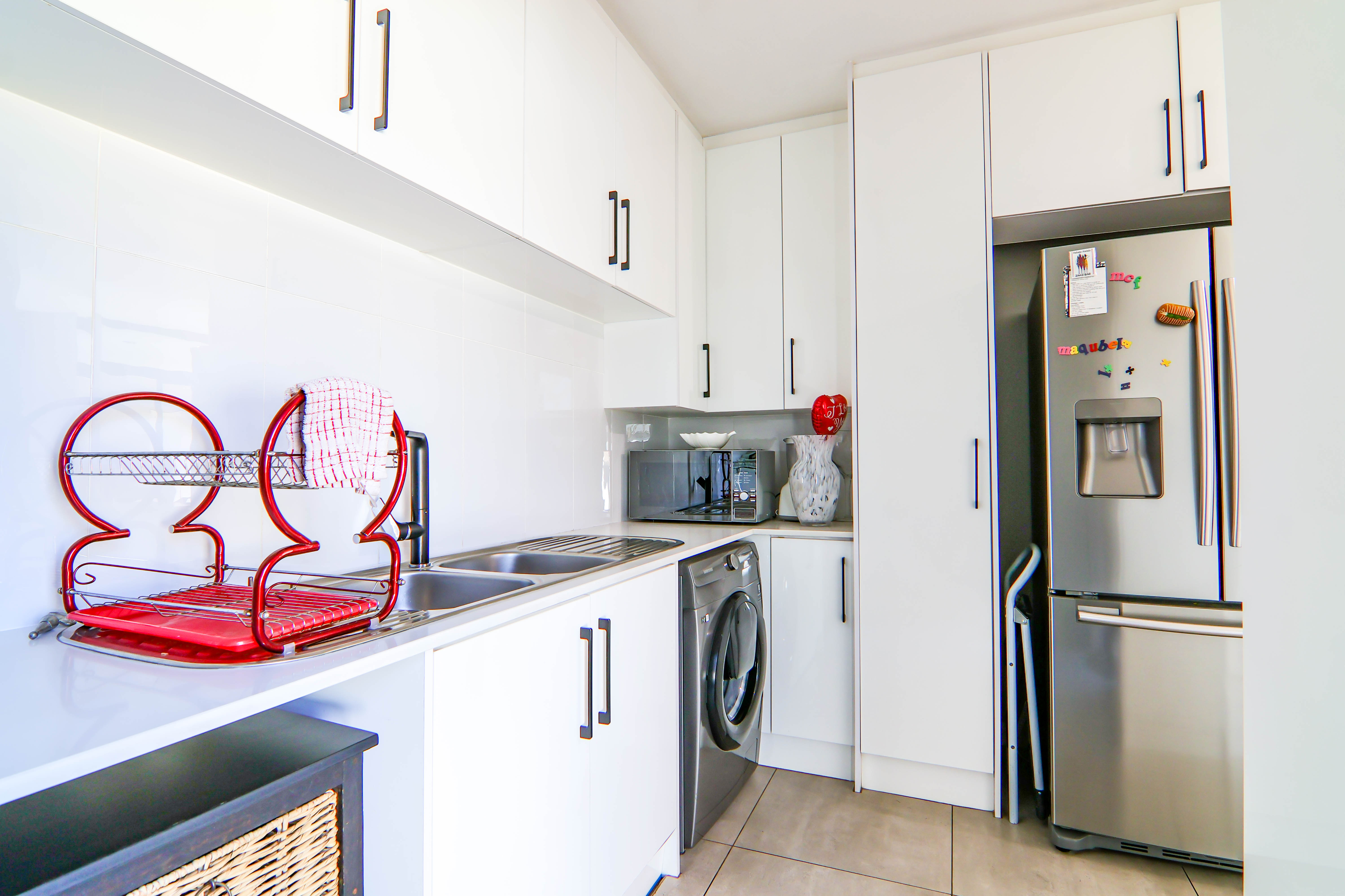 Sole-Mandated. This neat and well-planned double-storey home is perfectly located in Midstream, just off Korhaan Road and near the exciting new shopping centre development. It offers 3 spacious bedrooms, 2 full bathrooms upstairs (main en-suite), and a guest toilet downstairs. There’s also a large linen cupboard upstairs with potential to convert into a fourth room or study. The modern kitchen includes a Smeg gas stove and oven, a scullery with space for three undercounter appliances, and stacker doors that open up the dining area and sunny enclosed patio to the garden. Staff quarters with a private bathroom are also included, making this a practical choice for families. Outside, you’ll find 3 garages, parking for up to 6 cars, and gates on both sides of the home that can accommodate additional vehicles. A 3000L JoJo tank, full irrigation system, washing basins, and a neat garden complete the picture. This home is pet-friendly, functional, and in a very convenient part of Midstream.