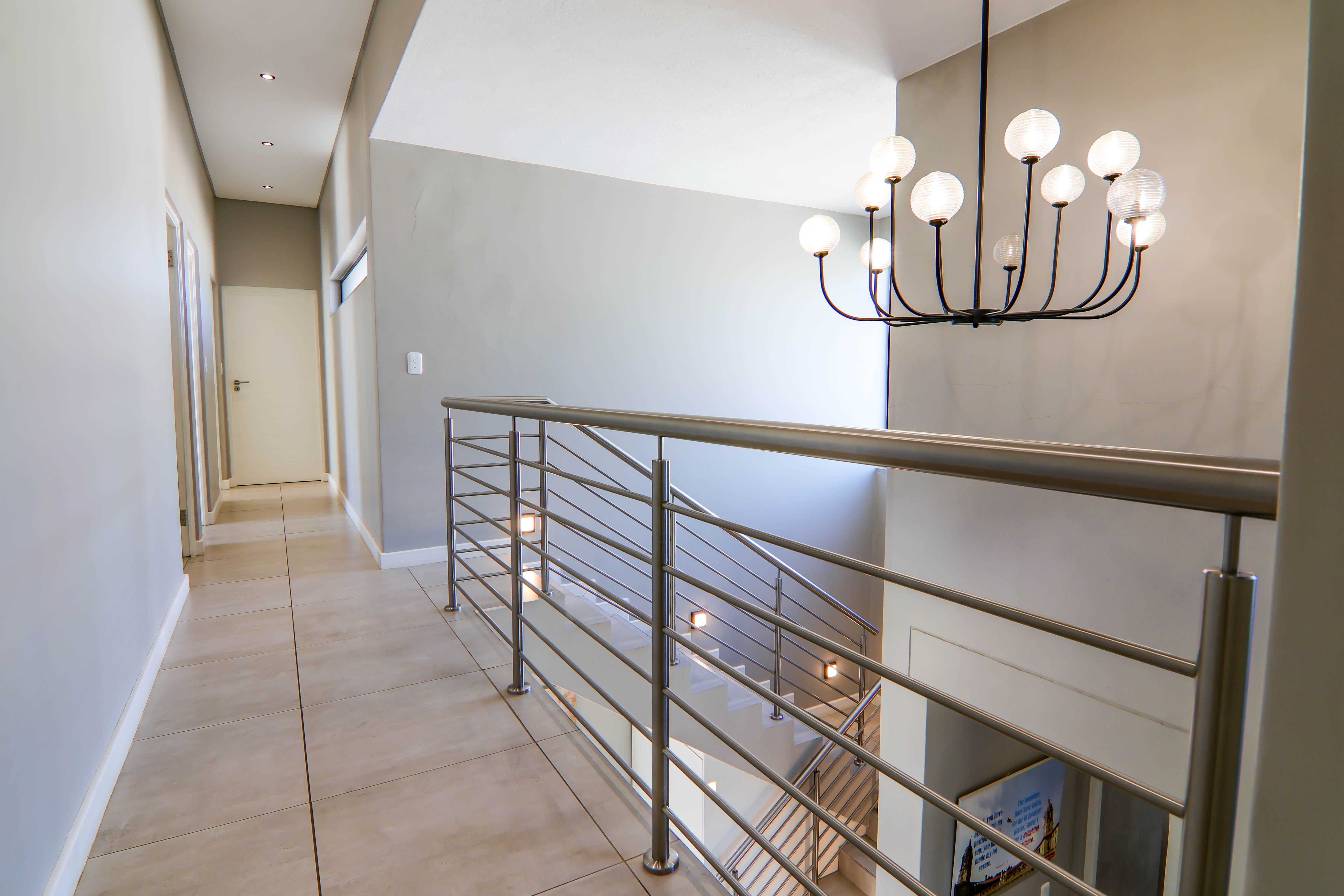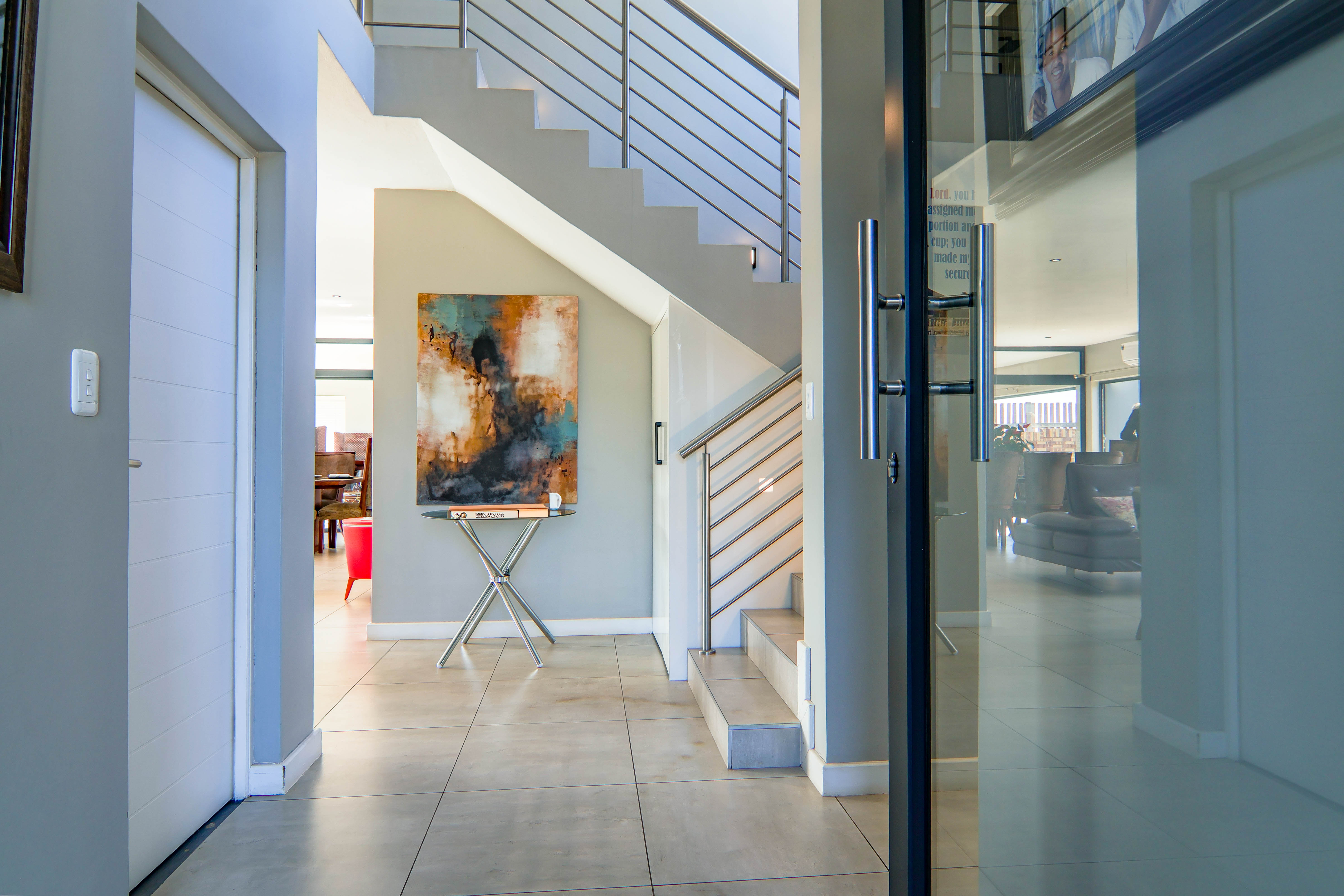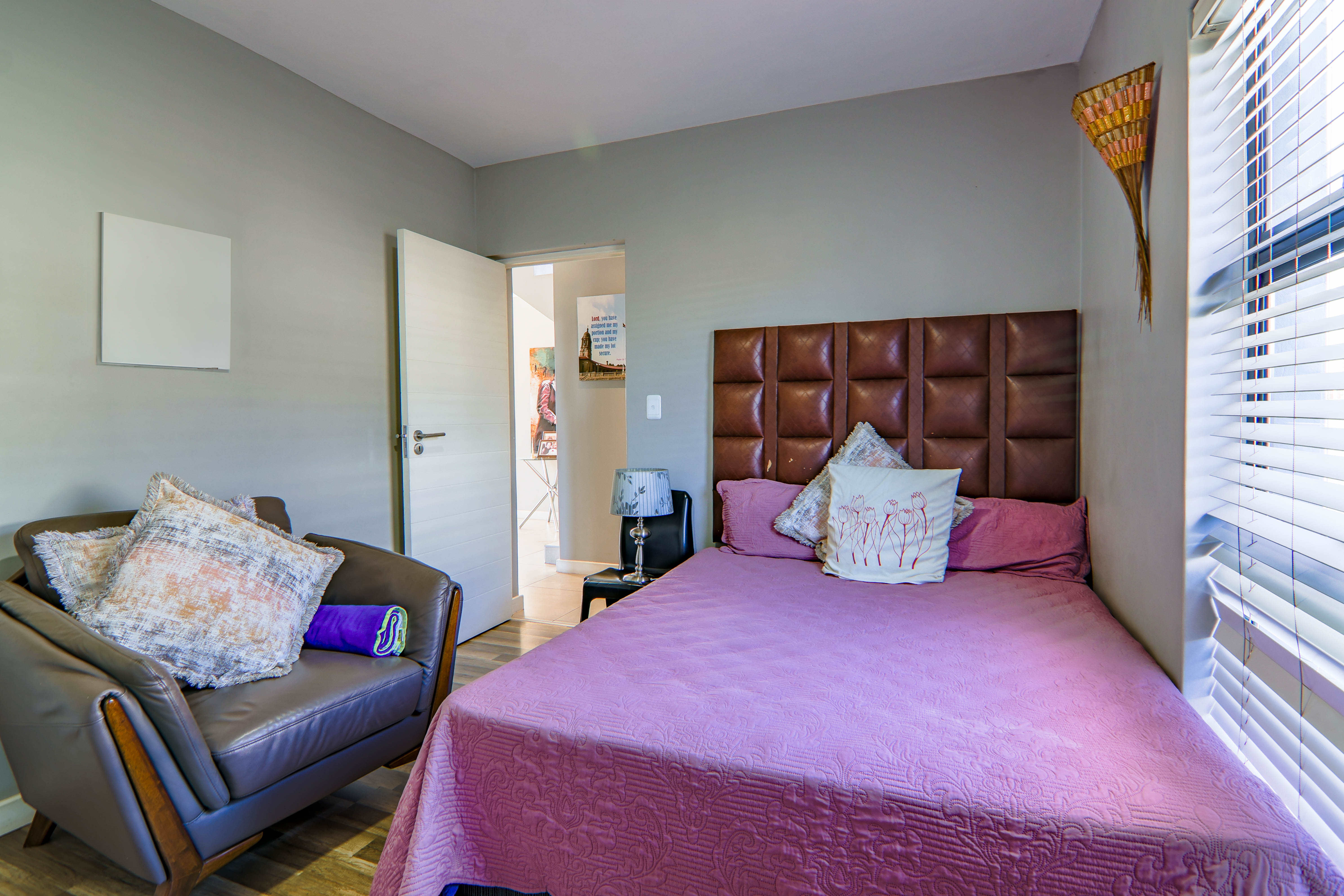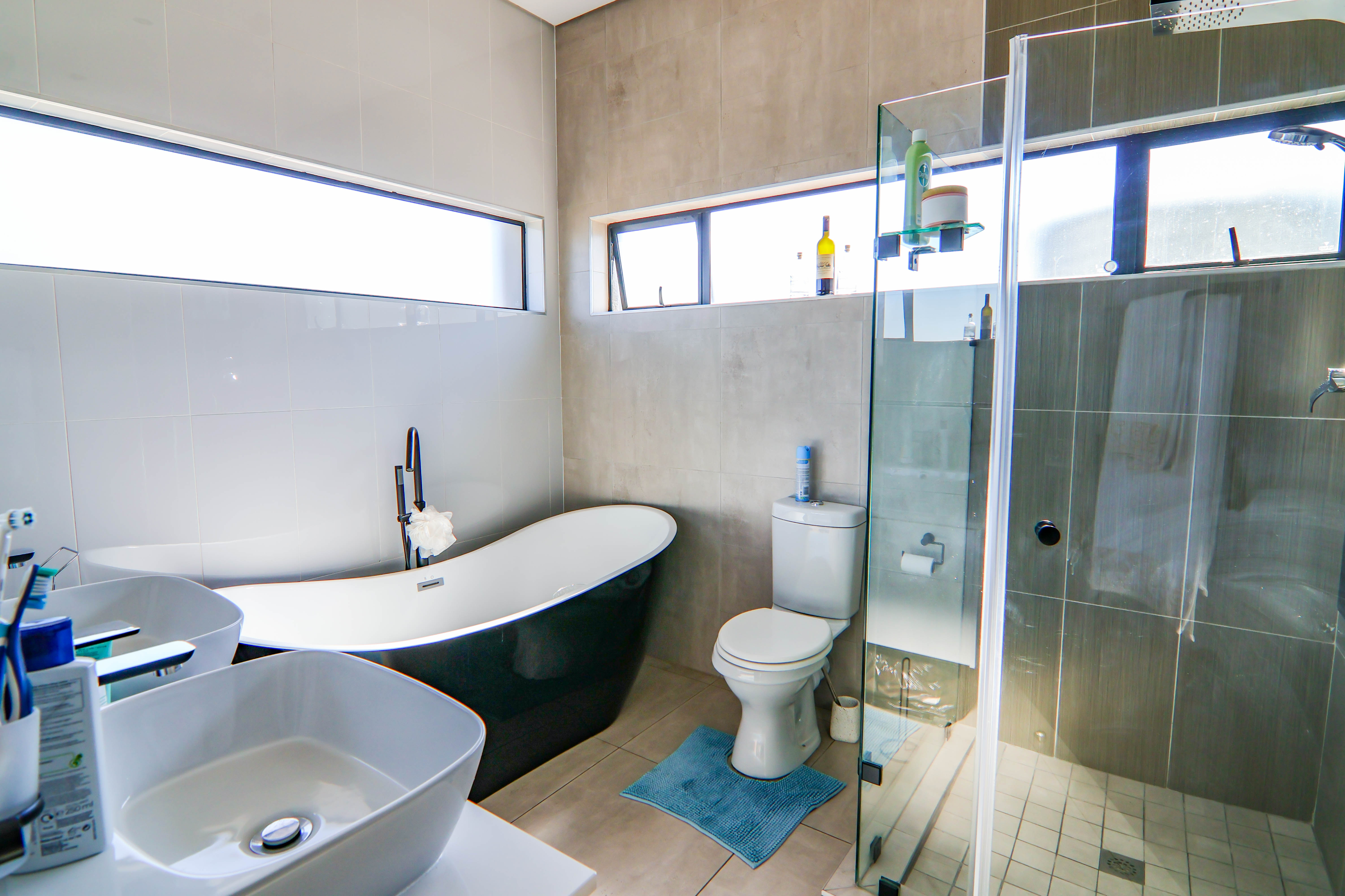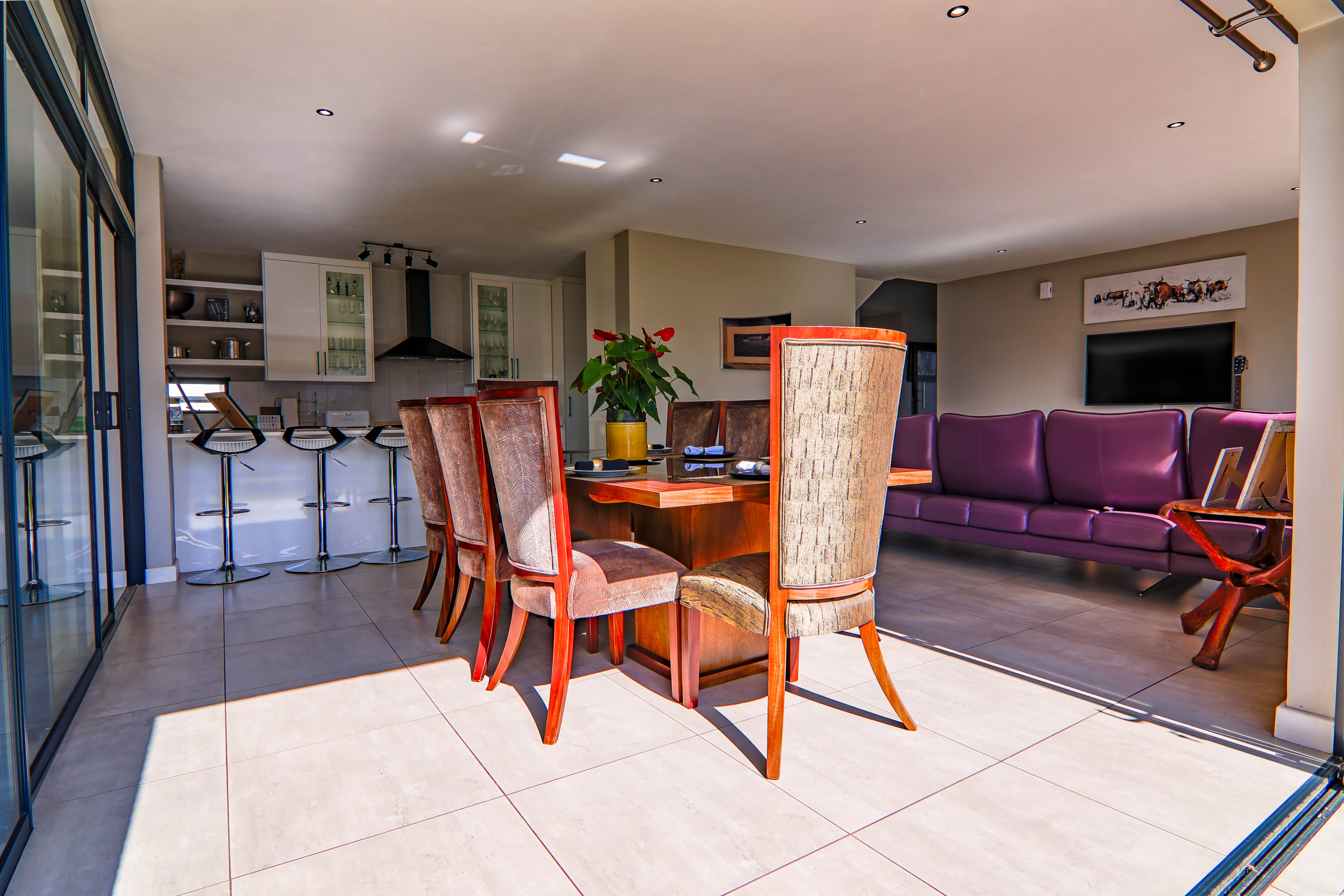 Sole-Mandated. This neat and well-planned double-storey home is perfectly located in Midstream, just off Korhaan Road and near the exciting new shopping centre development. It offers 3 spacious bedrooms, 2 full bathrooms upstairs (main en-suite), and a guest toilet downstairs. There’s also a large linen cupboard upstairs with potential to convert into a fourth room or study. The modern kitchen includes a Smeg gas stove and oven, a scullery with space for three undercounter appliances, and stacker doors that open up the dining area and sunny enclosed patio to the garden. Staff quarters with a private bathroom are also included, making this a practical choice for families. Outside, you’ll find 3 garages, parking for up to 6 cars, and gates on both sides of the home that can accommodate additional vehicles. A 3000L JoJo tank, full irrigation system, washing basins, and a neat garden complete the picture. This home is pet-friendly, functional, and in a very convenient part of Midstream.
