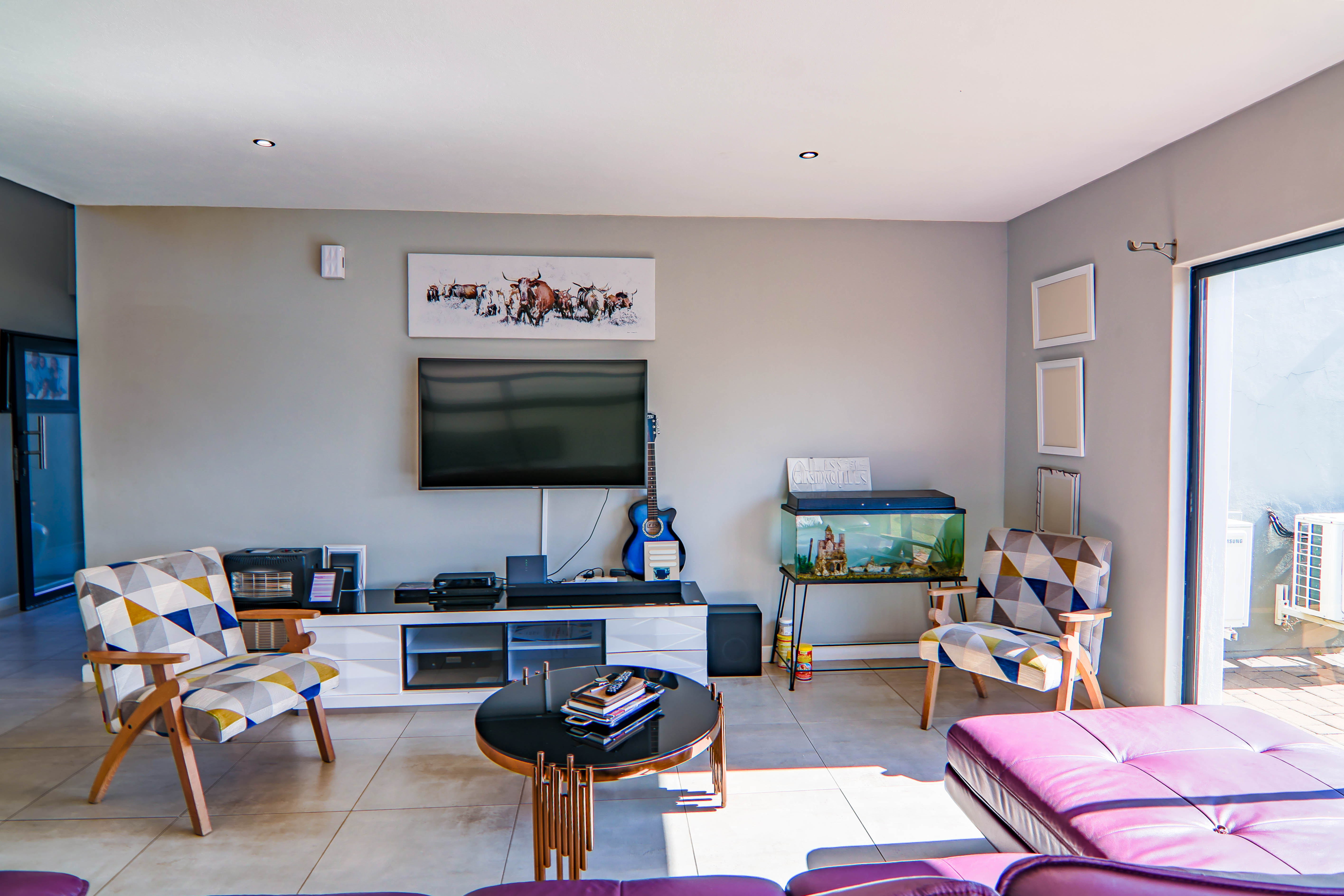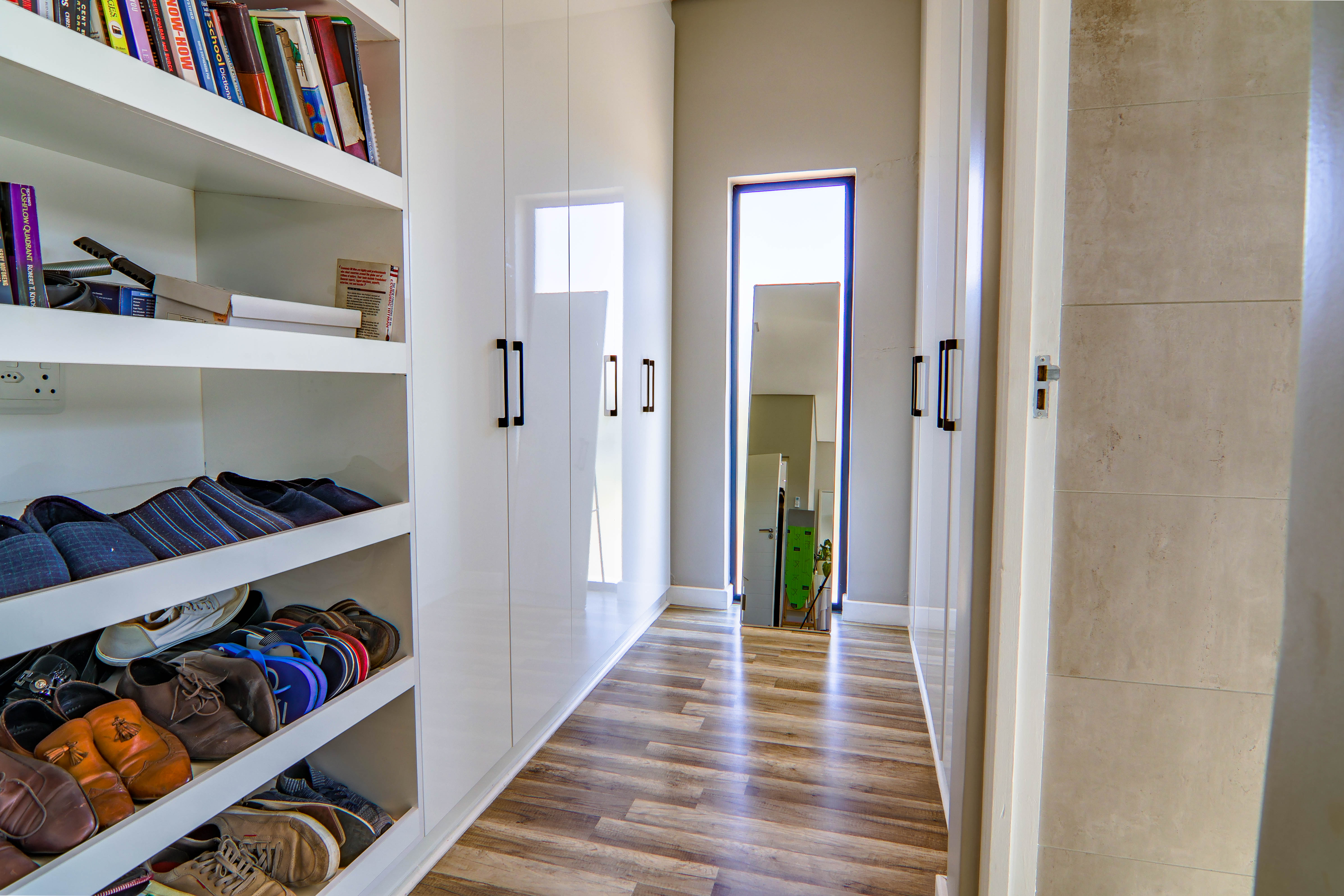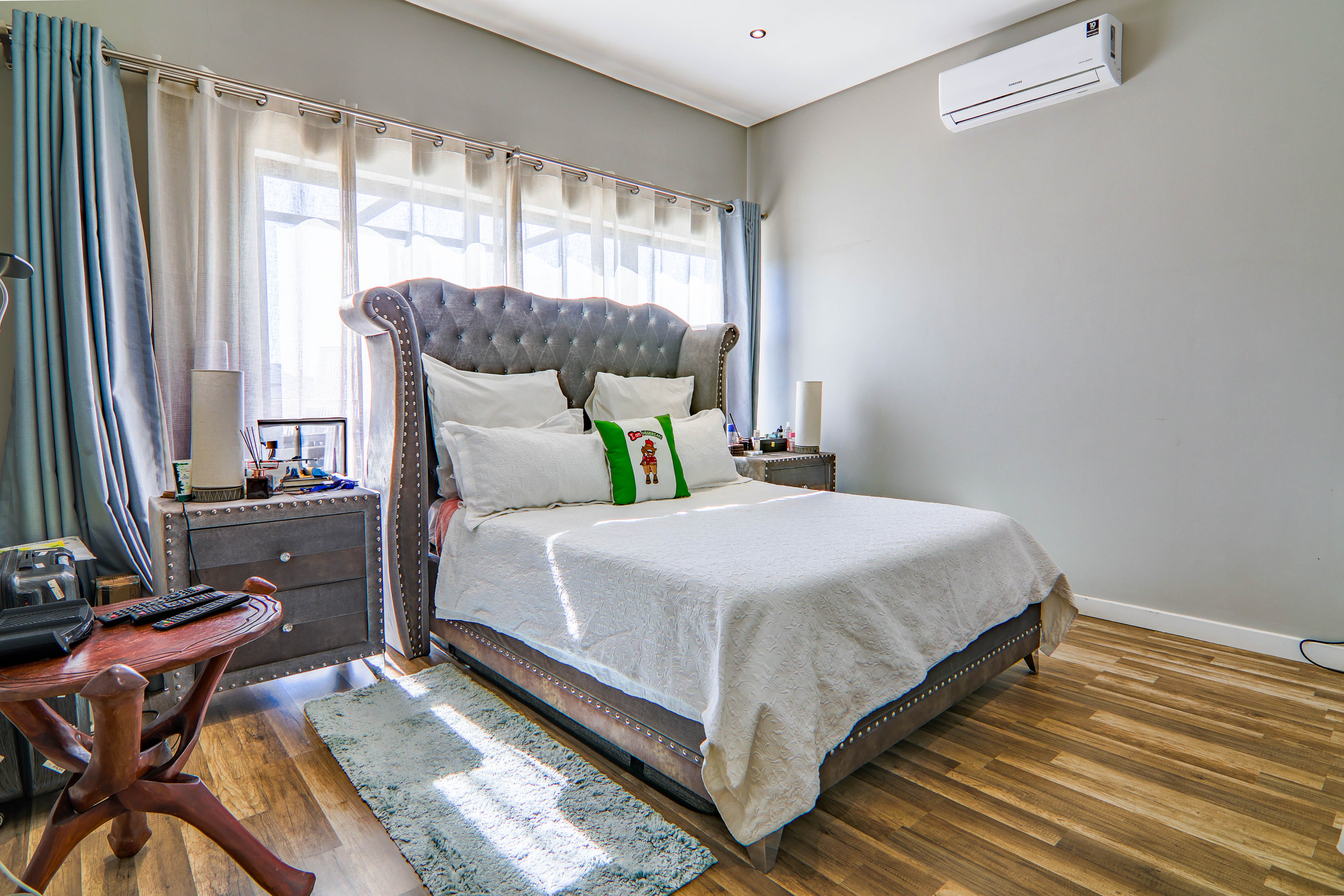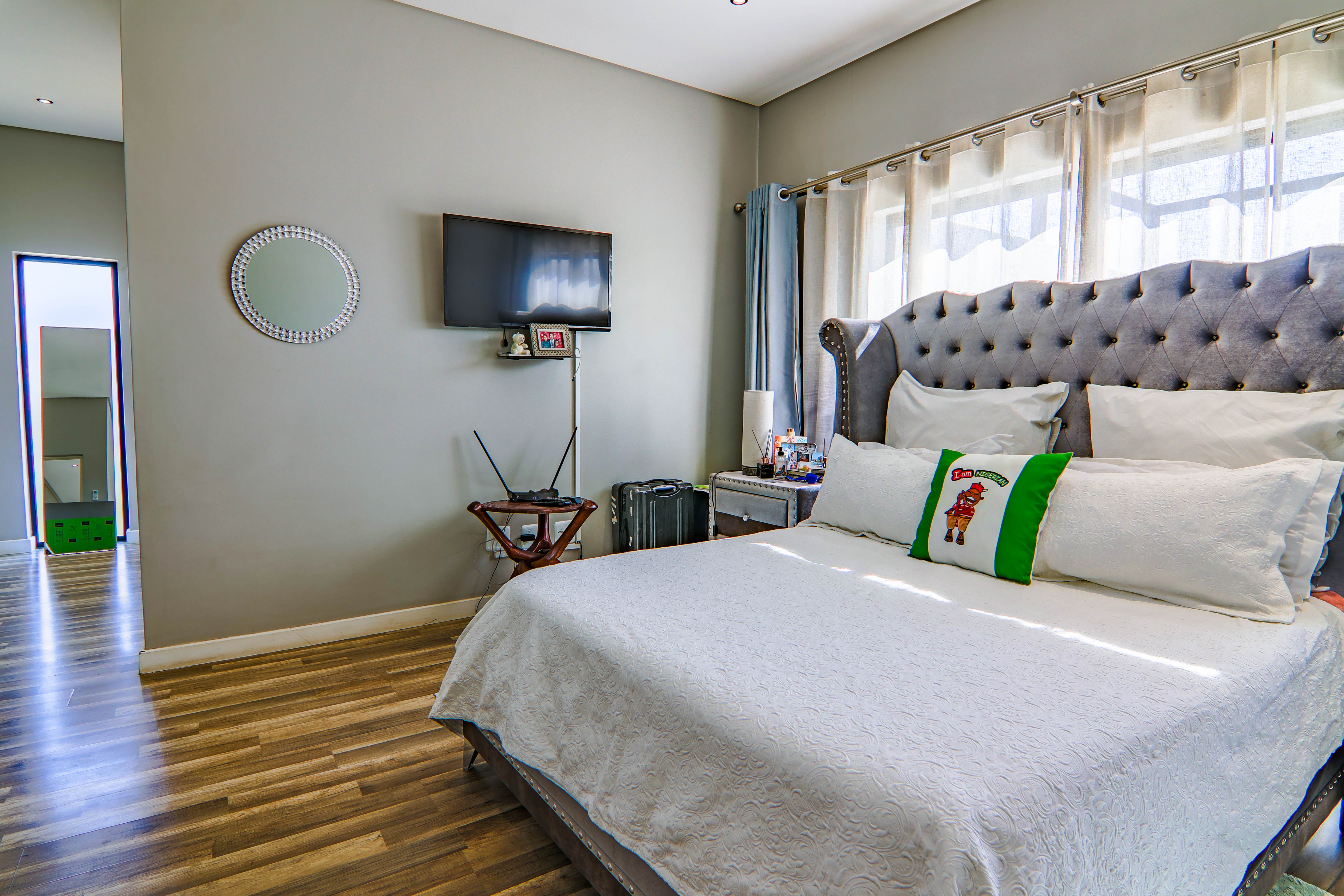 Sole-Mandated. This neat and well-planned double-storey home is perfectly located in Midstream, just off Korhaan Road and near the exciting new shopping centre development. It offers 3 spacious bedrooms, 2 full bathrooms upstairs (main en-suite), and a guest toilet downstairs. There’s also a large linen cupboard upstairs with potential to convert into a fourth room or study. The modern kitchen includes a Smeg gas stove and oven, a scullery with space for three undercounter appliances, and stacker doors that open up the dining area and sunny enclosed patio to the garden. Staff quarters with a private bathroom are also included, making this a practical choice for families. Outside, you’ll find 3 garages, parking for up to 6 cars, and gates on both sides of the home that can accommodate additional vehicles. A 3000L JoJo tank, full irrigation system, washing basins, and a neat garden complete the picture. This home is pet-friendly, functional, and in a very convenient part of Midstream.