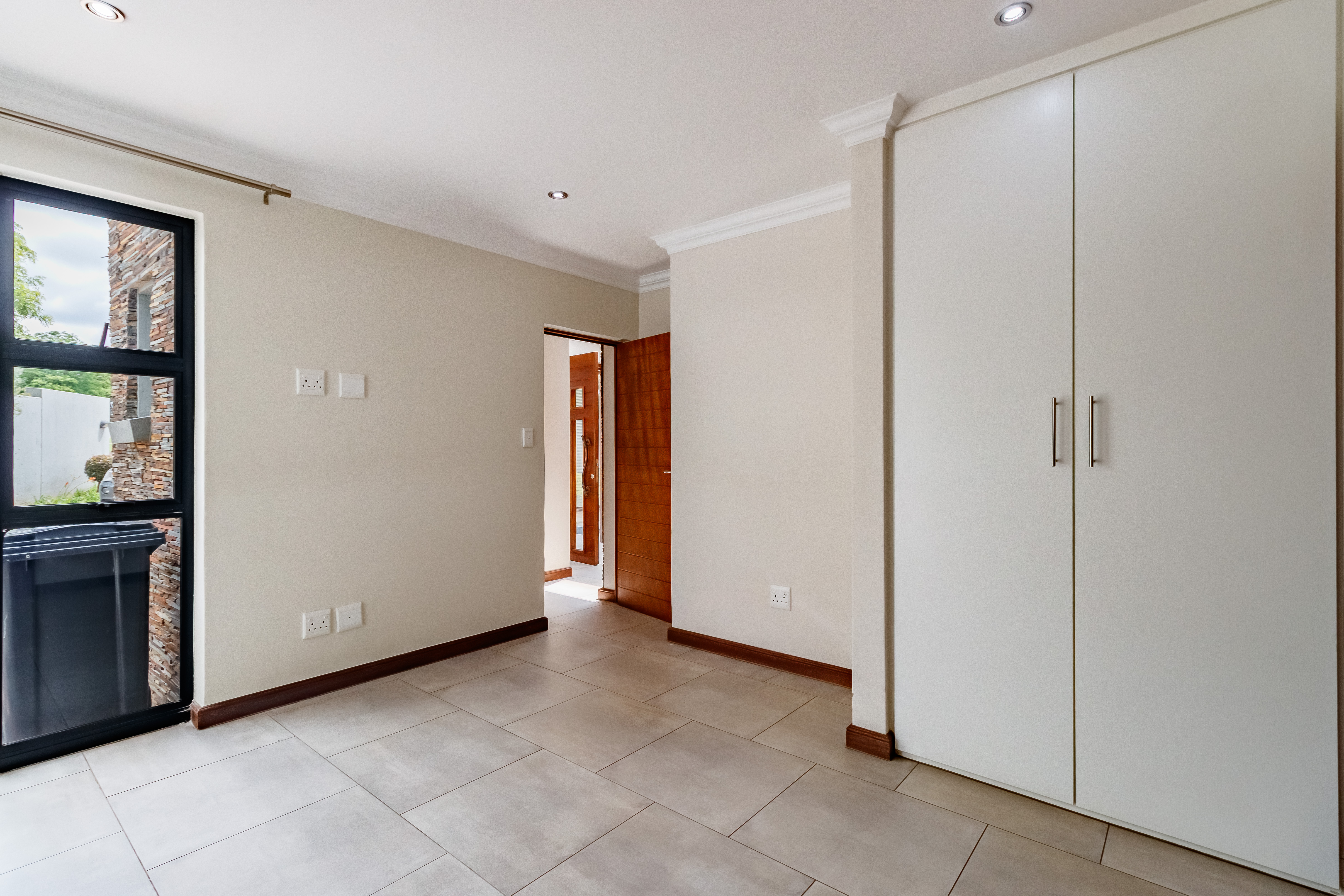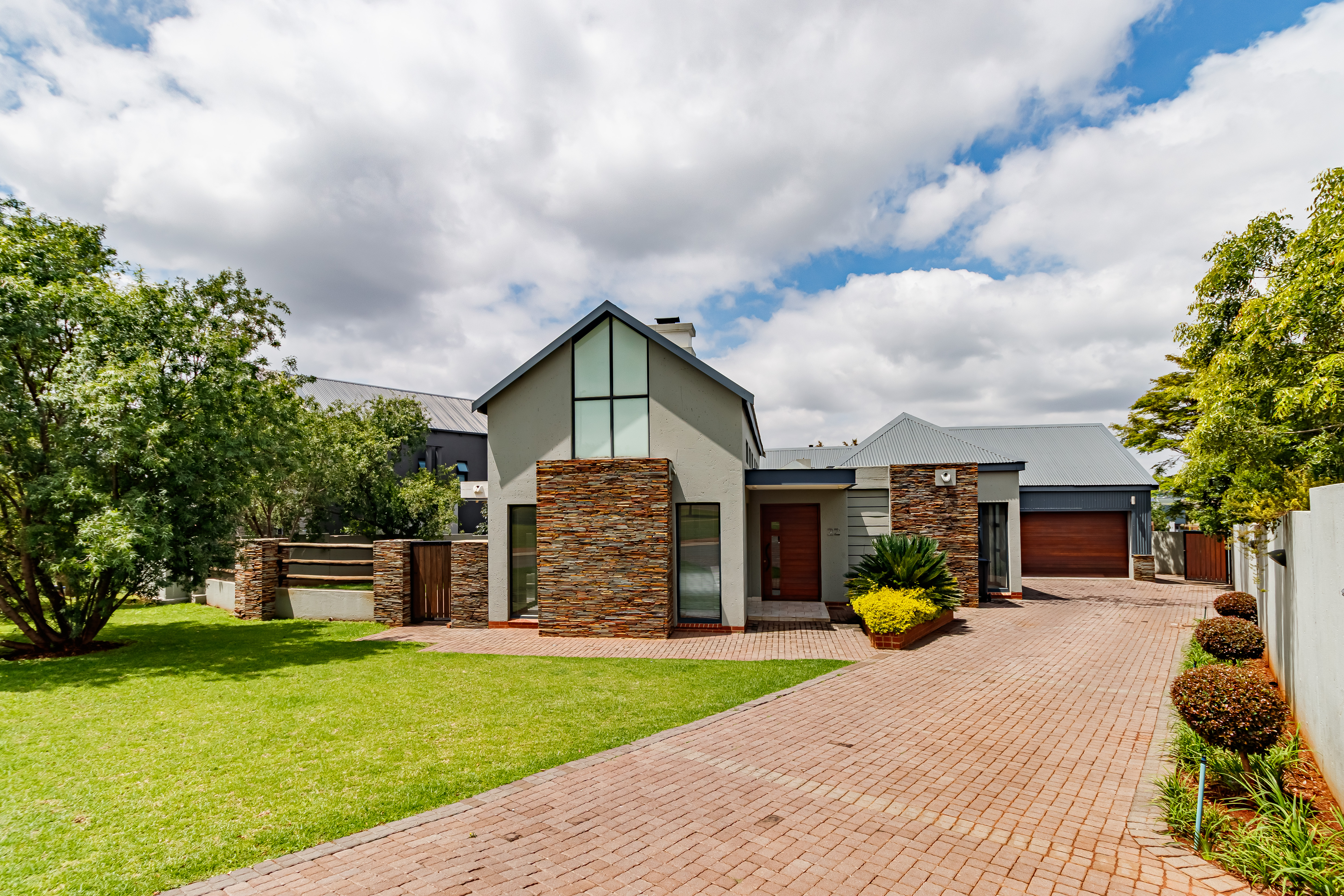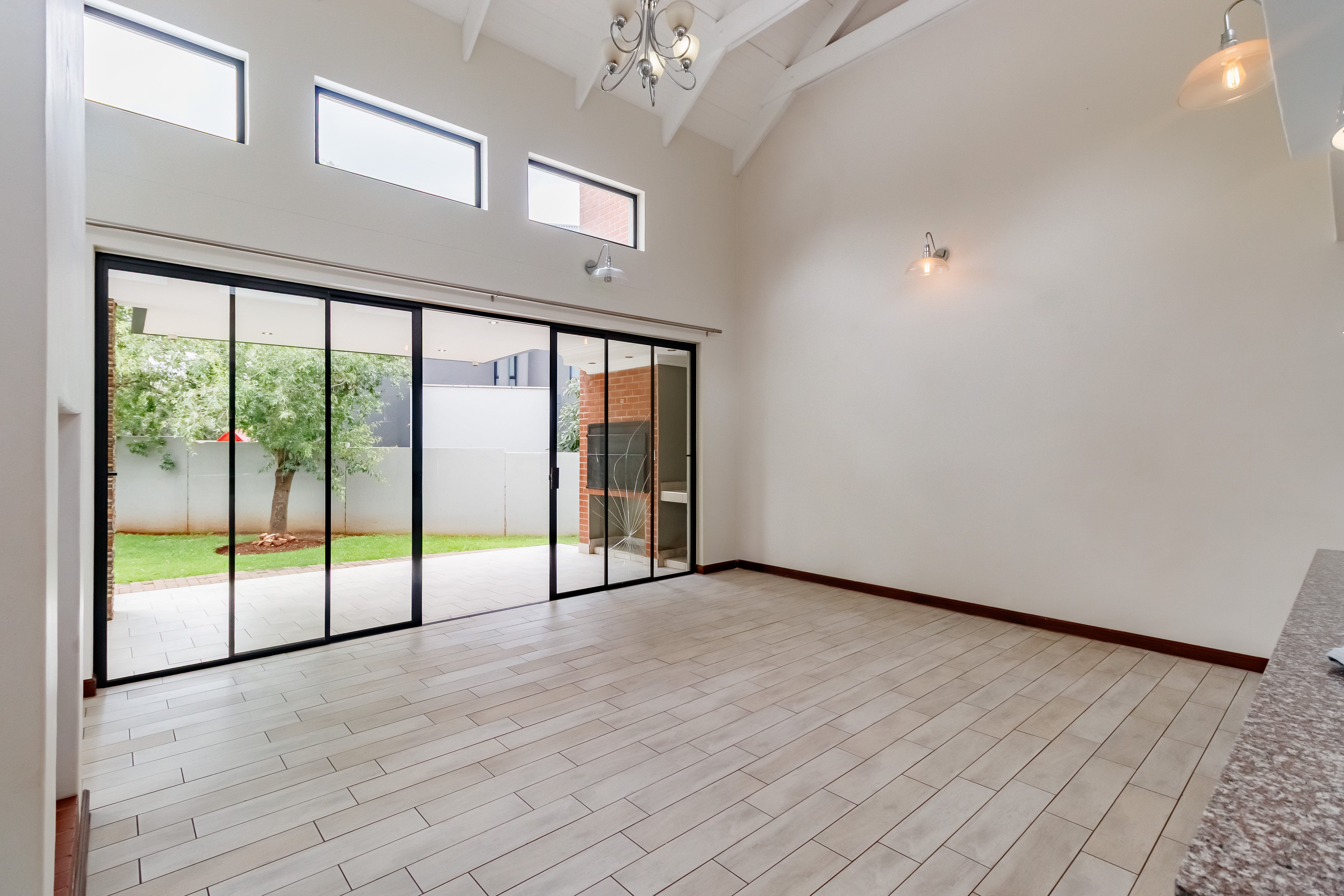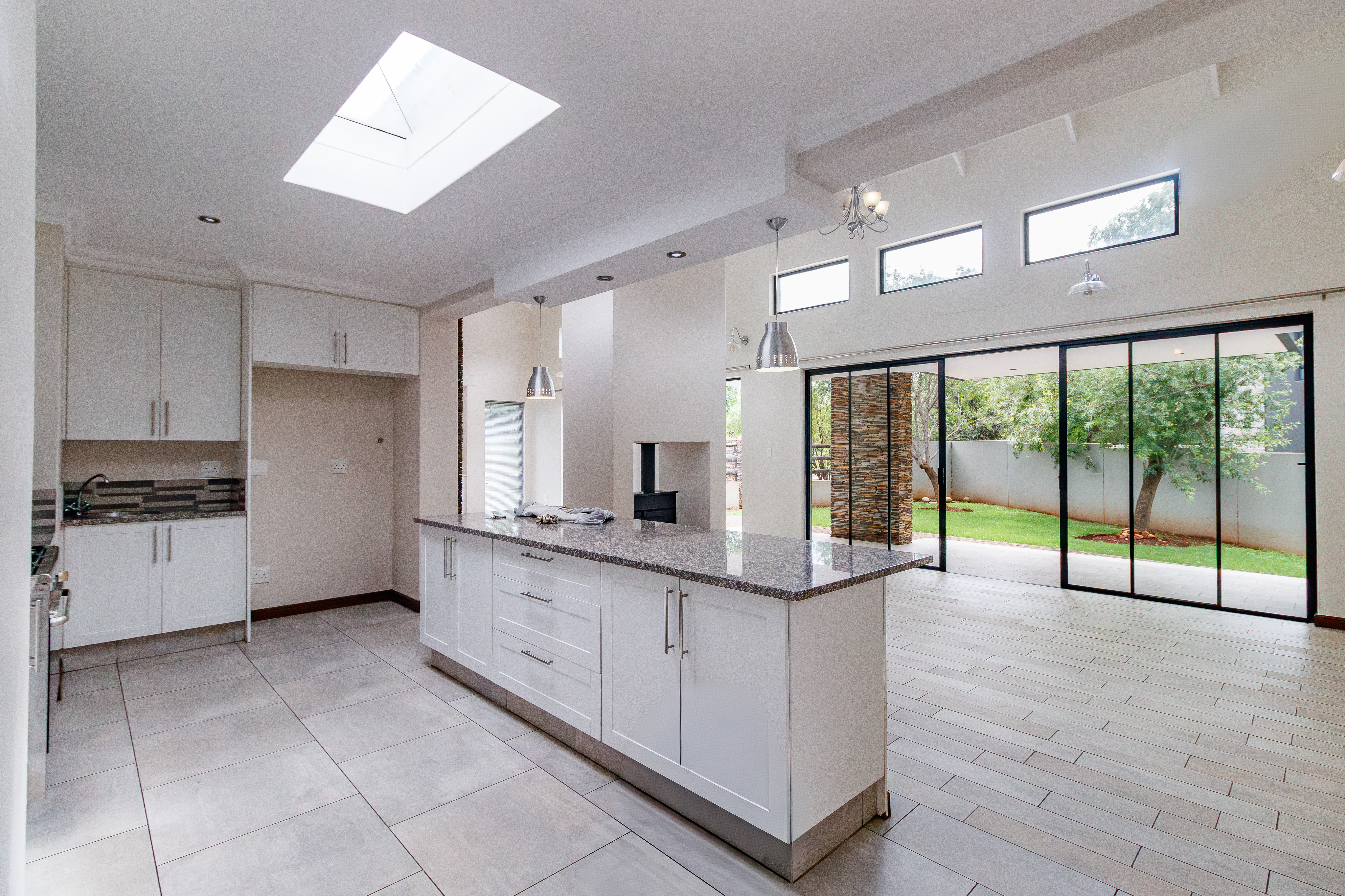 This beautifully designed farmhouse-style single-storey home is truly one of a kind, perfectly positioned in the secure and sought-after Midstream Ridge Estate. Situated in a prime location with direct access to a stunning park and playground, this home offers both charm and convenience. Upon entering, you’re greeted by a spacious guest bedroom with an en-suite bathroom and private outdoor access — ideal for guests or as a staff accommodation. The home opens up into an inviting open-plan living area that flows seamlessly into the modern kitchen, scullery, and garage. The kitchen overlooks the living and entertainment spaces, allowing you to stay connected during family gatherings. High ceilings, an indoor fireplace, and an outdoor braai area create the perfect blend of warmth and elegance for everyday living and entertaining.