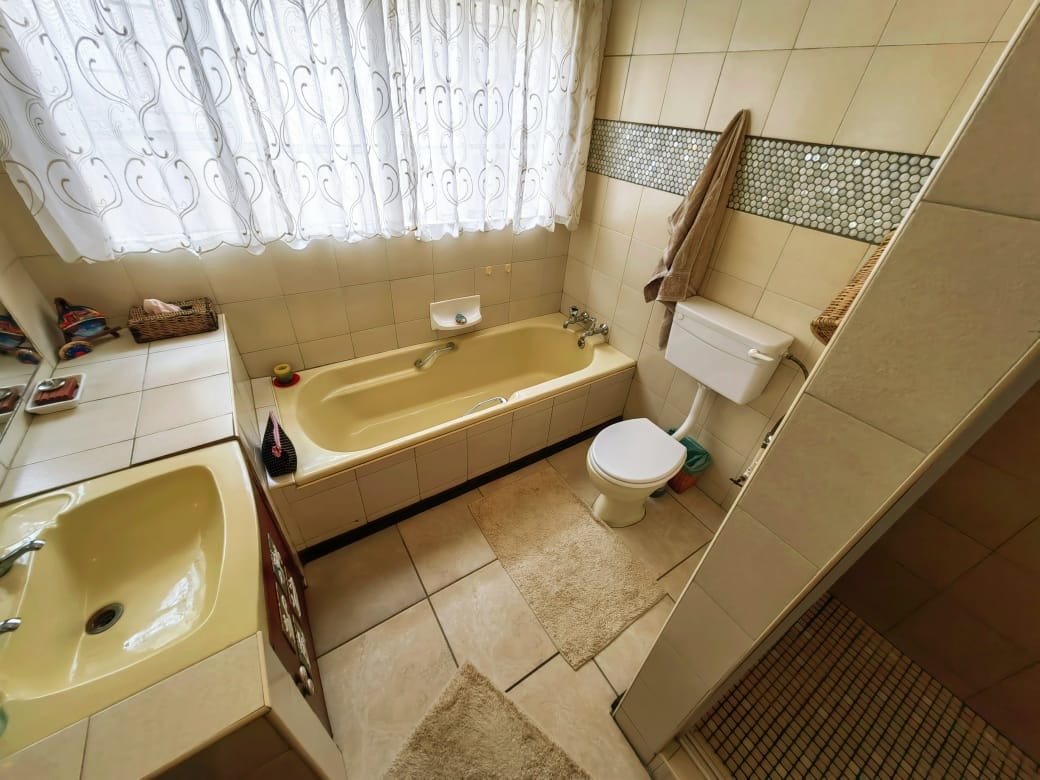 The heart of the home, the kitchen, is a culinary haven equipped with modern appliances, a scullery, and a convenient laundry area. Outside, the spacious yard beckons for outdoor gatherings and play, complemented by a double garage for secure parking and a borehole ensuring constant water supply.
