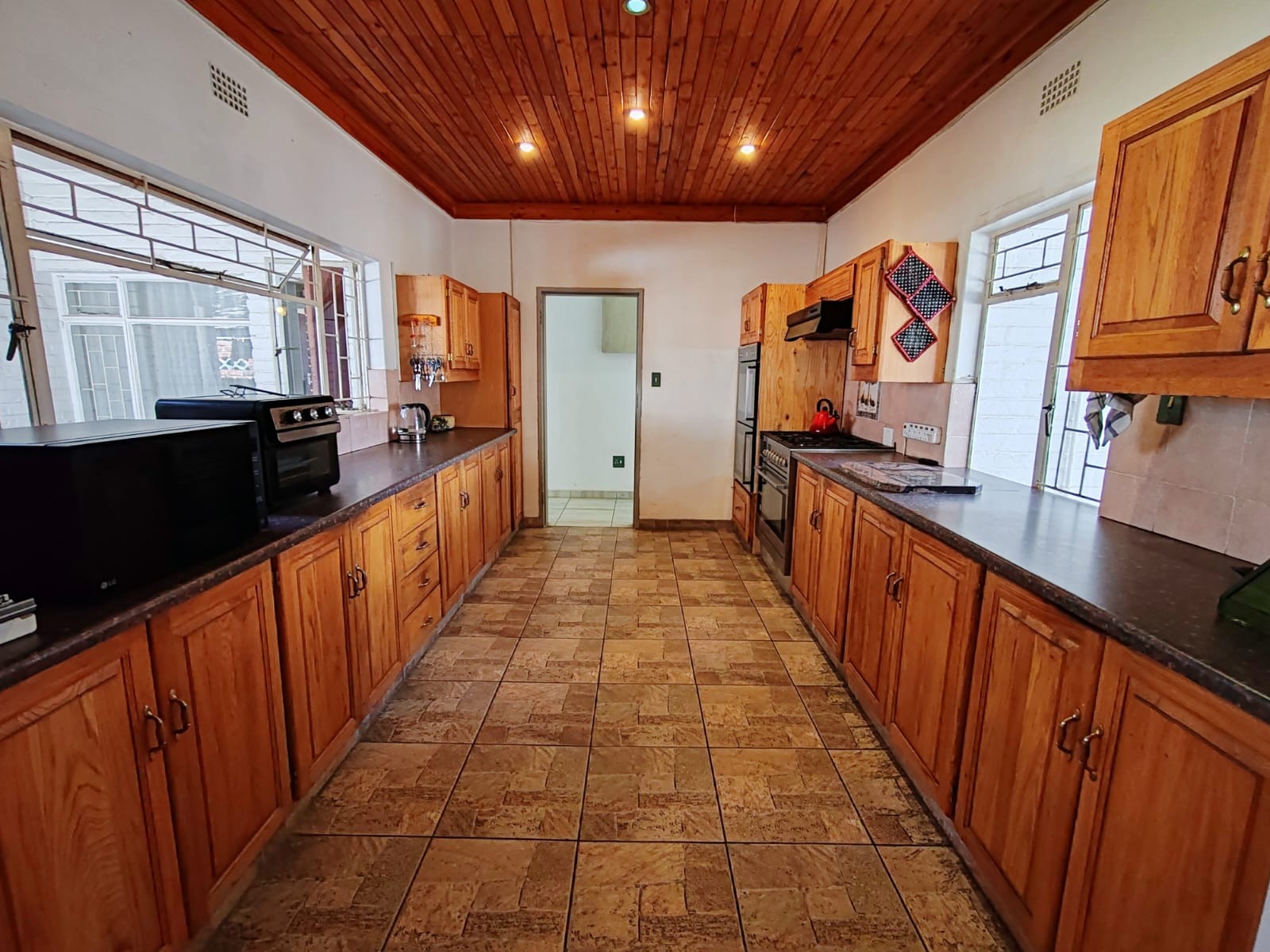 Step outside to discover an entertainer's paradise—a shimmering swimming pool beckons on warm days, while the expansive yard offers endless possibilities for outdoor activities. With a borehole ensuring a reliable water supply, your garden will always be lush and green. The double garage and additional double carport provide ample parking and storage space, completing the perfect picture of a dream family home.