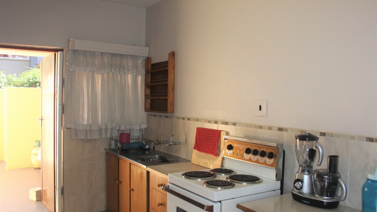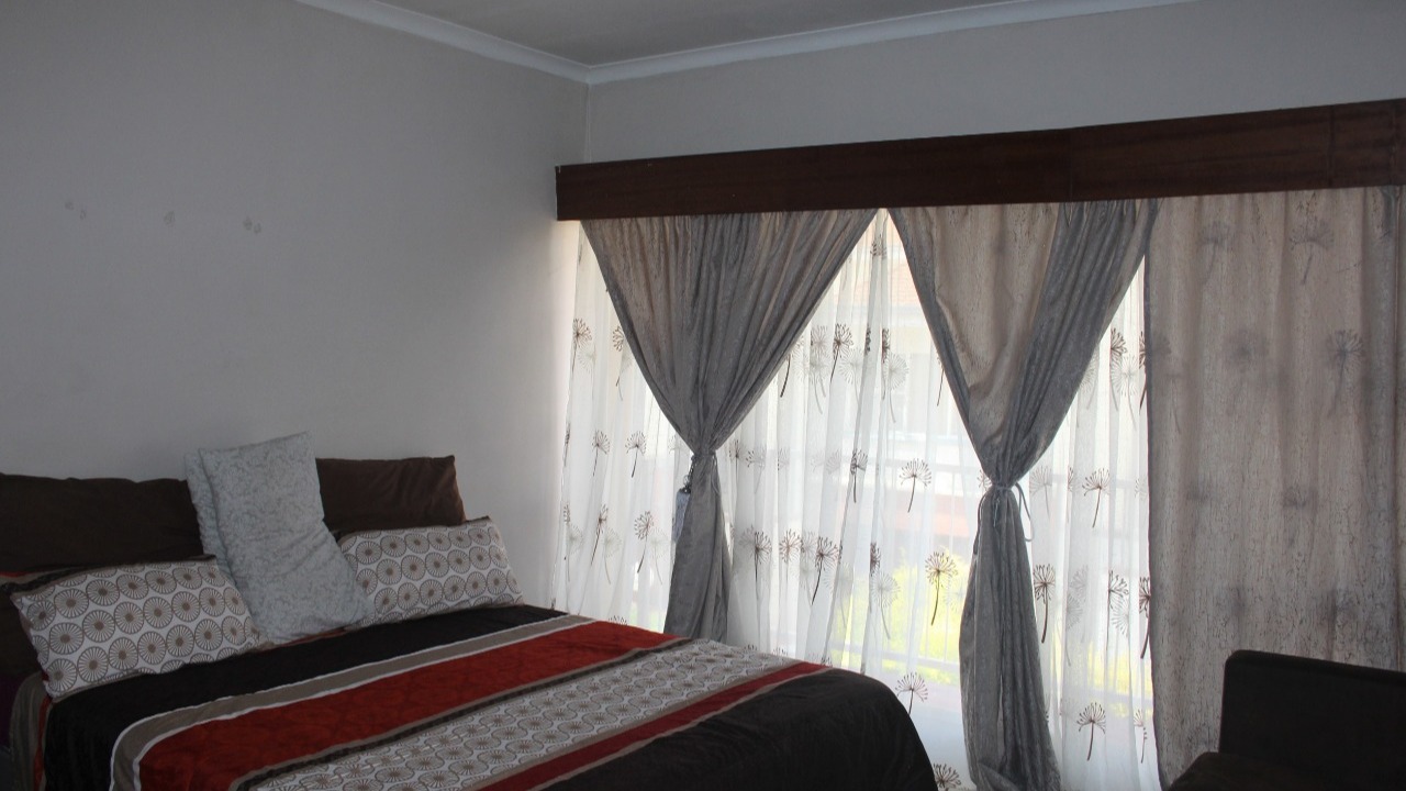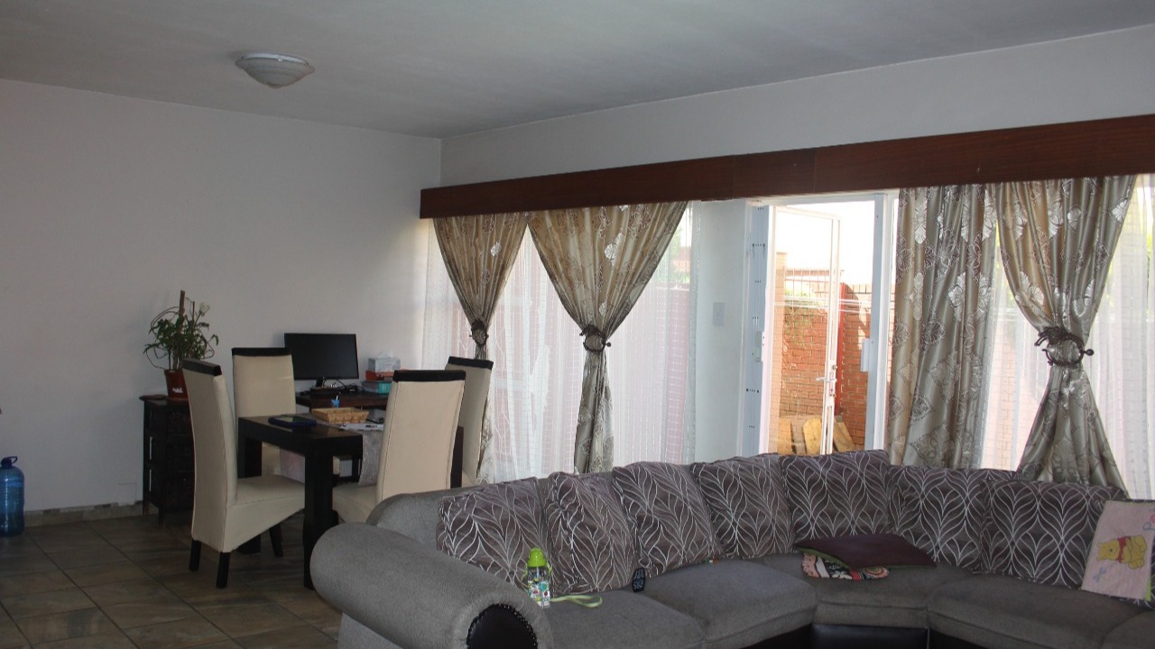 The townhouse boasts two spacious rooms with a bathroom, living area and open plan kitchen. The unit is tiled throughout with a backdoor leading to a small garden. The open plan living - and kitchen area is spacious. The complex is safe and secure with garage and has access-controlled entrance. The complex is situated close to major amenities which include several schools and convenience stores within walking distance. Do not hesitate to contact me for a viewing.