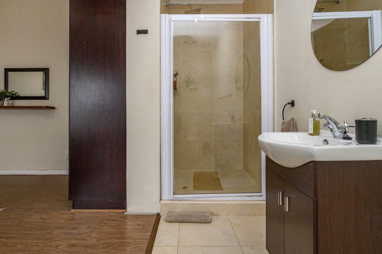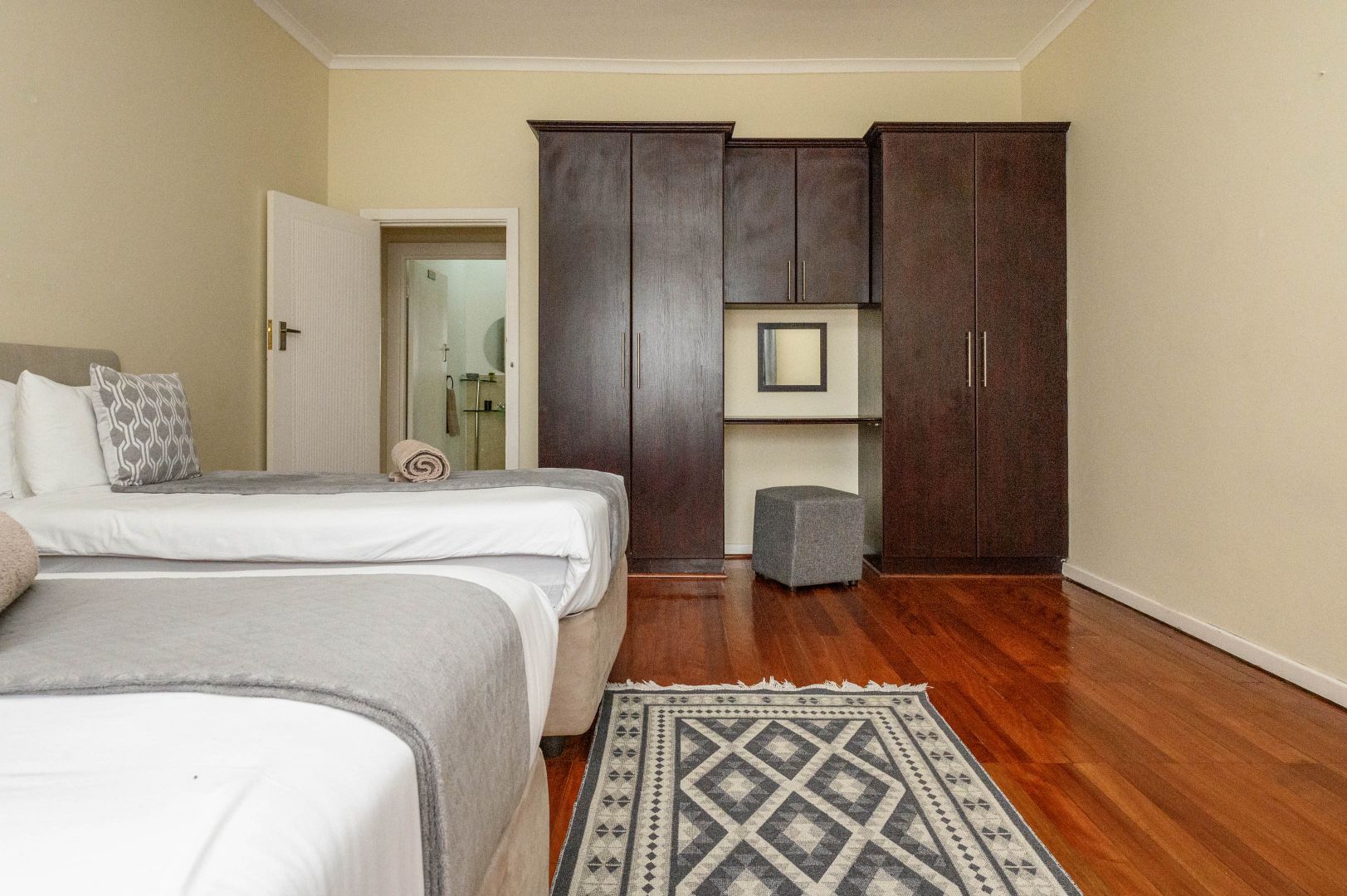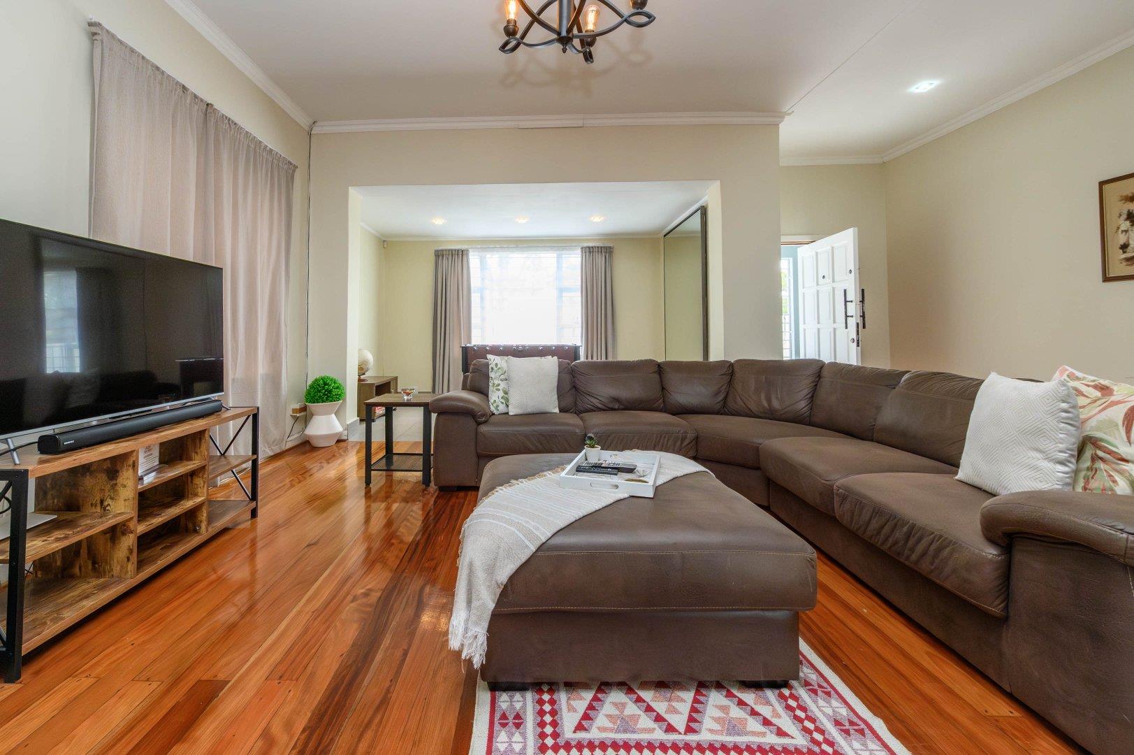 Modern open-plan living with a contemporary kitchen and island, polished wooden floors, and seamless indoor-outdoor flow to a covered patio, pool and braai area. The main house features three spacious bedrooms, including a luxurious master suite with walk-in closet, double-volume shower and jet spa bath.