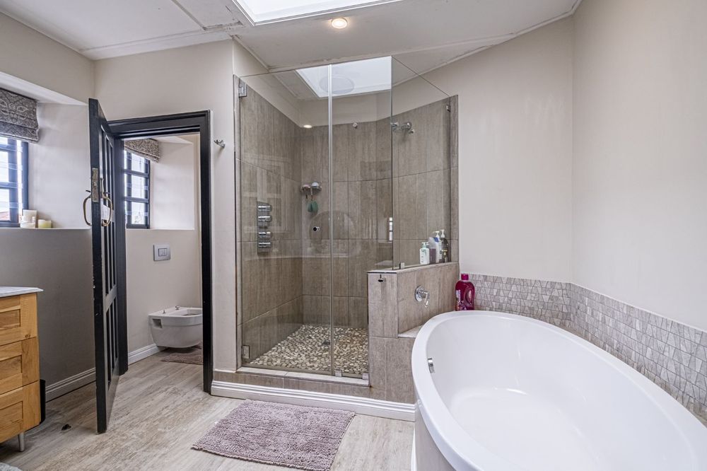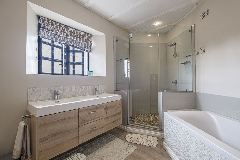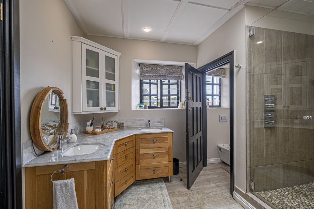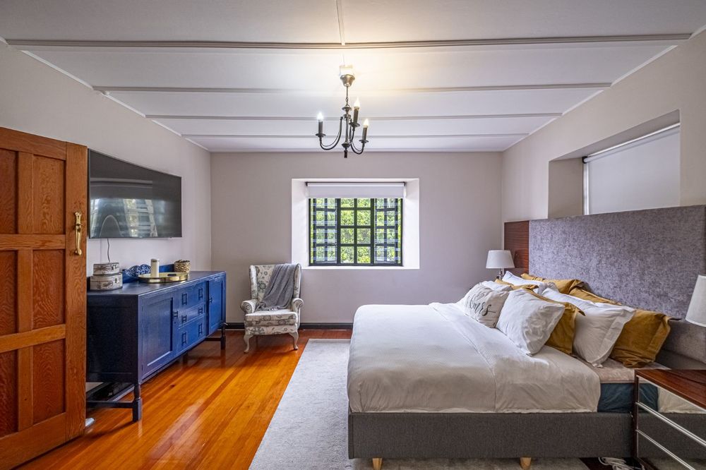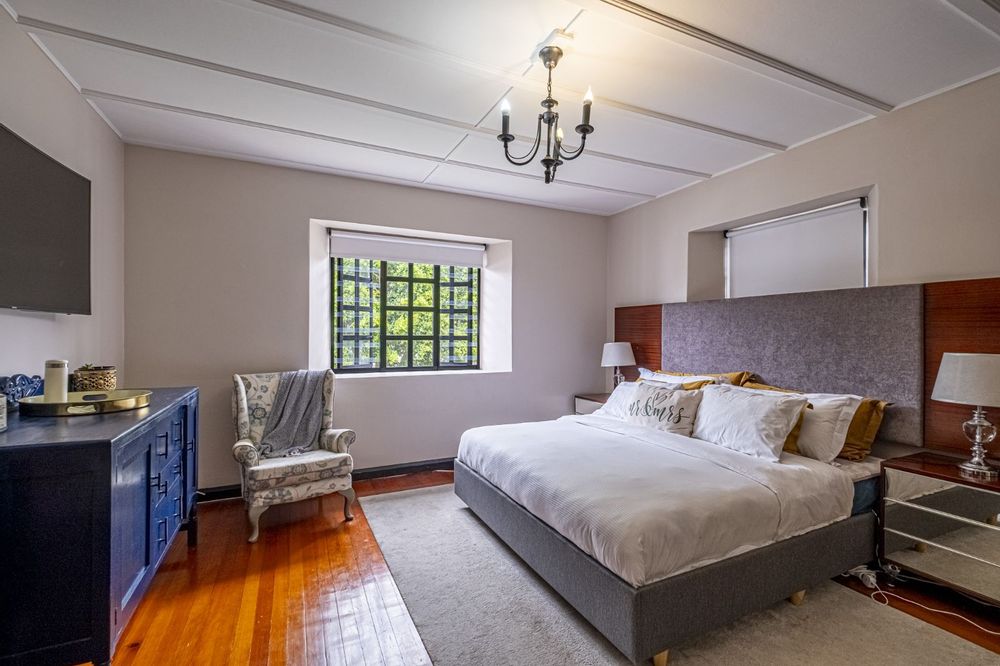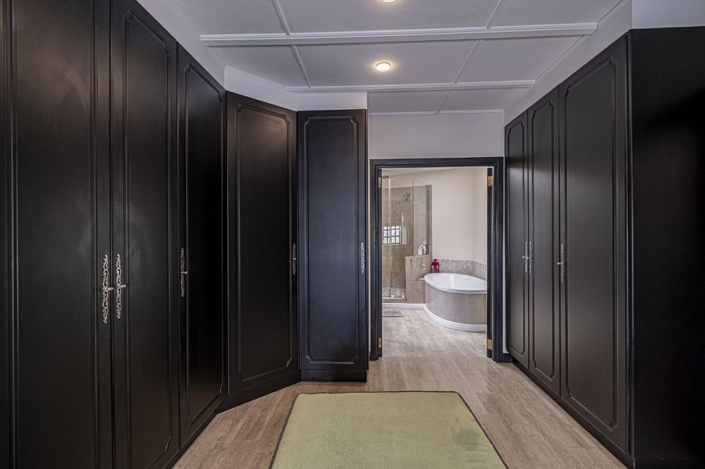 Two storeys brought together by a feature staircase, it has three living rooms, all with windows overlooking the most stunning manicured gardens, with ample outside entertainment including a North-facing braai area, and pool, leaving you spoilt for choice all year round.