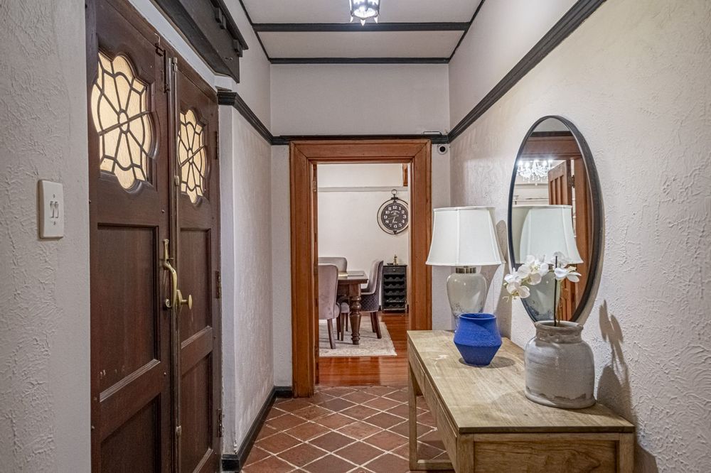 A rare find in the beautiful suburb of Mill Park, this stately 1920 period home is well set back on a substantial 2165m2 erf, with a borehole, solar panels and inverter, a carport as well as six outbuildings.