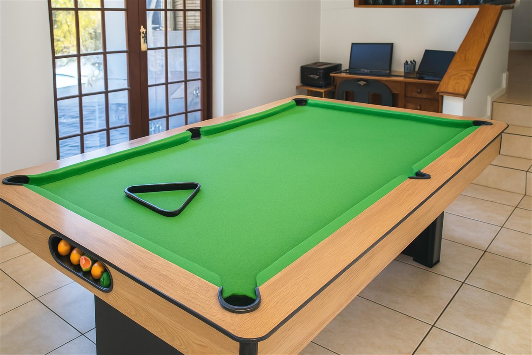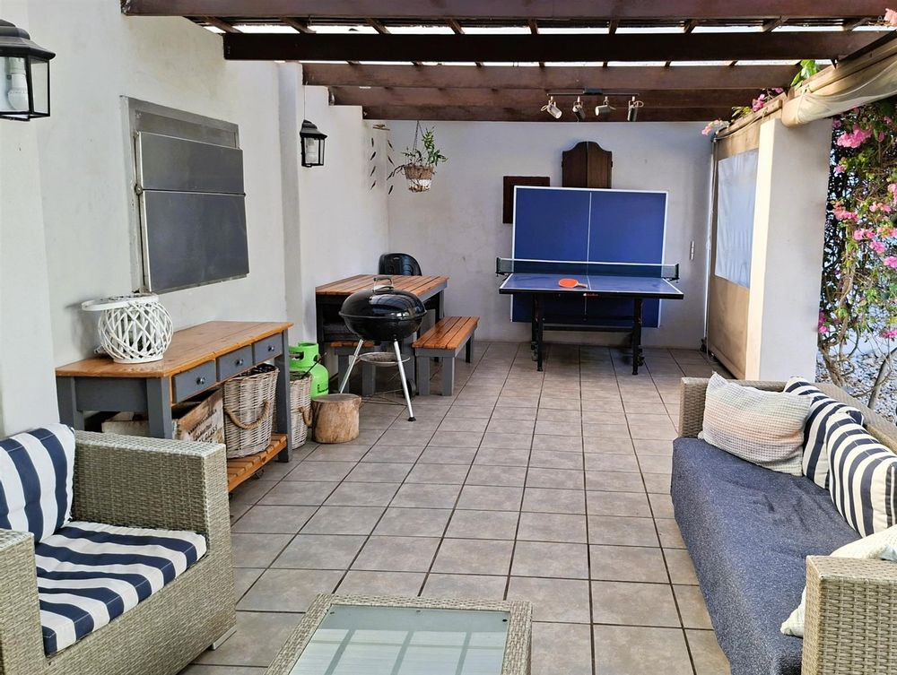Step outside and you’ll find a beautifully maintained garden that wraps around the property, offering both serenity and privacy. The sparkling pool serves as the focal point of the outdoor space, perfect for summer relaxation. An adjoining bar and entertainment area completes the picture, making it easy to host gatherings with family and friends.