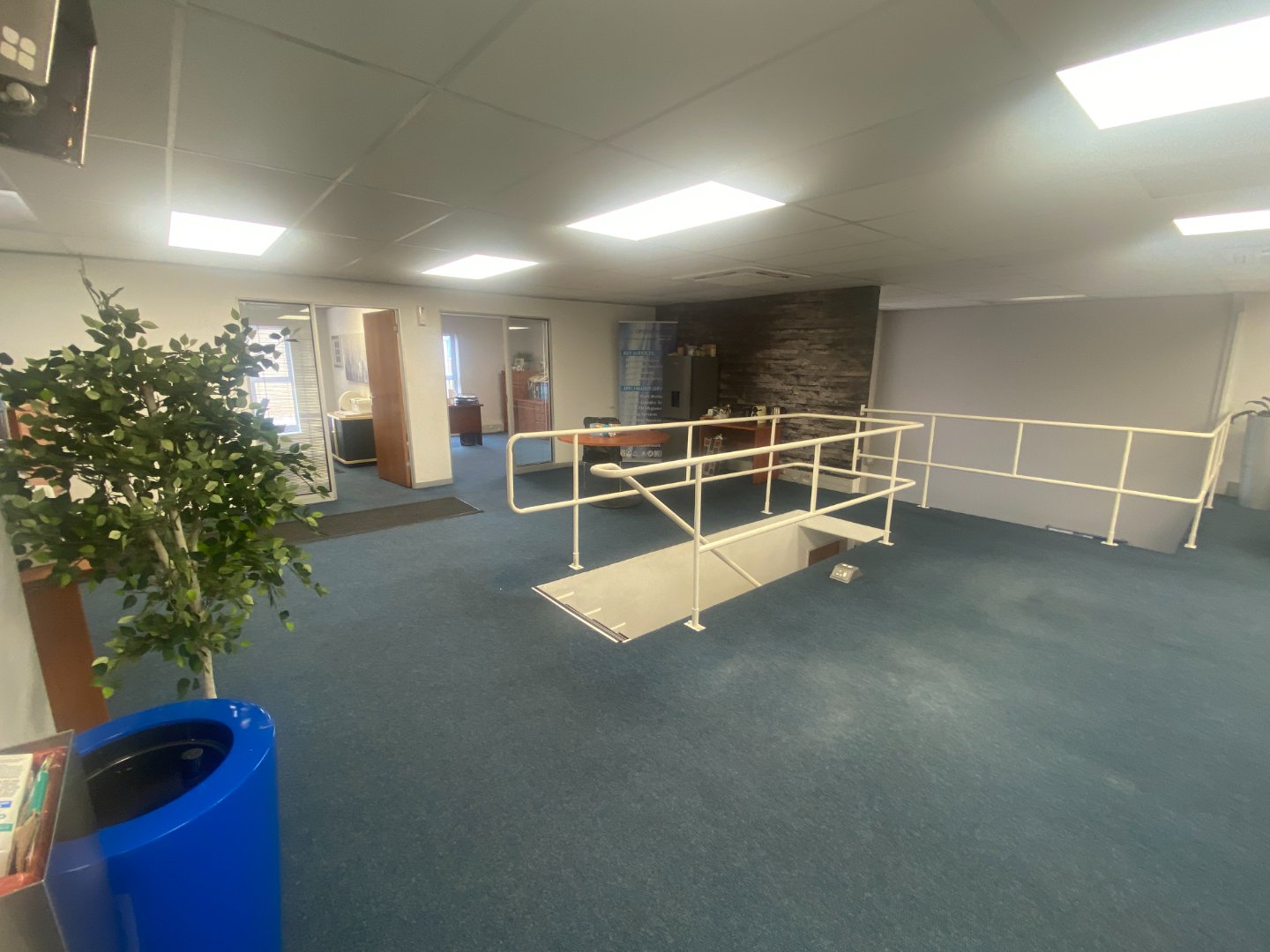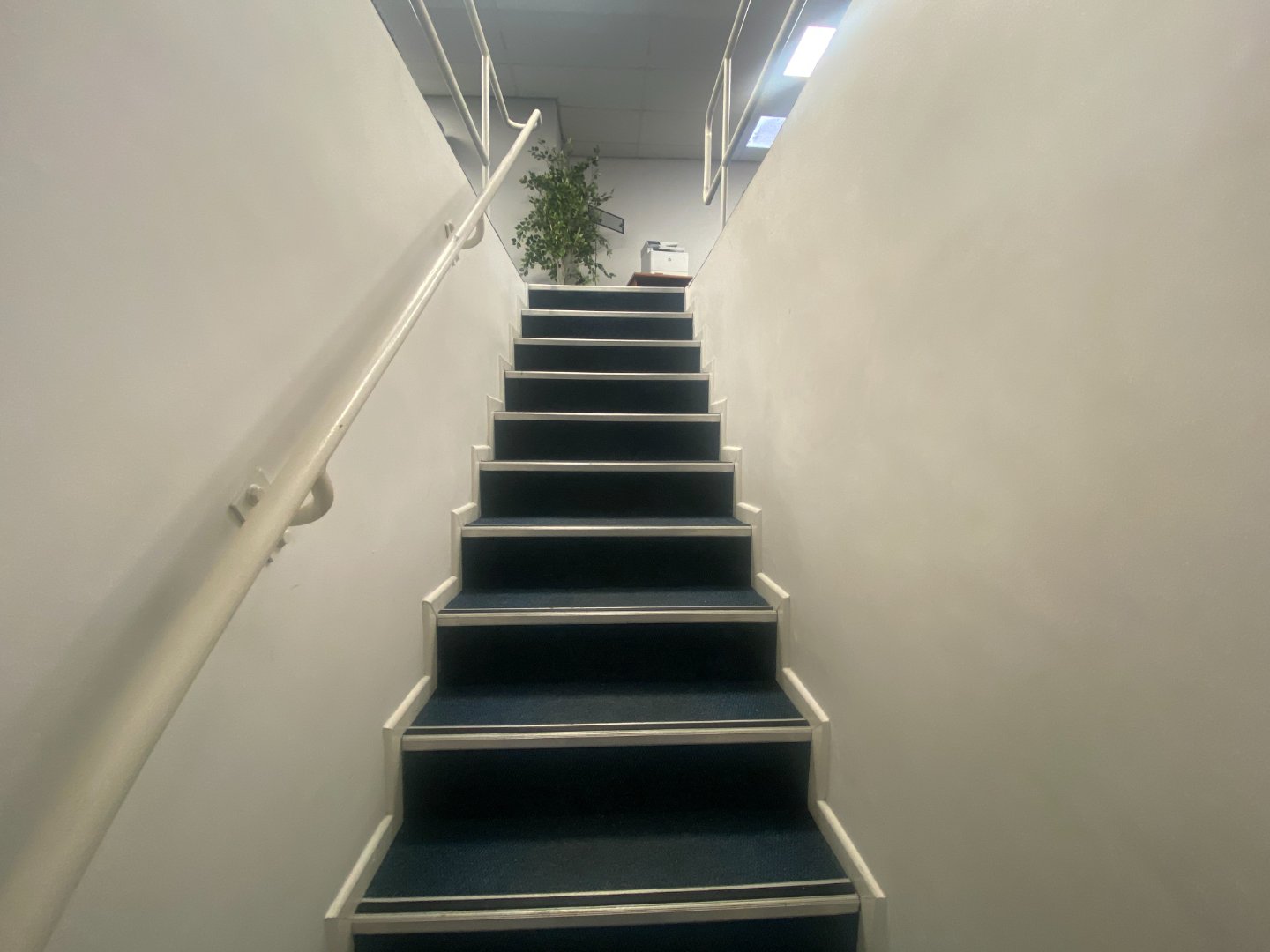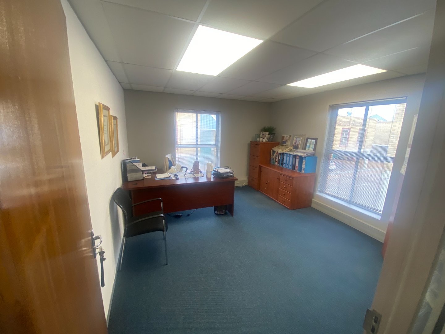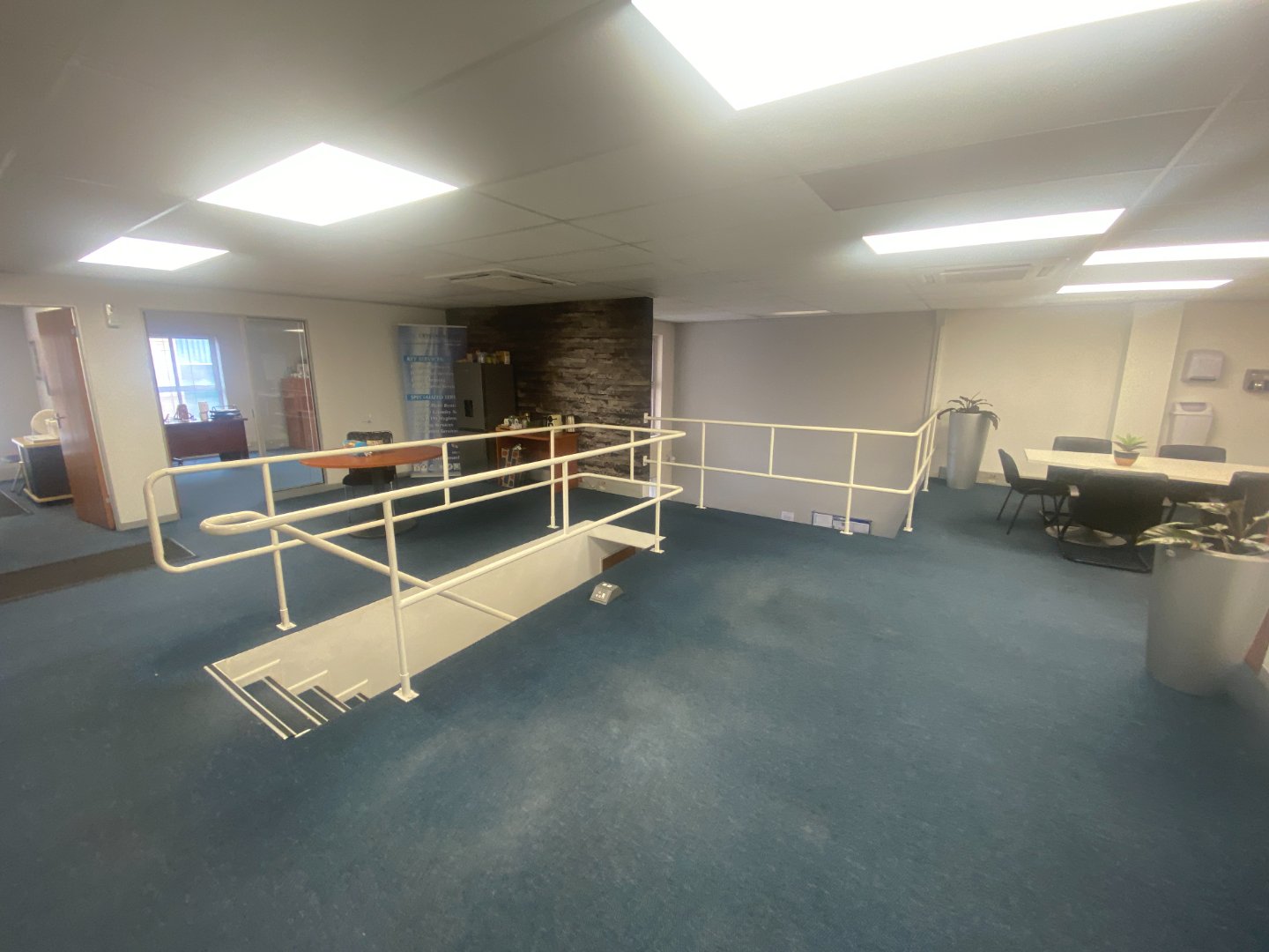 Positioned in a well-secured business complex with 24/7 access control, this professional office unit offers a safe and orderly working environment. The building is in excellent condition and presents a range of workspace configurations, including enclosed offices, an open-plan section upstairs with individual partitions, and a generously sized storage room.