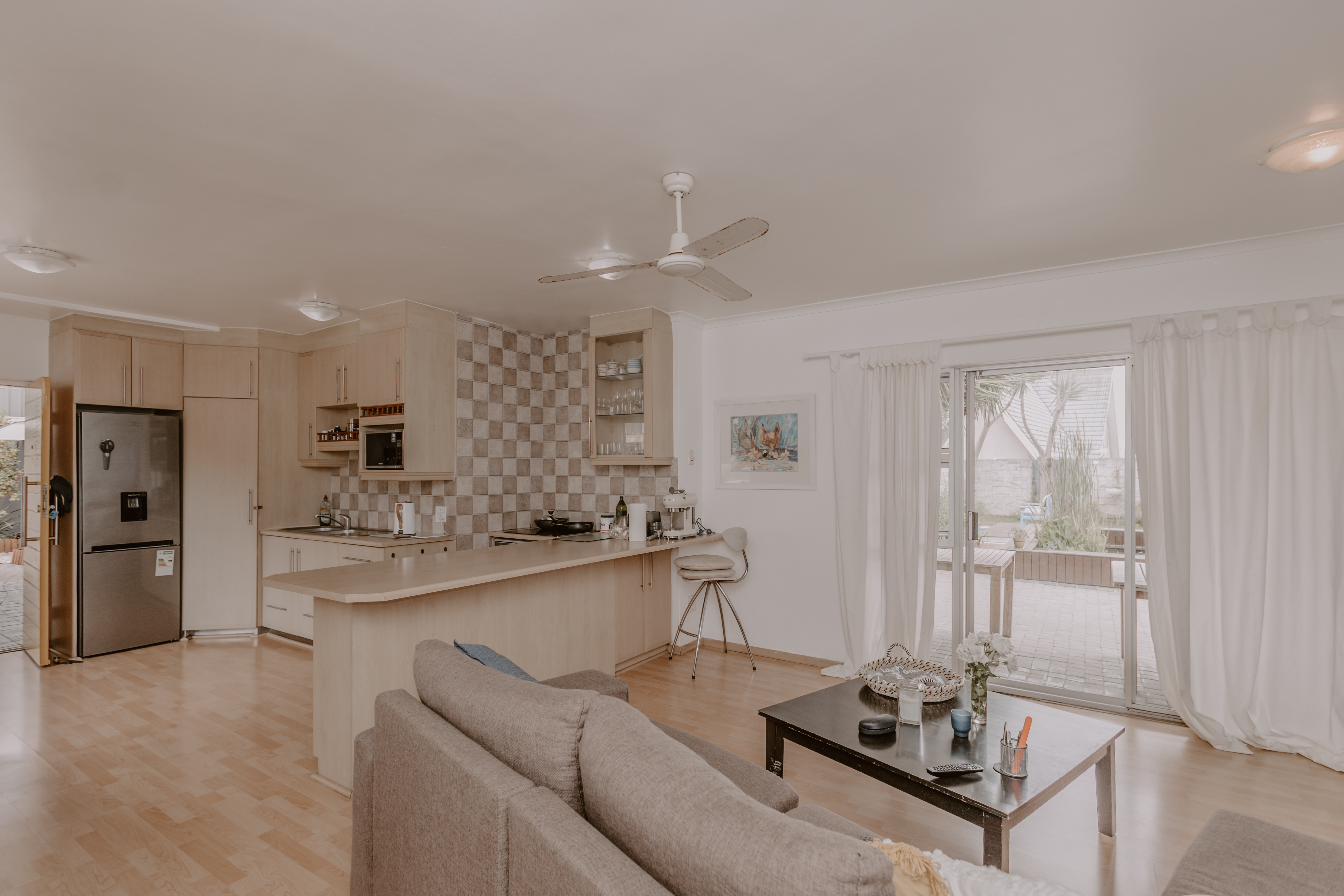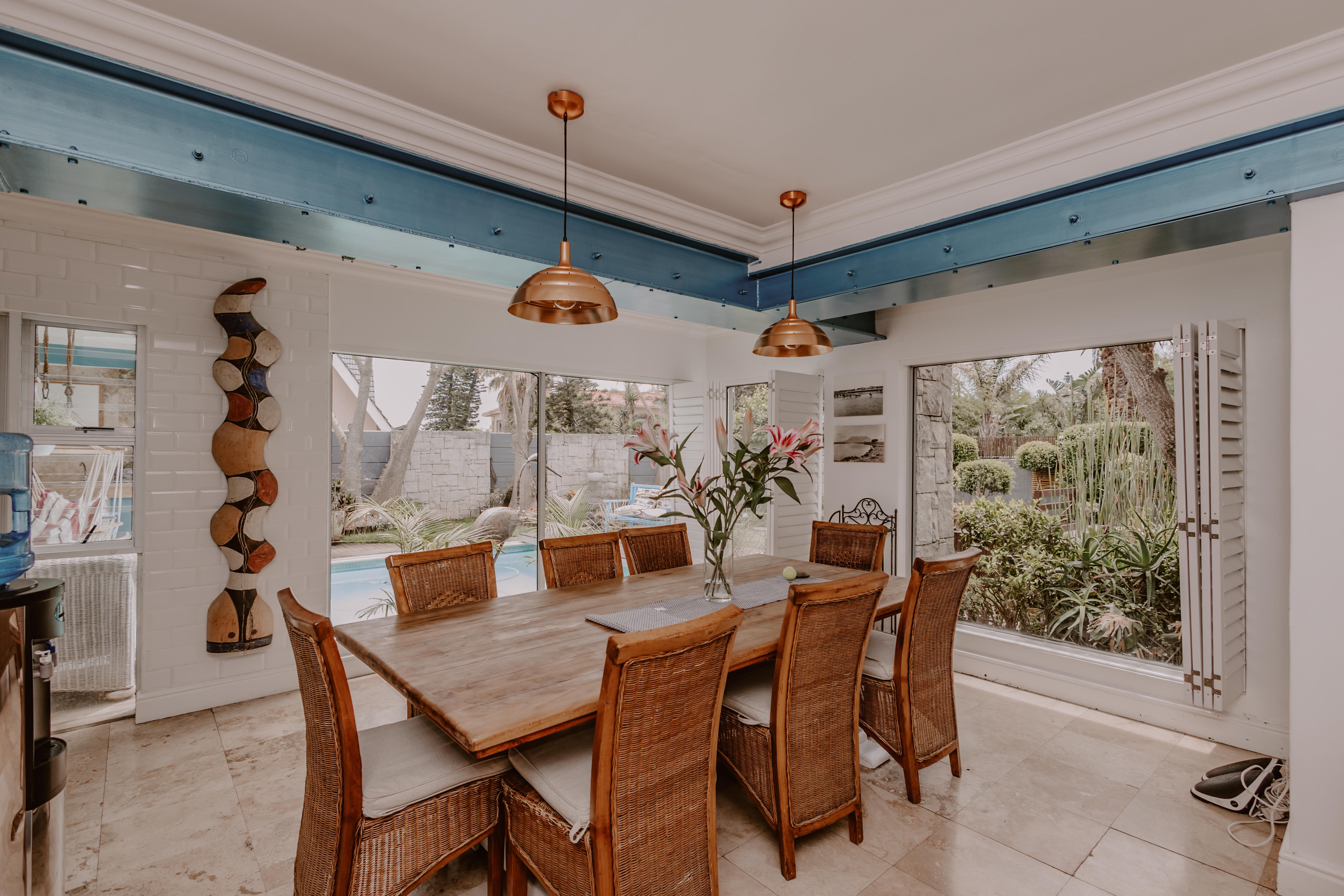 - Airy lounge area with garden access.