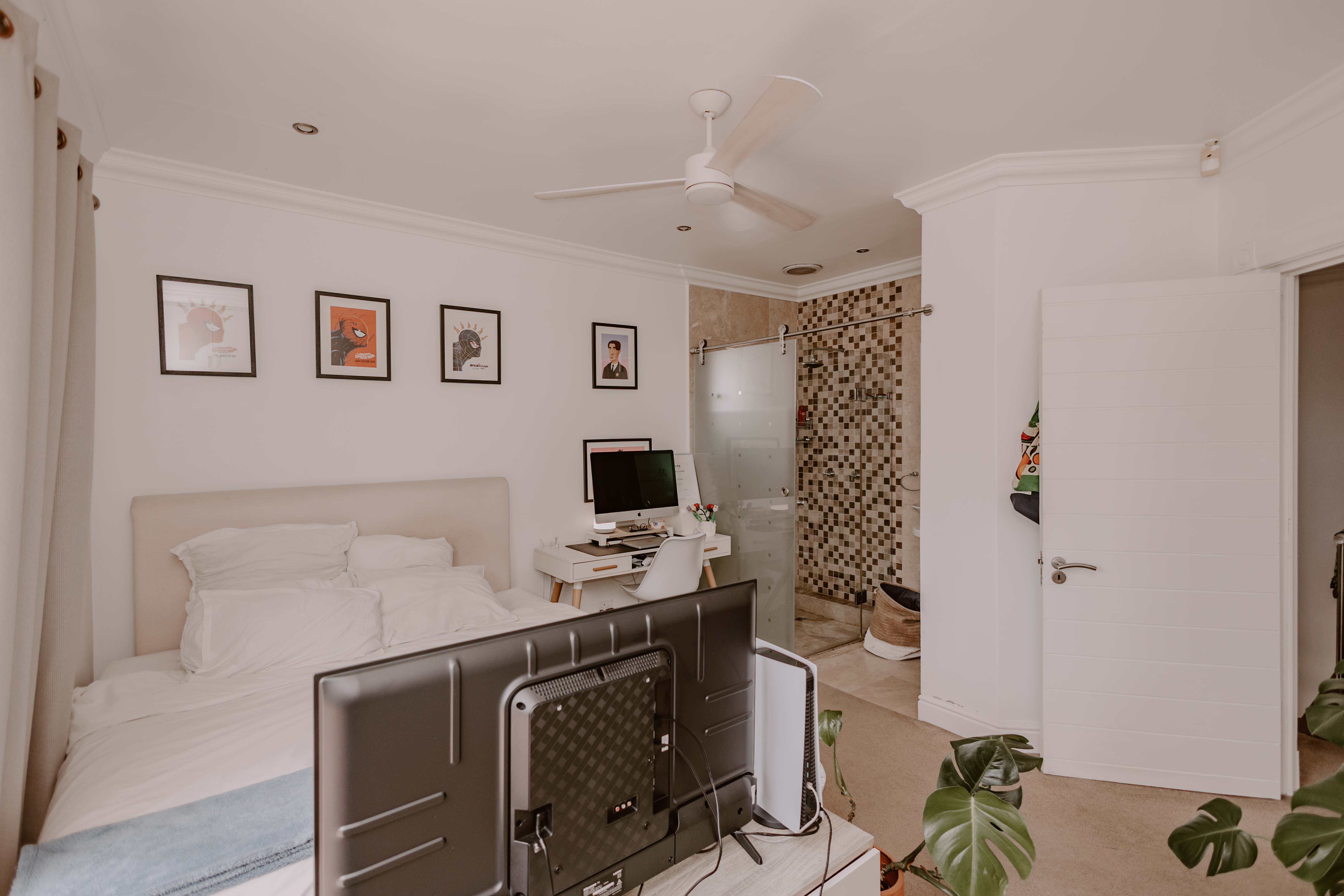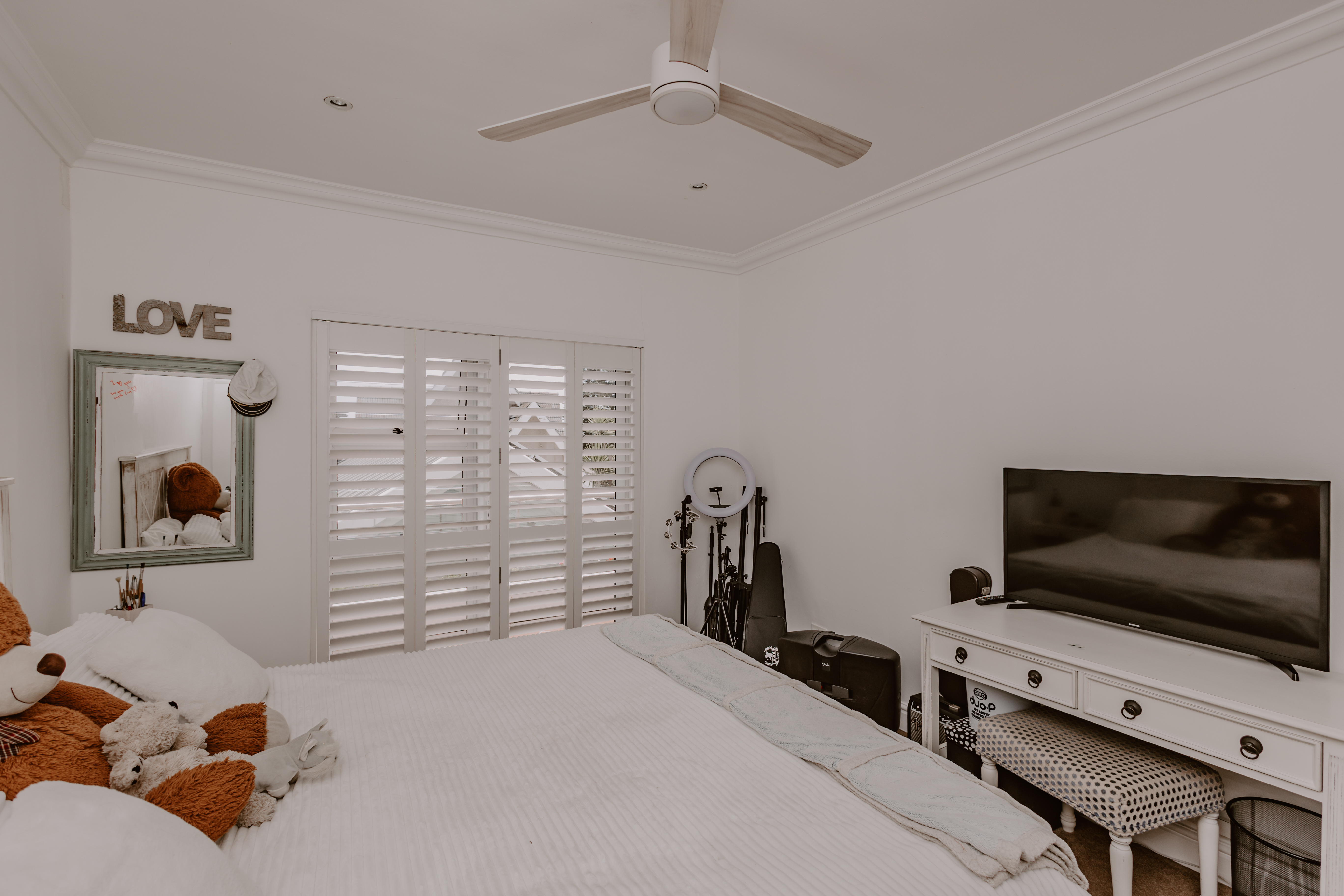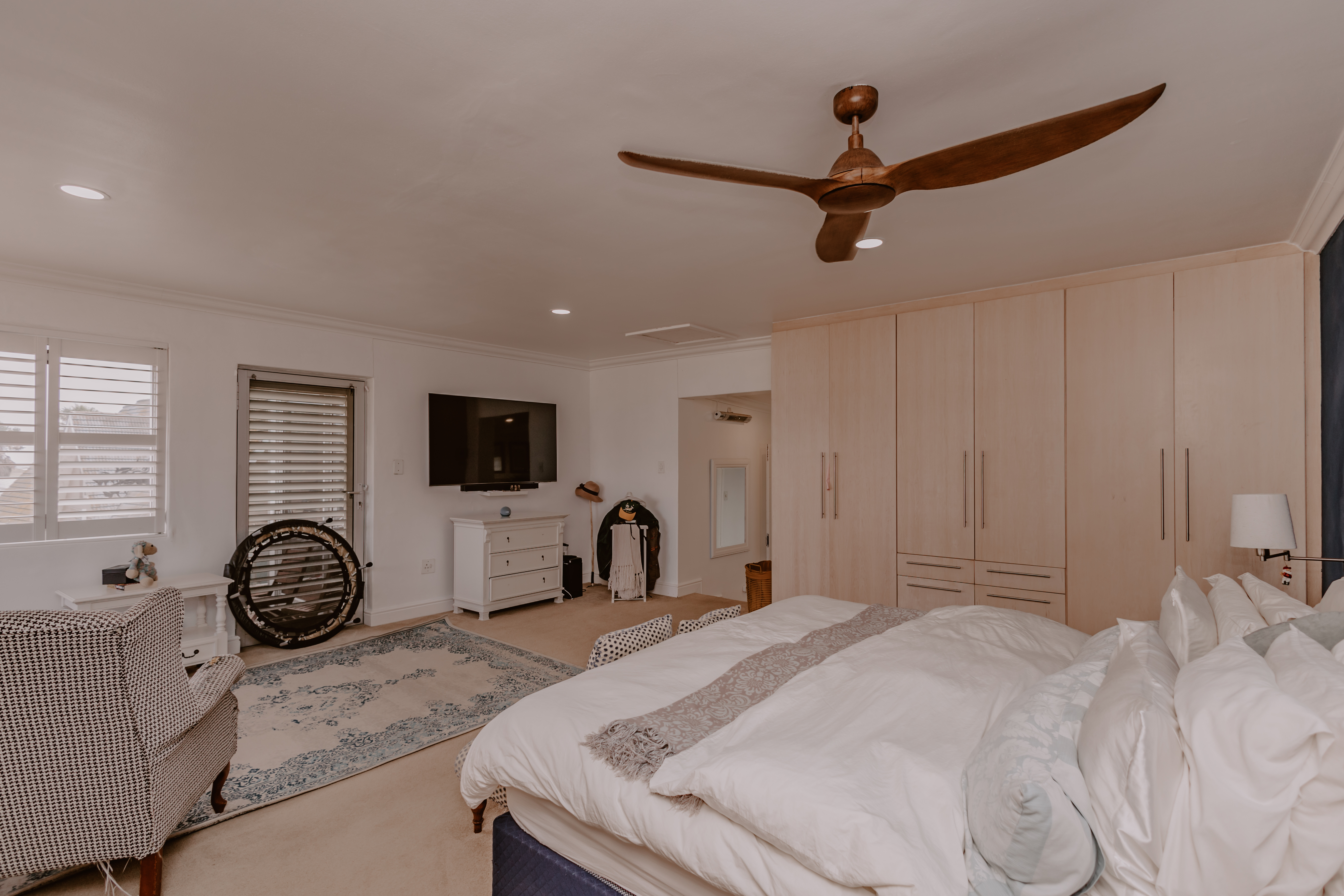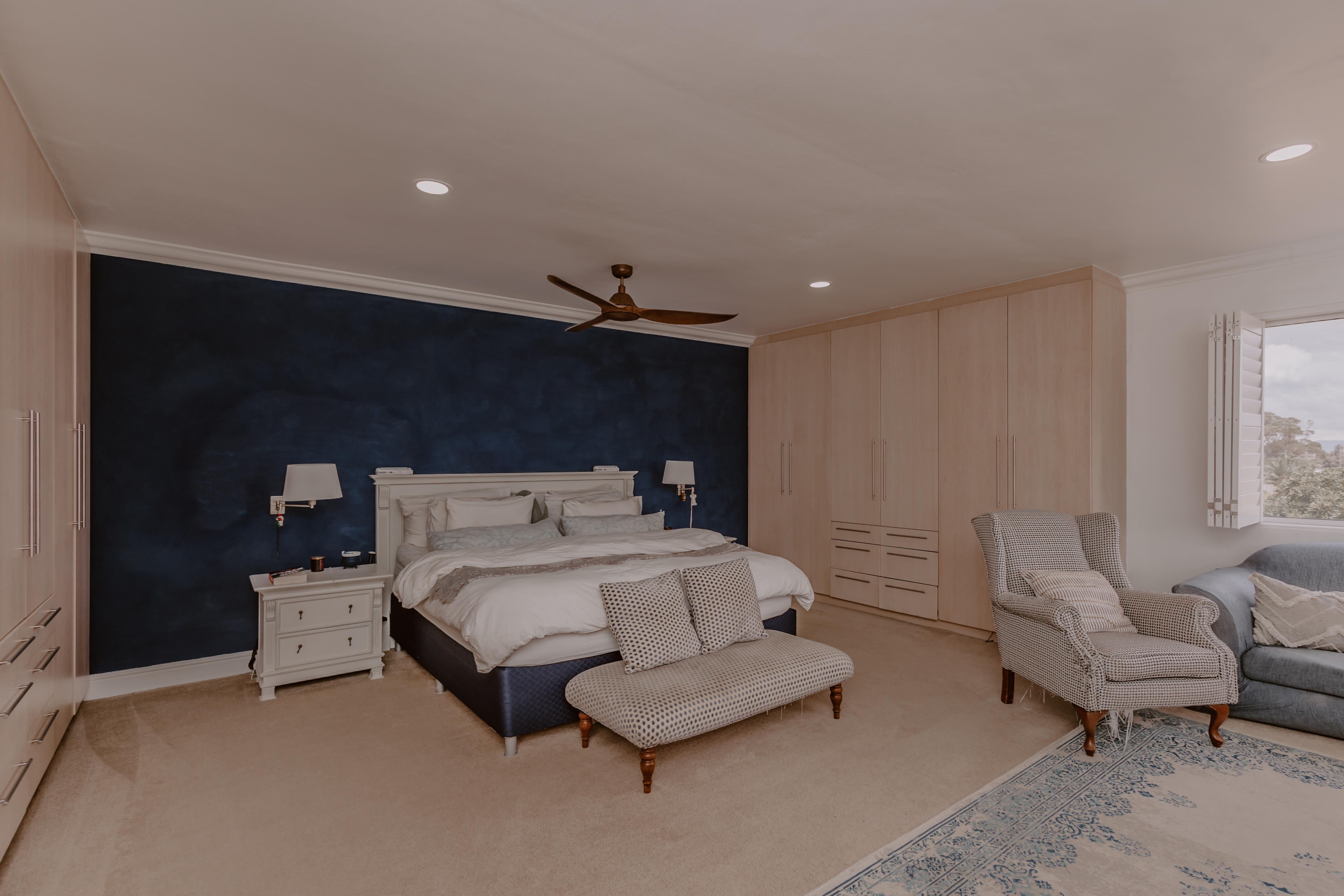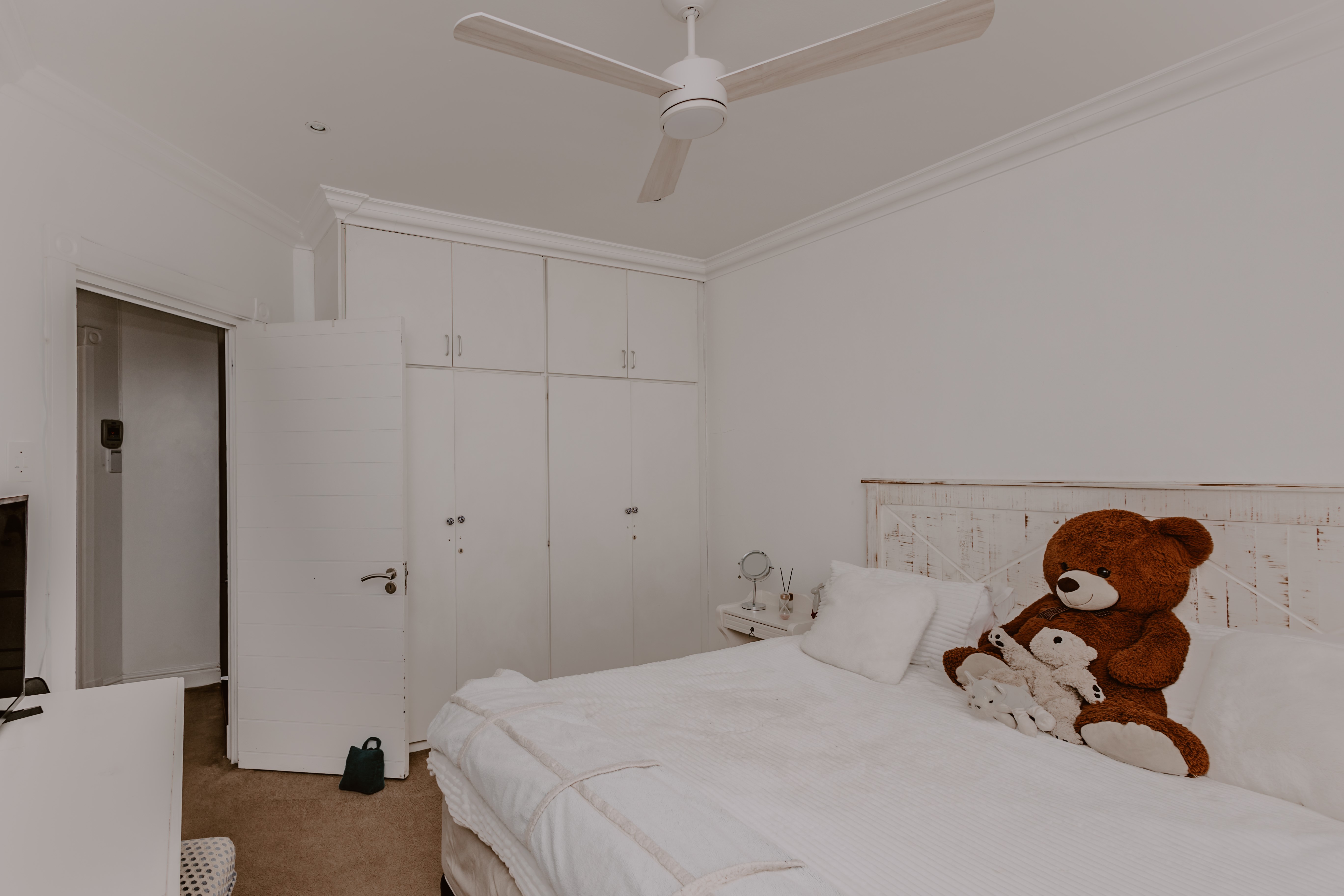 - Spacious bedroom with cupboards.