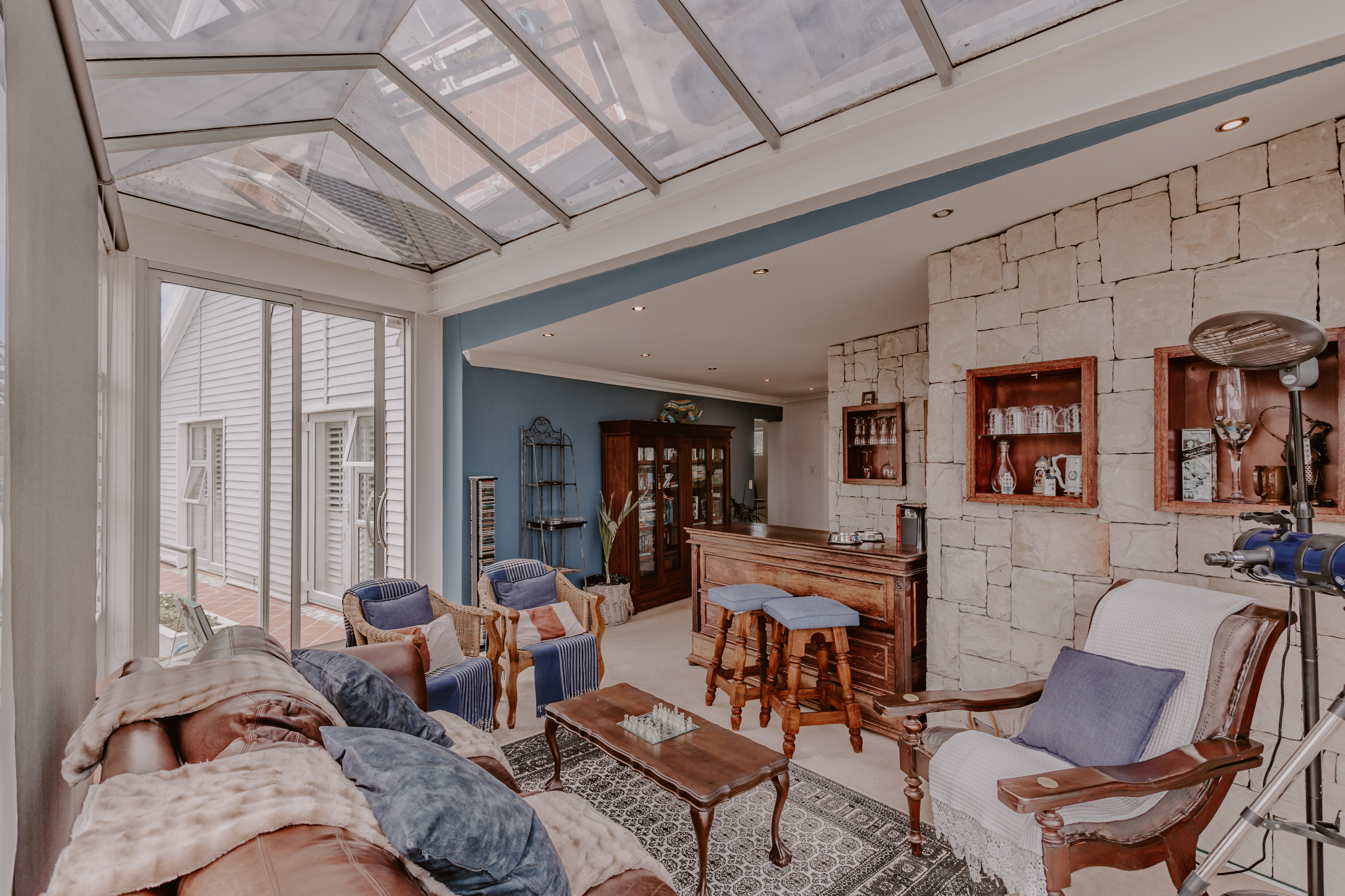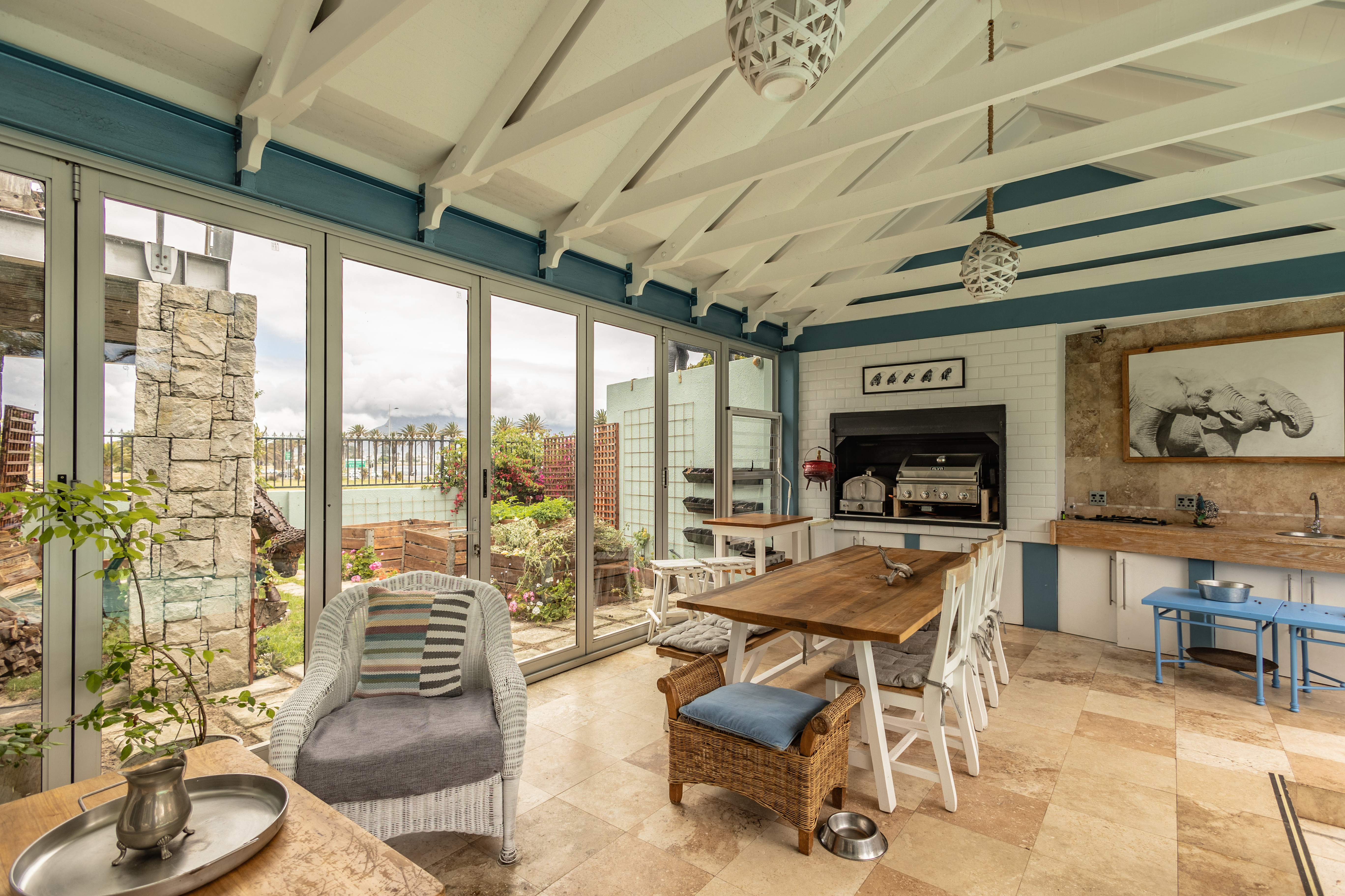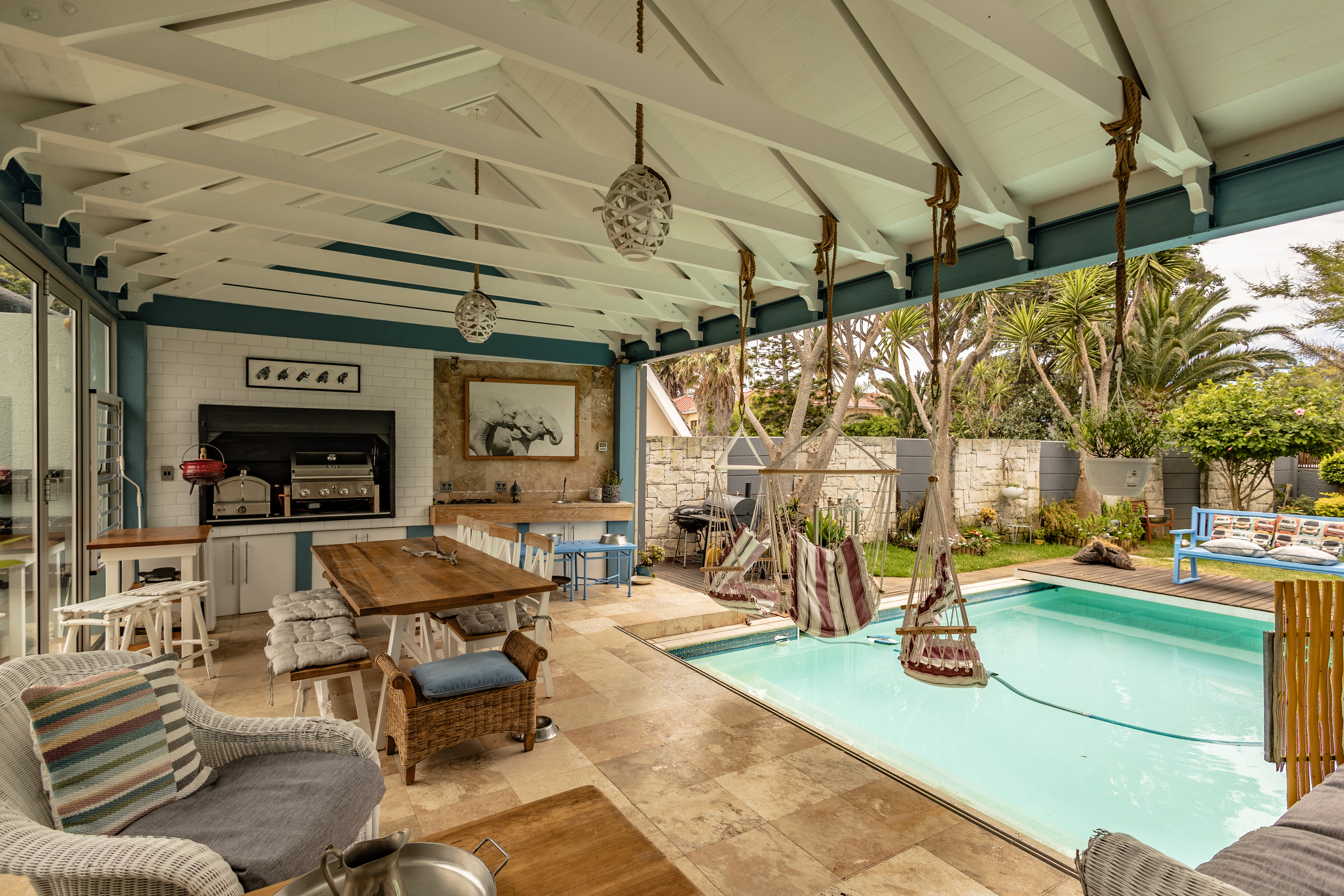 - Covered entertainment area with gas braai and pizza oven.