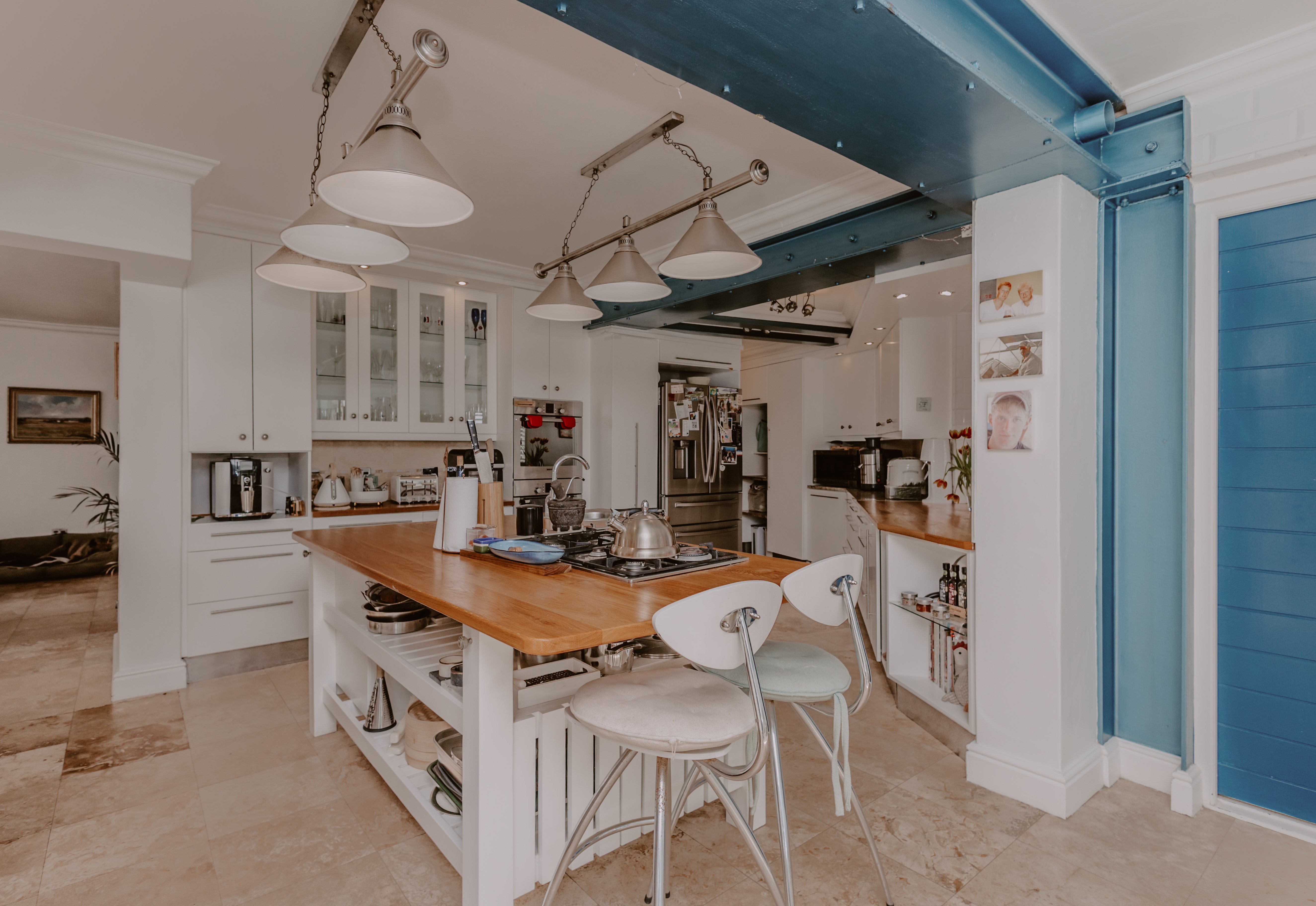 - Chef’s kitchen with ample wardrobe space, gas hob, dual eye-level ovens, and laundry.