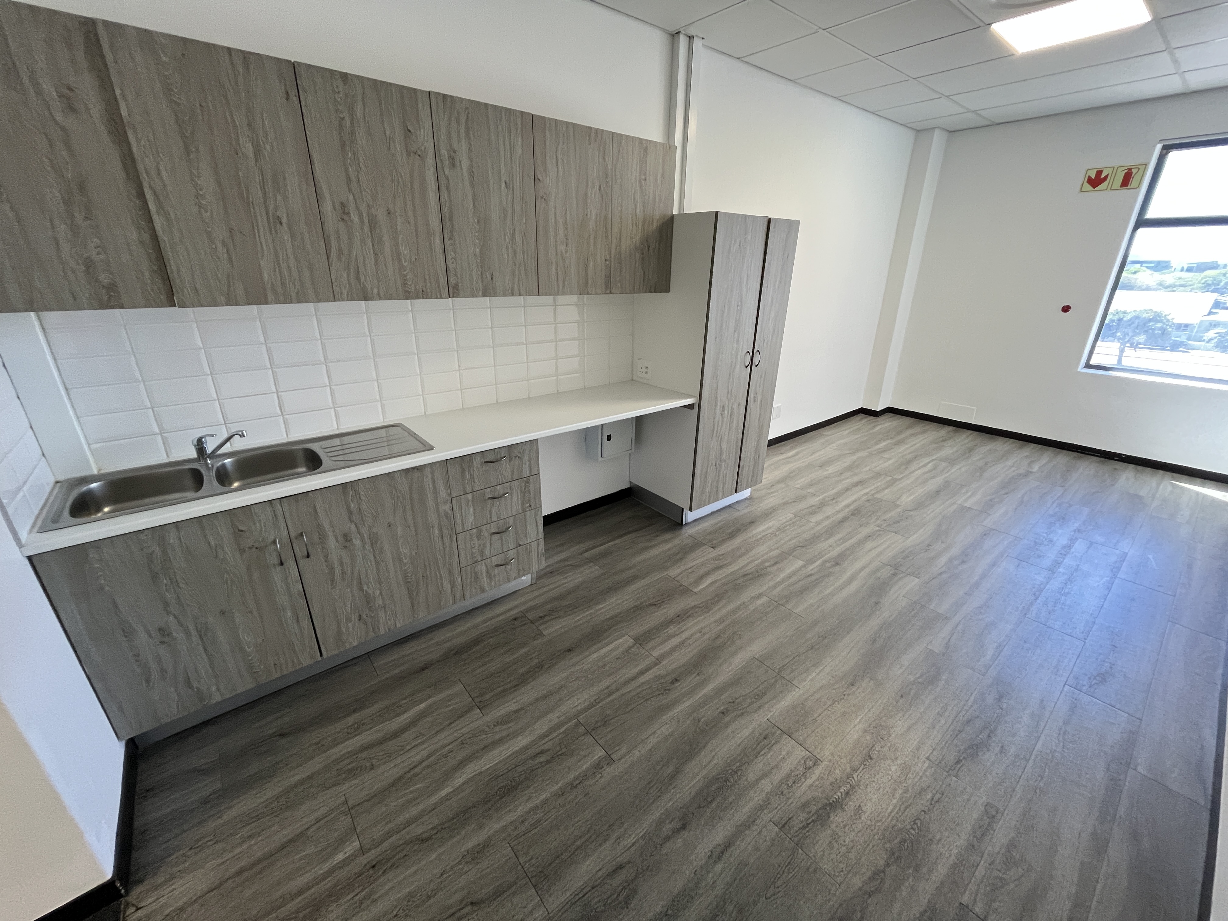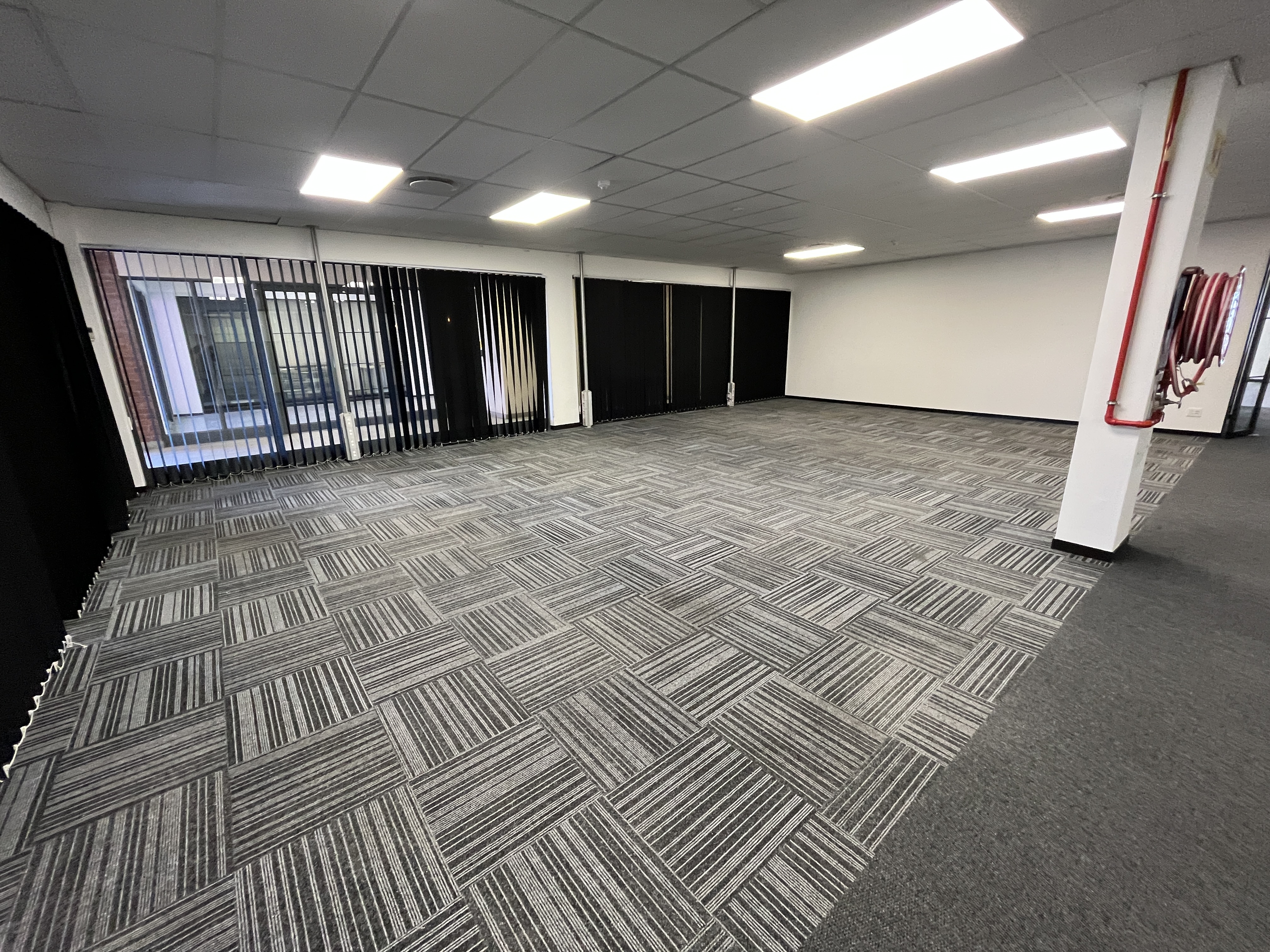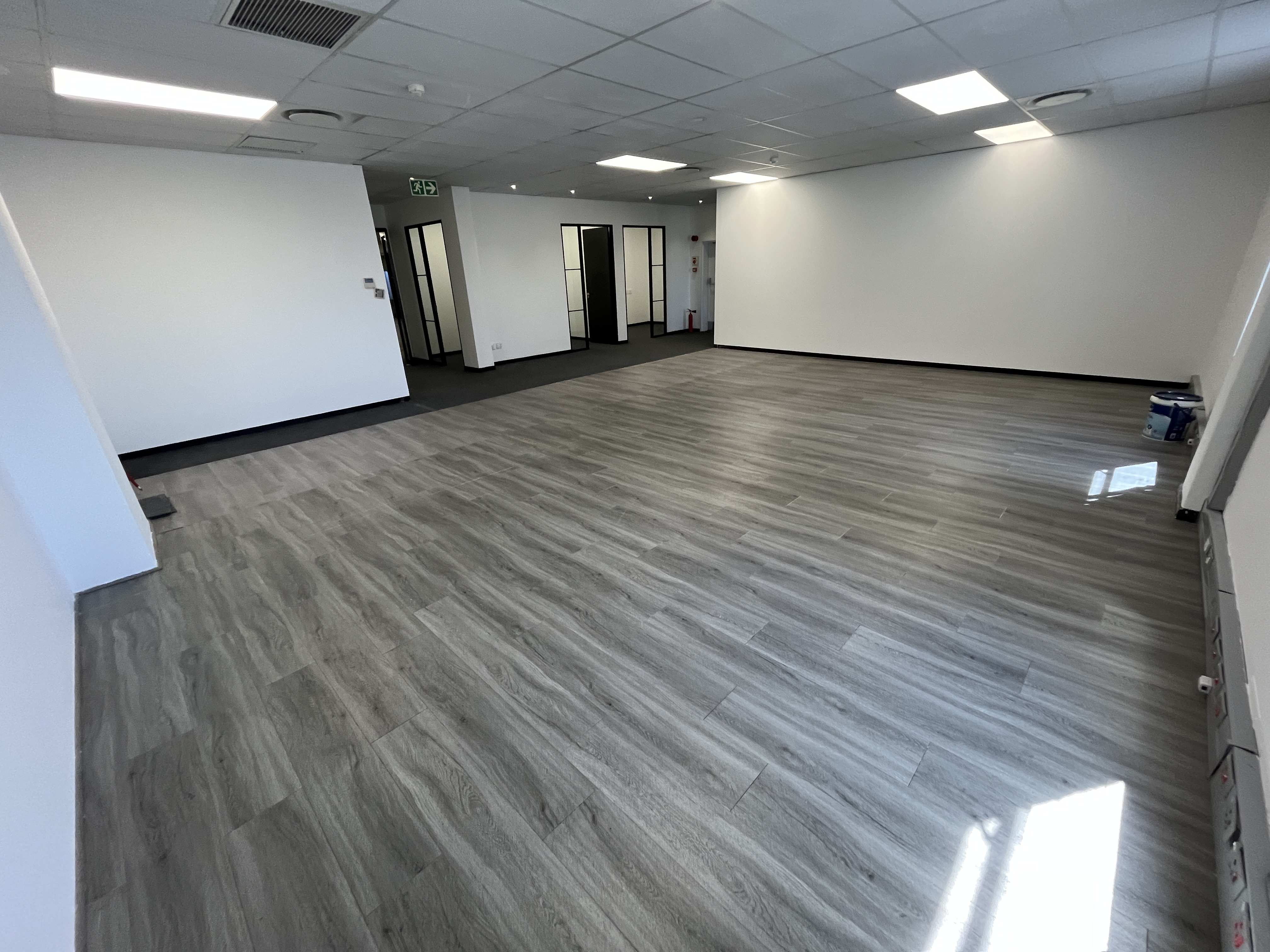 This 374m2 first-floor corner office presents a polished, professional workspace within a secure and well-managed environment. The unit opens into a welcoming walk-in reception area that immediately sets a strong corporate tone, flowing into a wide, open-plan office floor that can easily be adapted to suit a variety of operational requirements.