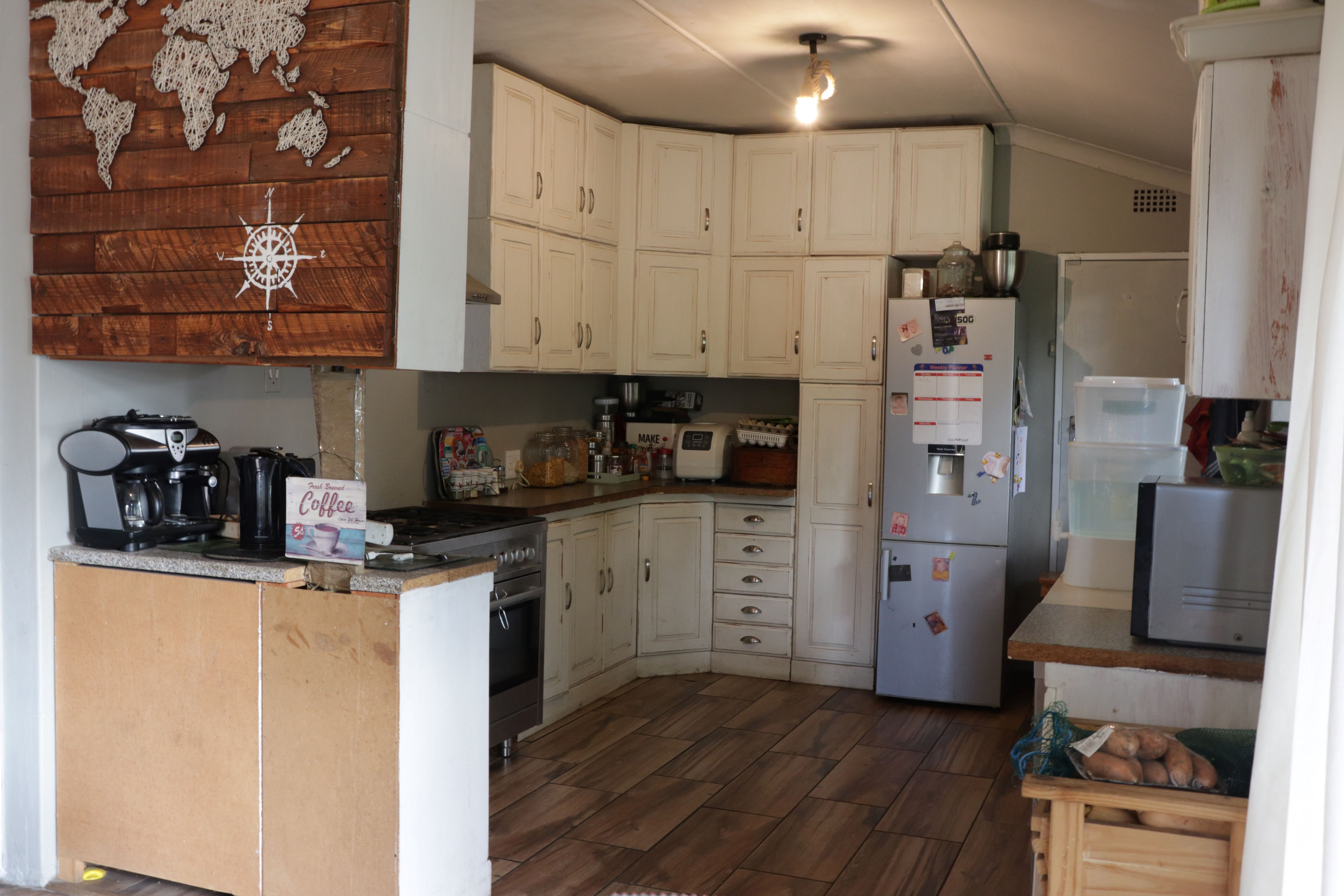 This motivated seller is offering you, your perfect starter home, featuring three bright, sunlit bedrooms with cozy carpeting. The main bedroom includes an ensuite bathroom equipped with a shower, basin, and toilet, along with direct access to the backyard. There’s also a full bathroom that needs some TLC and a separate laundry room. The rest of the house boasts tiled flooring. The open-plan kitchen, dining area, and lounge create a warm and inviting space, enhanced by a fireplace that heats the entire area.