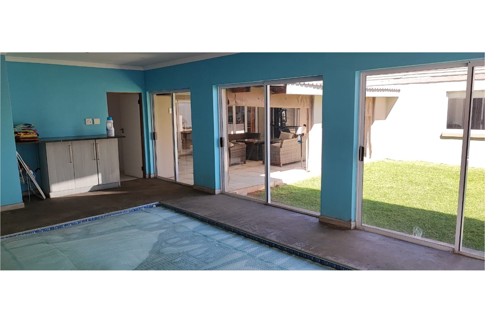 Step into this 5-bedroom, 4-bathroom house with its elegantly designed open plan living areas and stylish kitchen and imagine the perfect memories that can be created in a home like this. The rooms are spacious and offers a modern featuring lifestyle. Entertainment room with a built-in braai and lovely indoor pool. The property also comes with staff accommodation.