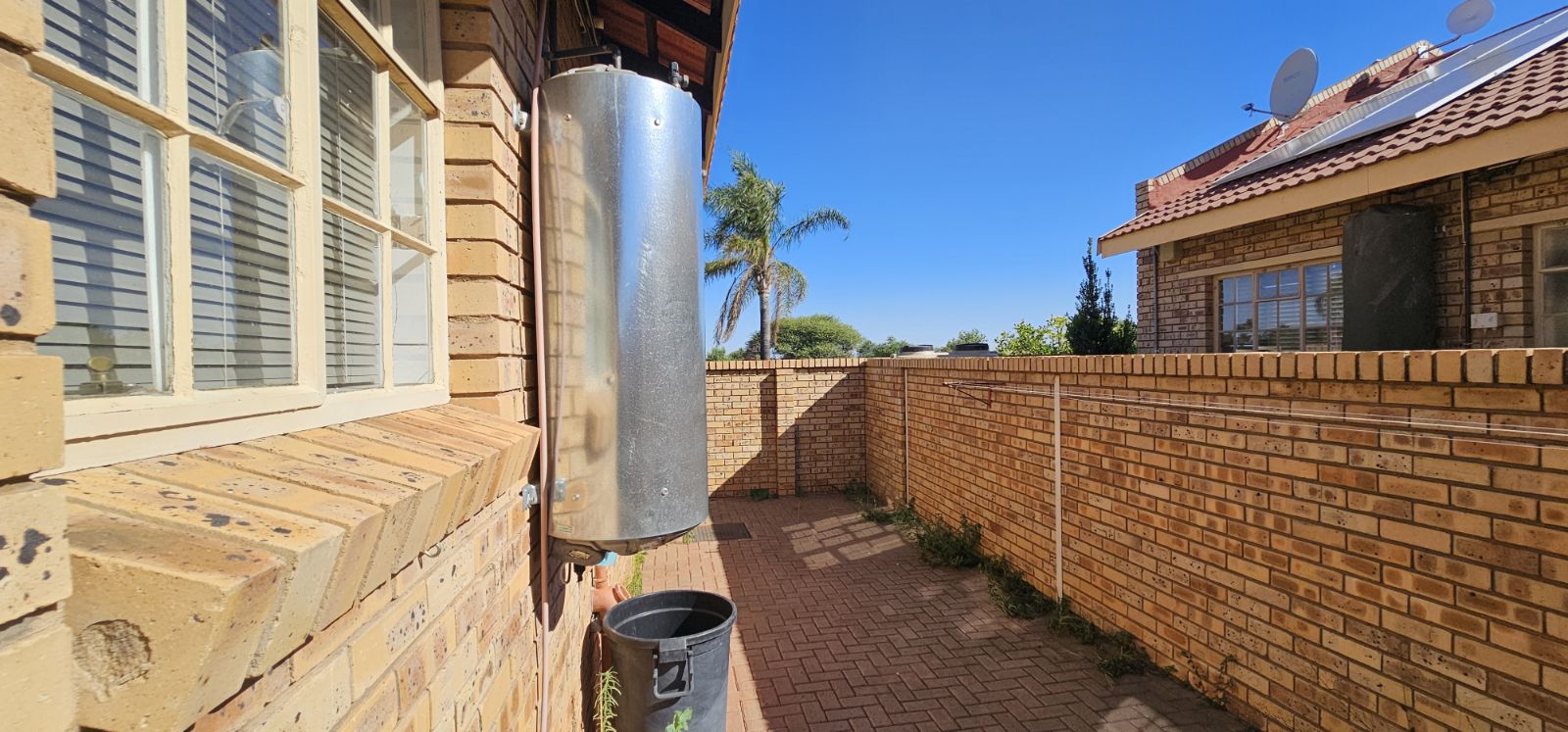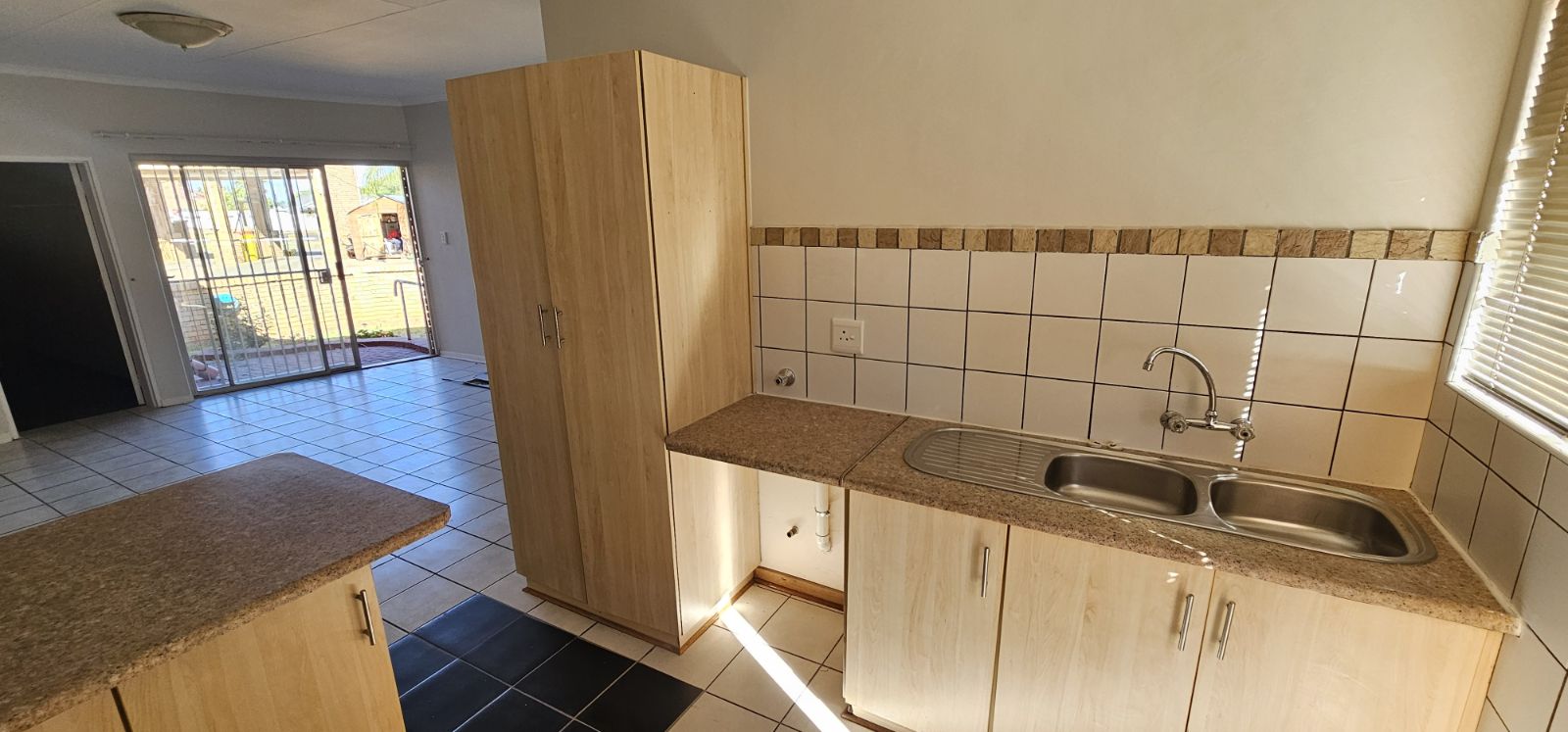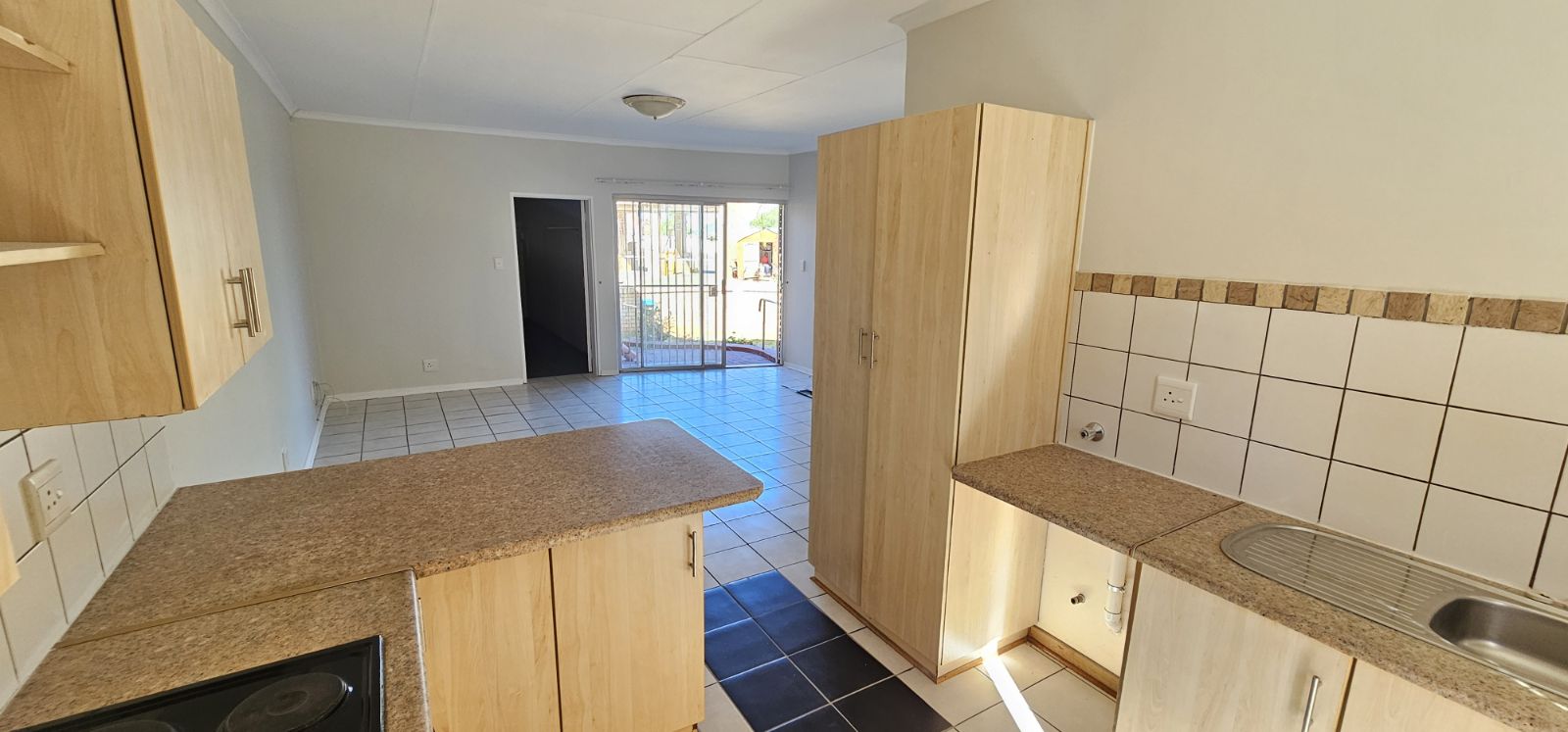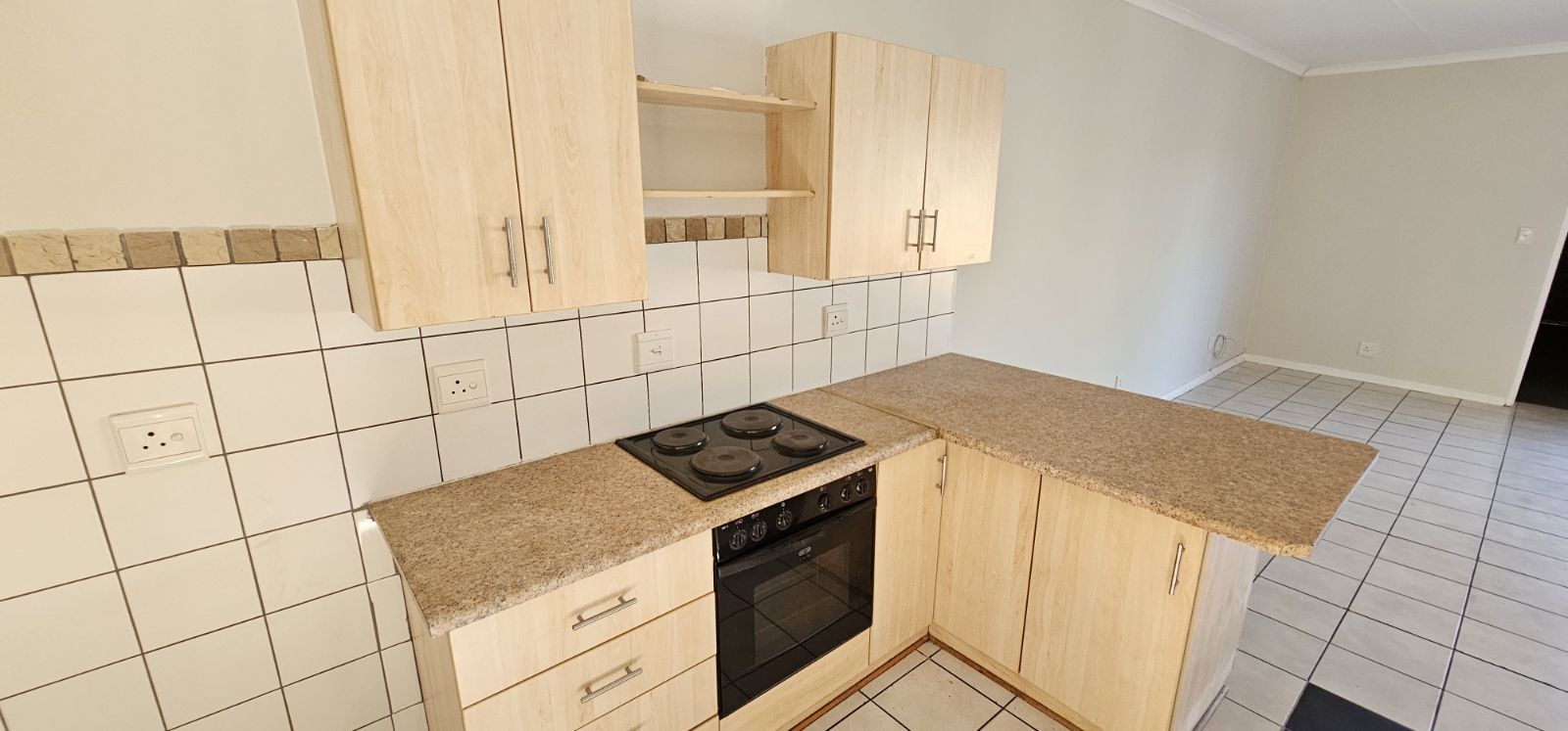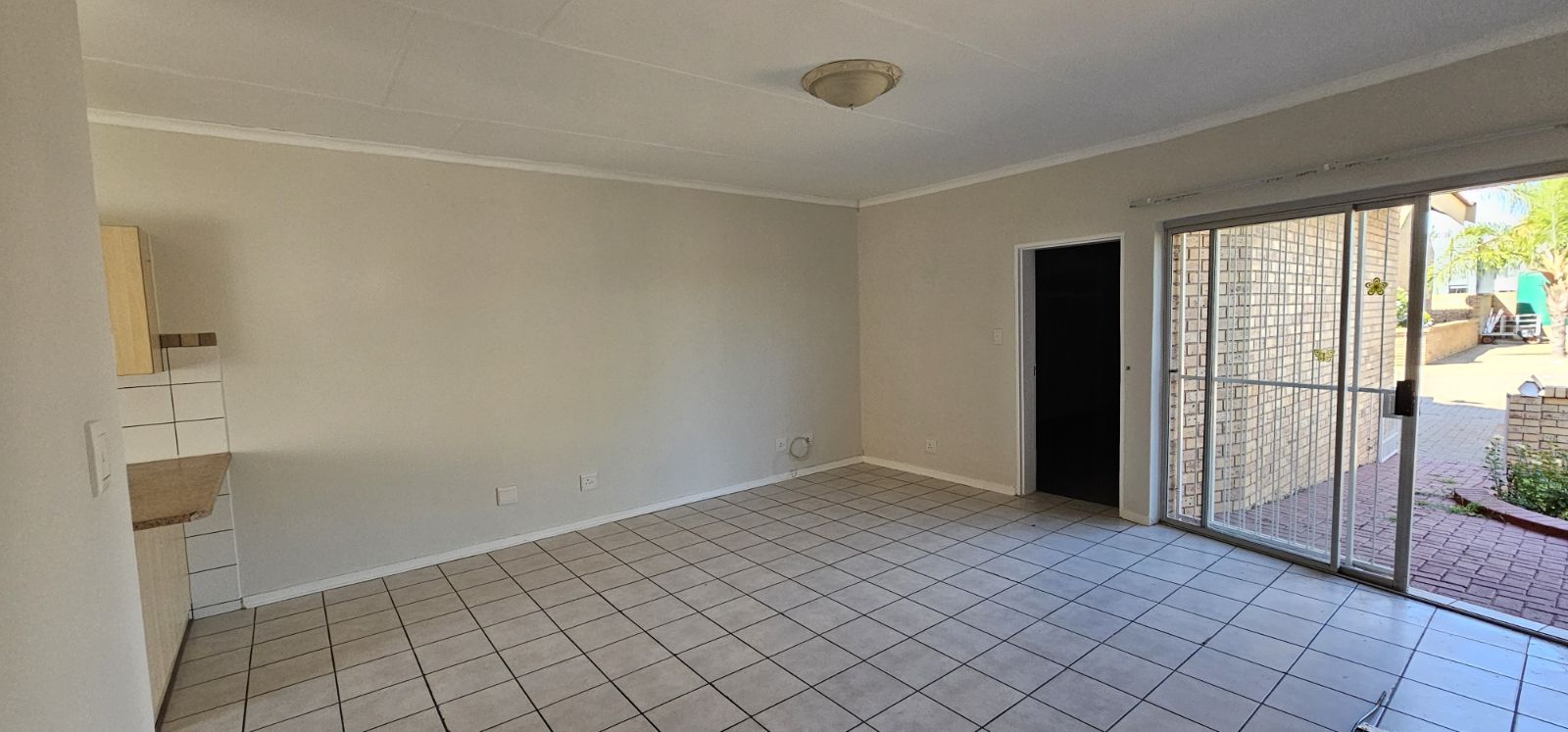 This charming two-bedroom, one-bathroom townhouse is located in a secure and peaceful retirement village, offering a comfortable and low-maintenance lifestyle. The open-plan living area combines the lounge, dining room, and kitchen, creating a spacious and inviting environment. The kitchen is well-equipped with built-in cupboards, an under-counter oven, and a hob, providing ample storage and convenience for meal preparation. An air conditioner ensures year-round comfort in the living area.