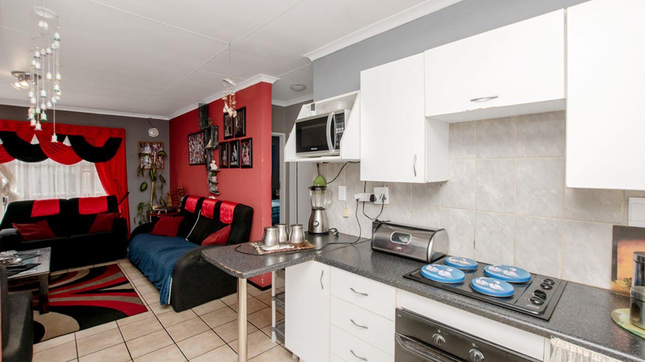 An open-plan living/dining concept that leads to the well-established balcony with built-in braai facilities.
