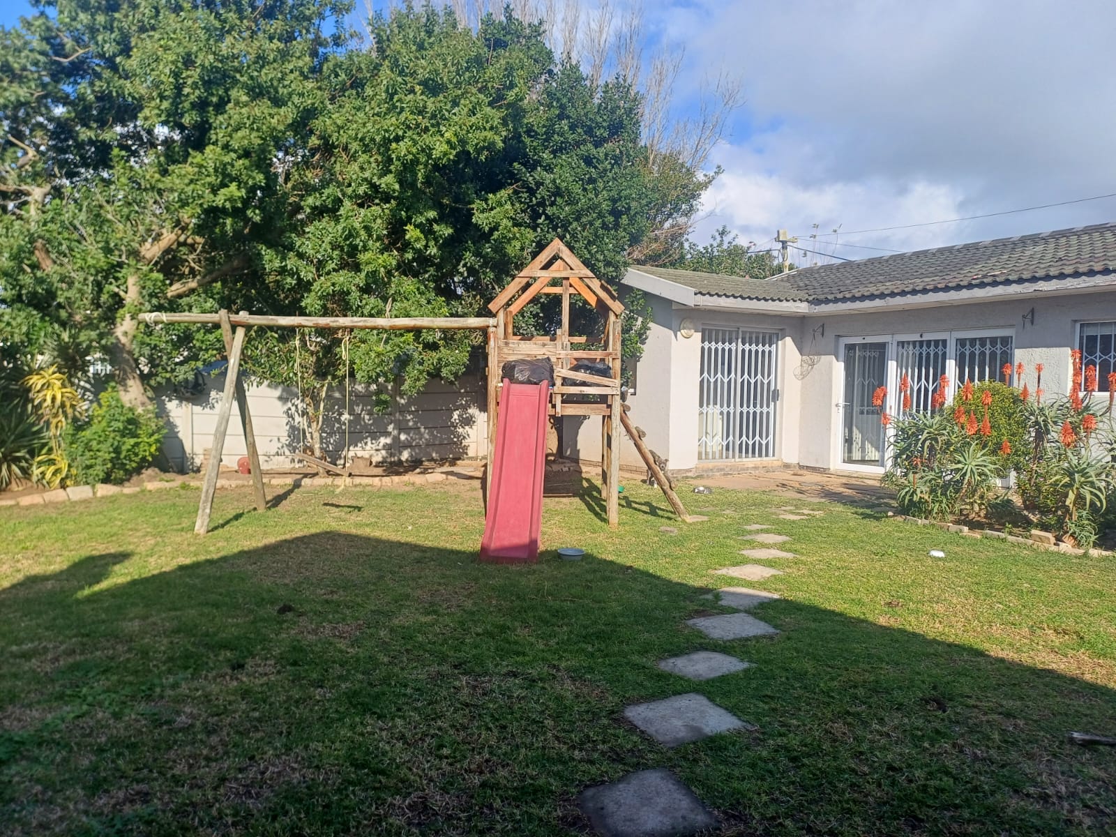 Expansive Garden: Includes a jungle gym, perfect for children and pets.