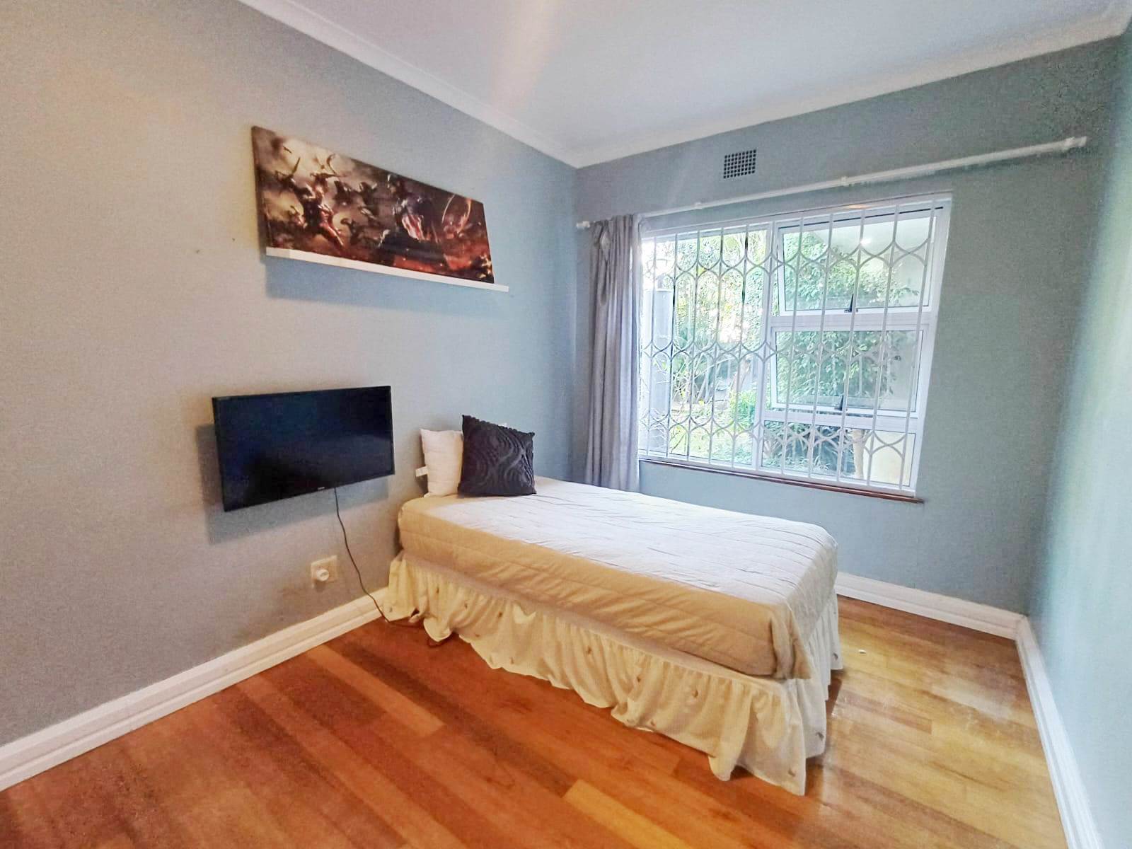 Bedroom Finishes: Built-in cupboards and beautiful wooden floors throughout.