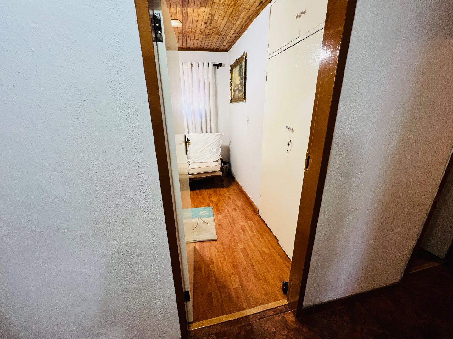 The spacious main bedroom is a true retreat, featuring a full en-suite bathroom with both a bathtub and shower. Two additional bedrooms come complete with built-in cupboards and share a stylish family bathroom with a guest toilet. Warm wooden floors add charm and character throughout the home, while air conditioning in the living room and main bedroom ensures year-round comfort.
